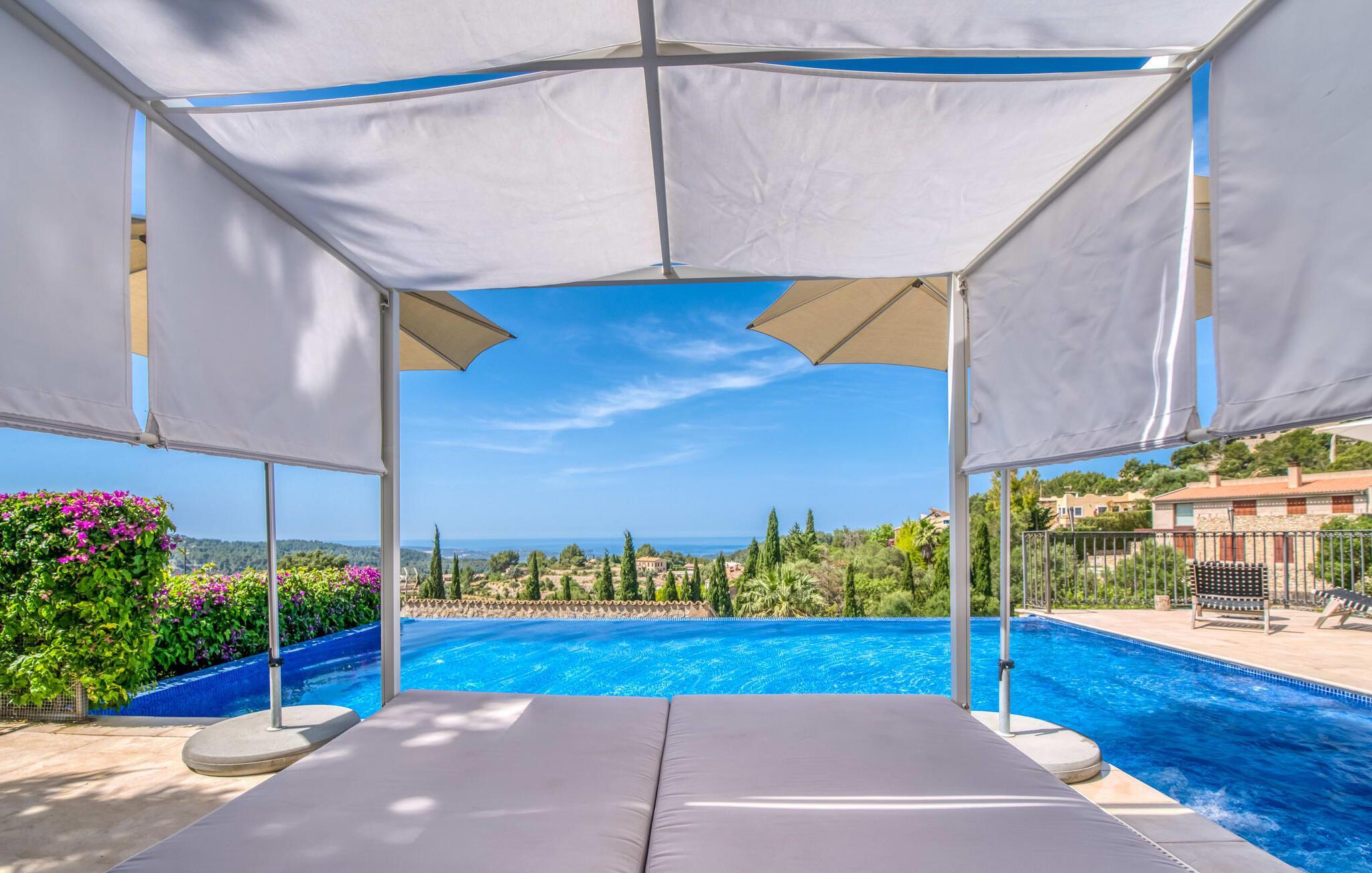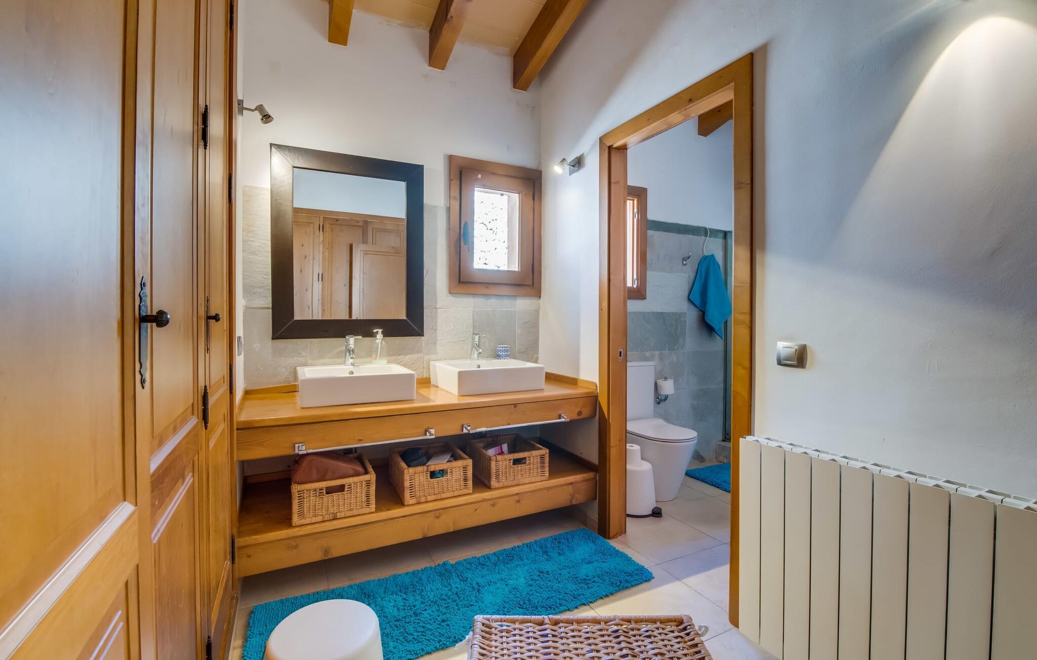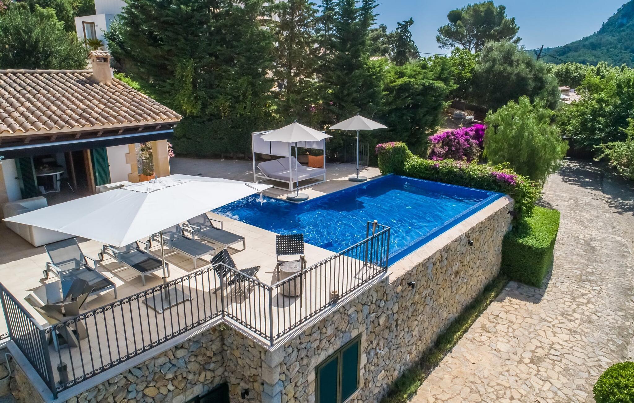 Villaen "Casa de Sa Tanca" er betagende i ordets sandeste betydning. Fordi bjergskråningens beliggenhed i ejendommens terrassekompleks midt i Tramuntana-bjergene giver dig en majestætisk følelse og en betagende udsigt. Udsigten strækker sig til Santa Ponsa og havet. Så du kan nyde den fjerne udsigt fra den afslappet friske pool og føle dig kærtegnet af Middelhavets bjergflora på trods af nogle nabovillaer. Efter dit bad kan du nyde det behagelige klima og den blide lyd fra klokkerne fra de fritgående bjerggeder. Da det skønne feriehus er helt sydvendt, kan I også nyde denne betagende smukke udsigt fra det afslappede loungeområde. Den udendørs spiseplads er placeret under den overdækkede del af terrassen. Du kan spise der når som helst på dagen, hvilket er yderst attraktivt både om morgenen og med en lækker BBQ om aftenen. Et løbebånd er tilgængeligt for dine sportslige ambitioner. Hvis du kan lide udfordringer i naturen, kan du tage på vandre- eller cykeltur gennem bjergene i Tramuntana World Heritage Site - anstrengende, men spændende på samme tid. Dette er et Fincallorca feriehus. Alle værelser i den smagfuldt indrettede mallorcanske drømmevilla nyder godt af sydorienteringen. Også her er bjergbeliggenheden absolut fordelagtig, da både den åbne opholds- og spiseafdeling inklusiv køkken samt hovedparten af soveværelserne har udgang i stueplan til det brolagte terrasselandskab. Villaens indretningsstil er en smuk blanding af landsted og moderne purisme. Design og funktion går hånd i hånd i dette elegante, men hyggelige familiehjem. Komfort omfatter et fuldt udstyret køkken-alrum, en hyggelig pejs og et smart-tv i opholdsområdet samt de fuldt klimatiserede soveværelser med dobbeltsenge. Da hvert soveværelse har sit eget badeværelse i moderne design, kan otte voksne komfortabelt tilbringe en afslappende ferie sammen. Til opvarmning og varmtvandsforberedelse er huset for nylig udstyret med en ny luft-vand varmepumpe, som er centralt styret i varmetilstand via termostat i spisestuen. De enkelte rum kan justeres individuelt ved hjælp af termostater på radiatorerne. Det ekstra installerede solcelleanlæg med batterilager til at generere elektricitet og varmepumpen har gjort huset endnu mere bæredygtigt. "Casa de Sa Tanca", som kan lejes hele året rundt, lader intet tilbage at ønske og imponerer med sine høje standarder for beliggenhed og design. Simpelthen fantastisk – og alligevel inden for din rækkevidde! Den moderne poolvilla "Casa de Sa Tanca" med sin fascinerende beliggenhed på en bjergskråning ligger midt i Tramuntana-bjergene. Den fredelige landsby Galilea tilbyder et perfekt tilflugtssted, men er kun omkring en halv time fra Palma. Det skønne feriehus har en førsteklasses beliggenhed i en urbanisering nær byens centrum. I Galilea kan du stoppe ved to lokale restauranter eller tapasbarer. For at shoppe ligger Puigpunyent omkring 4 km væk. Til markedet skal du gå til Calvià, Andratx eller andre smukke bjerglandsbyer. Køreturen til sandstrandene i den vestlige del af øen tager omkring 30 minutter.