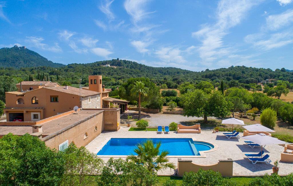 Din elegante, komfortable villa "Casa Fina" med sit varme sandstenslook kan med sikkerhed tælles blandt landejendommestyperne. Med sit tårn udstråler den typisk mallorcinsk charme. En velholdt indkørsel fører til huset, foran hvilken der nemt kan parkeres flere biler. På den anden side er den omfattende, kærligt anlagte have med pool. Omgivet af appelsintræer og palmer kan I slappe af på liggestolen eller de komfortable puder omkring poolen. Slap af på den luftige, skyggefulde terrasse ved huset, hvor lyse lilla bougainvilleaer vokser, eller spil et spil bordtennis. Det hyggelige udekøkken med grill og stort spisebord har til huse i et lille åbent stenhus og er oplagt til at grille på dejligt varme, uendelige sommeraftener. Inde i jeres villa finder I en smagfuld blanding af muntre, lyse hvide og rustikke træmøbler. Stilfulde rundbuer i stedet for døre forbinder de enkelte rum og formidler en luftig rumfølelse. En rustik vindeltrappe fører fra indgangspartiet til tårnet. Her finder I et af dobbeltværelserne med eget badeværelse. Den hyggelige stue i stueetagen med pejs og stort fladskærms-tv støder direkte op til det moderne, fuldt udstyrede køkken. Indrettet i et hvidt farveskema med et lille bord, ideelt som opbevaringsbakke eller til den første morgenmad, flyder det ind i spisestuen, hvor et stort træbord inviterer til fest. På denne etage er der et af badeværelserne med bruser, gæstetoilet og yderligere tre soveværelser med dobbeltsenge. I en mesterlig blanding af gammelt og nyt er alle værelser smagfuldt indrettede med sans for detaljer. Praktiske indbyggede skabe giver nok opbevaringsplads til jeres feriebagage. Yderligere to værelser, hver med eget badeværelse, ligger direkte ved siden af hovedhuset i en separat bygning. Ideel til en ferie med den (udvidede) familie eller venner. Hvilket panorama! Fra jeres rustikke villa "Casa Fina" i sydøst kan I nyde en overvældende udsigt over de omkringliggende bakker og den 500 m høje Puig de Sant Salvador, som klostret af samme navn ligger på. Den nærliggende landevej fører jer til den blomstrende by Felanitx, som tilbyder alt hvad I behøver til jeres villaferie, herunder supermarkeder, apoteker og restauranter, inden for 5 minutter i bil. De smukke strande i Cala Murada, Cala Tropicana eller Cala Marçal ligger mindre end 13 km væk. Som en kærkommen måde at køle af på varme dage er de mystiske dragehuler, Cuevas del Drach nær Porto Colom, altid et besøg værd: et imponerende system af underjordiske drypsten og undervandshuler.