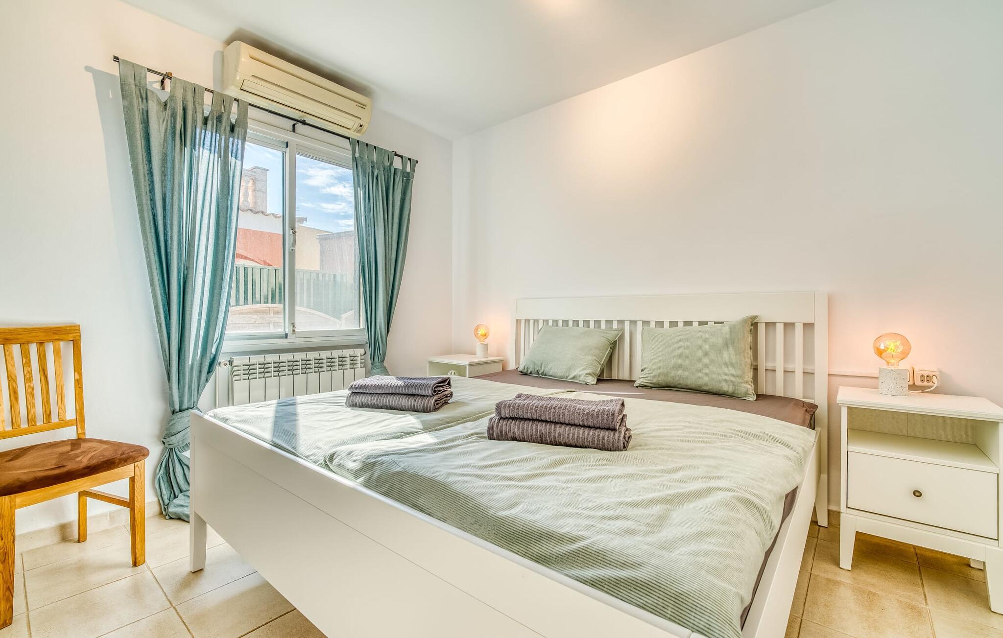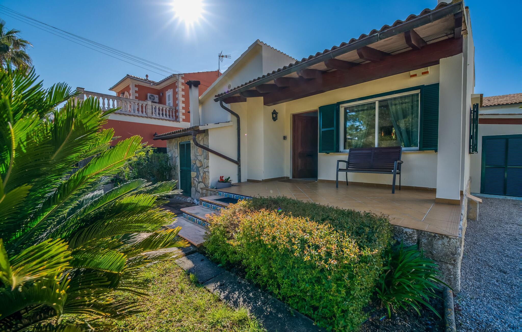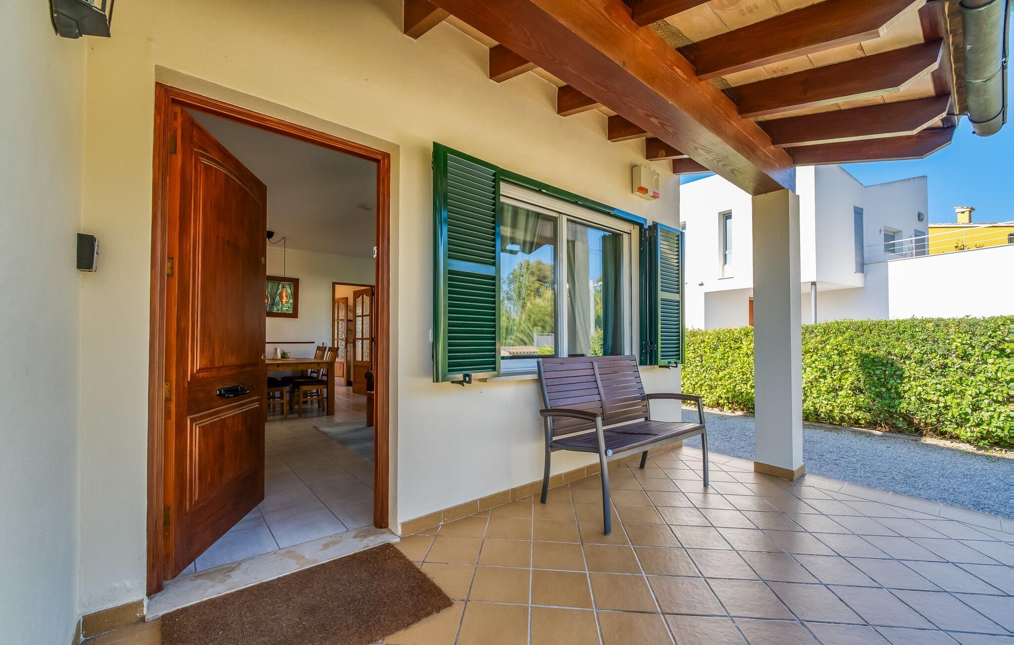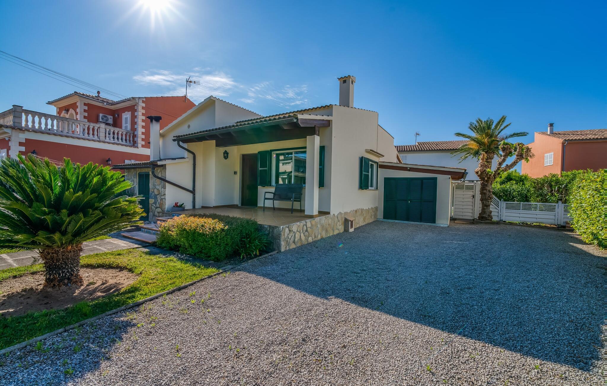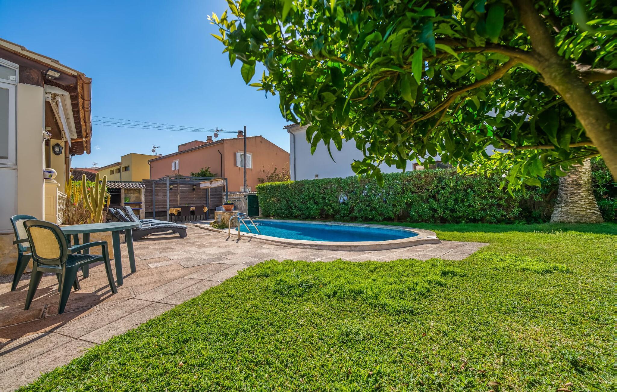 Oplev villaen "Casa Kerchner" med os, som tilbyder perfekt udstyret ferieindkvartering til en familie eller to par. I en velholdt urbanisering, mellem middelhavskrukkeplanter og en smukt anlagt forhave, kan I nyde alt, hvad I kan ønske jer på ferien på Mallorca: en pool med udendørs bruser, en overdækket og en tagterrasse samt en muret grill til en afkølet grill. Soldyrkere vil finde deres yndlingssted på de komfortable liggestole. På trods af den urbane atmosfære i udkanten af middelalderens Alcúdia, kan I nyde den typiske mallorcanske ro i dette smukke feriehus. Om aftenen kan I slappe af på tagterrassen med udsigt over kvarteret og drømme om stjernehimlen. Den hyggelige villa inviterer også til at drømme i de to dobbeltværelser med masser af opbevaringsplads. At have det godt er fuldt ud muligt i et moderne interiør, der emmer af afslappethed. Fra terrassen kommer I direkte ind i det fuldt udstyrede køkken. I har valget mellem den udendørs spiseplads på verandaen eller den kombinerede opholds- og spiseplads. Gør dette afhængigt af jeres humør og årstiden. Med varme, aircondition og godt internet er villaen "Casa Kerchner" velegnet til en helårsferie eller endda en "arbejds-ation". Mellem de to soveværelser er det smarte brusebadeværelse med bruser fra gulv til loft. Samlet set imponerer ferieboligen med lyse rum og en gennemtænkt planløsning. Velkommen til en afslappende ferie i Alcúdia og villaen "Casa Kerchner". "Casa Kerchner" med sin smukke have, pool, grill og tagterrasse tilbyder feriegæster alt, hvad de kan ønske sig på Mallorca. Feriehuset ligger i en bygd nær Alcúdia, hvorfra I kan gøre jeres dagligvarer eller shoppe tøj og souvenirs. De store strande i bugten Alcúdia eller Pollença er kun fem minutters kørsel væk.