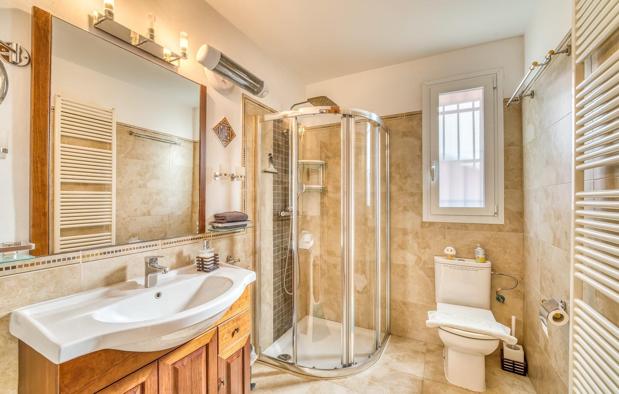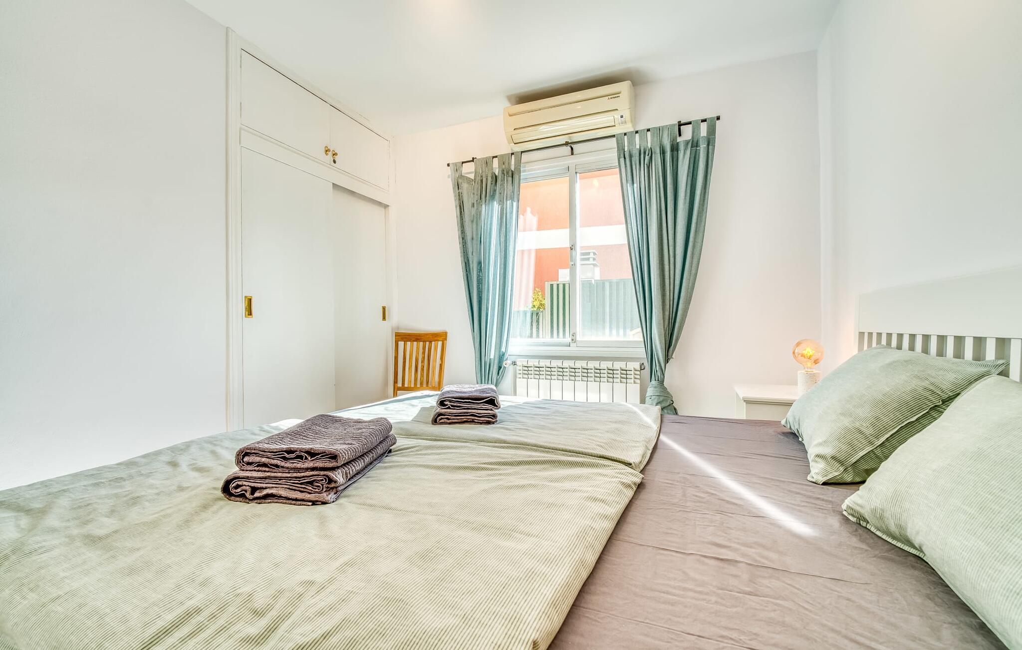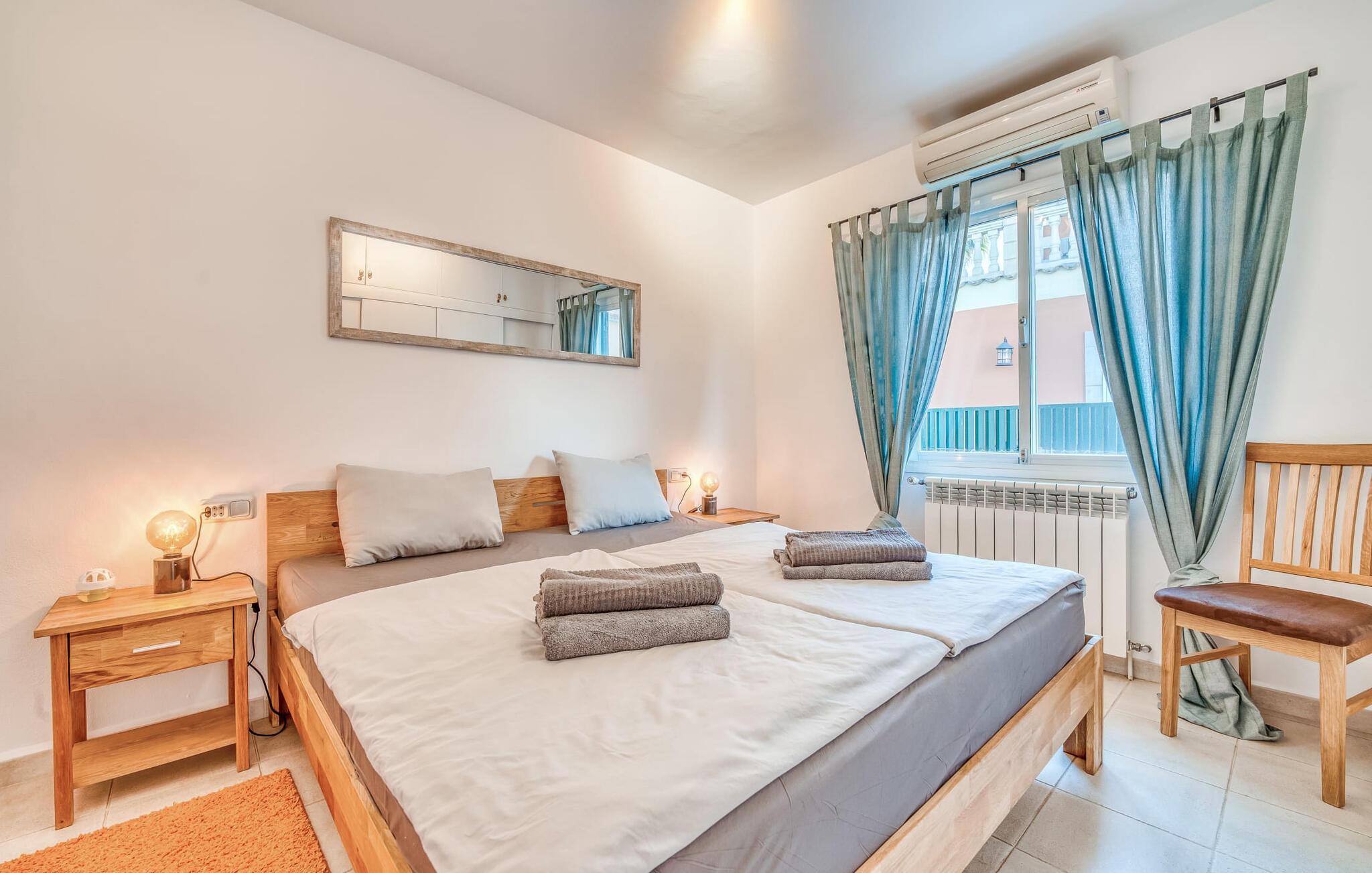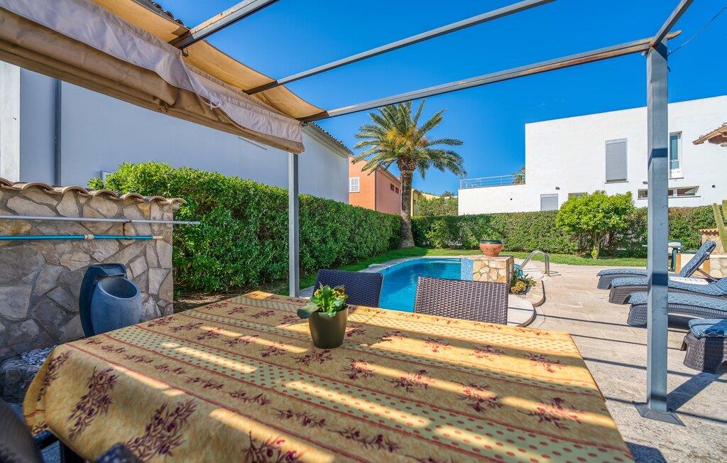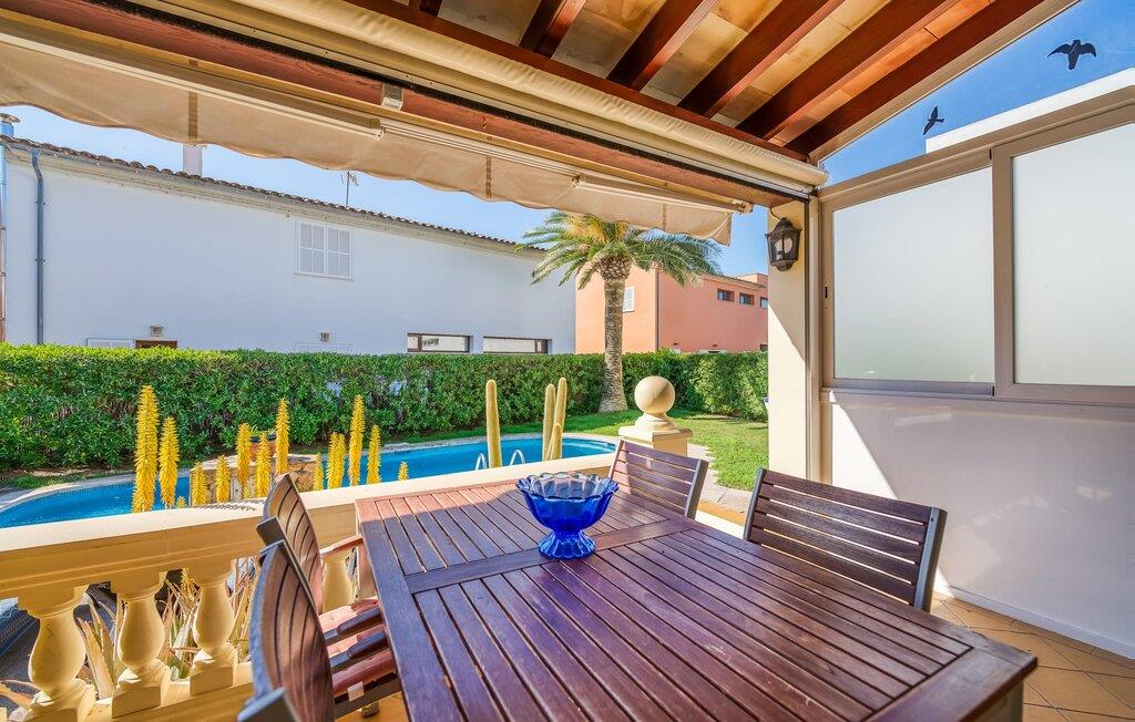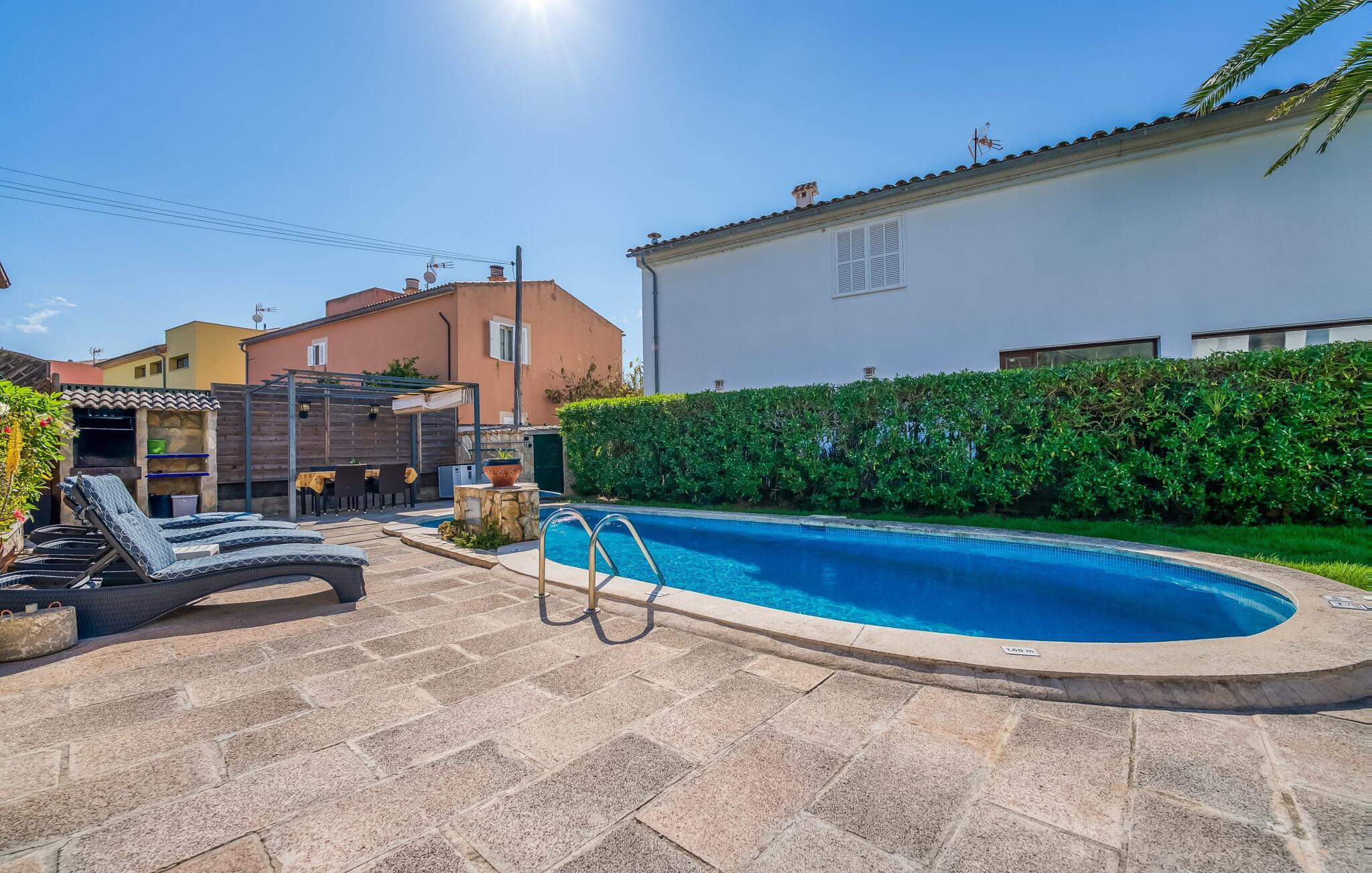 Oplev villaen "Casa Kerchner" med os, som tilbyder perfekt udstyret ferieindkvartering til en familie eller to par. I en velholdt urbanisering, mellem middelhavskrukkeplanter og en smukt anlagt forhave, kan I nyde alt, hvad I kan ønske jer på ferien på Mallorca: en pool med udendørs bruser, en overdækket og en tagterrasse samt en muret grill til en afkølet grill. Soldyrkere vil finde deres yndlingssted på de komfortable liggestole. På trods af den urbane atmosfære i udkanten af middelalderens Alcúdia, kan I nyde den typiske mallorcanske ro i dette smukke feriehus. Om aftenen kan I slappe af på tagterrassen med udsigt over kvarteret og drømme om stjernehimlen. Den hyggelige villa inviterer også til at drømme i de to dobbeltværelser med masser af opbevaringsplads. At have det godt er fuldt ud muligt i et moderne interiør, der emmer af afslappethed. Fra terrassen kommer I direkte ind i det fuldt udstyrede køkken. I har valget mellem den udendørs spiseplads på verandaen eller den kombinerede opholds- og spiseplads. Gør dette afhængigt af jeres humør og årstiden. Med varme, aircondition og godt internet er villaen "Casa Kerchner" velegnet til en helårsferie eller endda en "arbejds-ation". Mellem de to soveværelser er det smarte brusebadeværelse med bruser fra gulv til loft. Samlet set imponerer ferieboligen med lyse rum og en gennemtænkt planløsning. Velkommen til en afslappende ferie i Alcúdia og villaen "Casa Kerchner". "Casa Kerchner" med sin smukke have, pool, grill og tagterrasse tilbyder feriegæster alt, hvad de kan ønske sig på Mallorca. Feriehuset ligger i en bygd nær Alcúdia, hvorfra I kan gøre jeres dagligvarer eller shoppe tøj og souvenirs. De store strande i bugten Alcúdia eller Pollença er kun fem minutters kørsel væk.