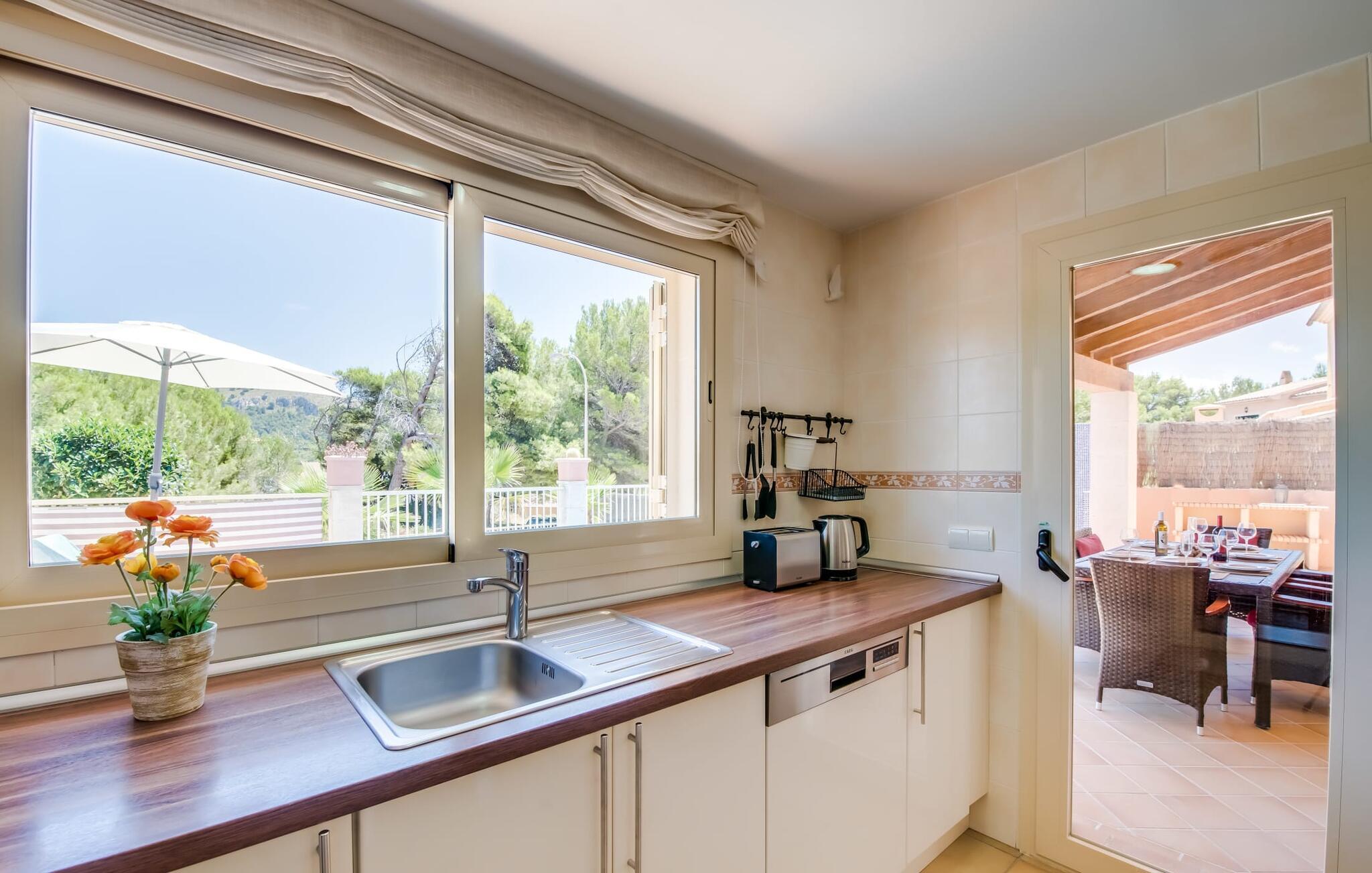 En ferie mellem hav og bjerge – hvor kan I ellers finde det end på Mallorca? Den terracottafarvede villa med den hvide Persiana udstråler den maritime charme af et helt særligt feriehus på vores yndlingsø. Den vidunderlige udsigt over Llevant-bjergene og den samtidige blide oversvømmelse af Cala Mesquida præger beliggenheden. Udendørsområdet i den to-etagers villa på den østlige del af øen nær Capdepera og Cala Ratjada imponerer også med sin grønne alsidighed. Fordi der er færre naboer, er hele ejendommen vidunderligt privat, så I kan nyde den luksuriøst anlagte grund med en flisebelagt udendørs pool, solterrasse, lounge og liggestole samt det fuldstændigt privatlivsbeskyttede spabad i fred og ro. En grill og en overdækket terrasse på verandaen til det familievenlige, moderne feriehus med maritim karakter fuldender forkælelsesprogrammet. De smukke palmer og den mallorcanske prydfontæne er blot nogle af de detaljer, der giver denne udsøgte mallorcanske villa sin ånd. Den baleariske ånd af lethed afspejles også i strandhusets lyse interiør. Terrassen med polyrattan-spisepladsen er det centrale samlingspunkt, fordi I har direkte adgang til den udendørs spiseplads fra den rummelige stue og spisestue samt det separate køkken. Høje rum, naturlige farver som terracotta og varme trætoner bestemmer karakteren og giver samtidig en nutidig vægtløshed. Moderne teknologi bør dog ikke mangle i det fuldt udstyrede køkken eller i de smarte badeværelser (et med brusekabine en suite på øverste etage og det andet med badekar i stueetagen). De tre klimatiserede soveværelser er tilgængelige for en afslappende nattesøvn. Et af soveværelserne har en lille altan og et walk-in closet. “Casa León de Cala Mesquida” er ideel ikke kun for en eller to familier, men også for en gruppe venner, der ved, at man ikke altid skal vælge mellem hav og bjerge for at få en perfekt ferie på Mallorca. I en fantastisk beliggenhed mellem bjergene og havet, opdag den moderne havudsigt villa "Casa León de Cala Mesquida". Som navnet antyder, ligger den mallorcanske juvel i den idylliske kystby Cala Mesquida på den østlige del af øen. I gåafstand ligger den lille bymidte og sandstranden og havet.