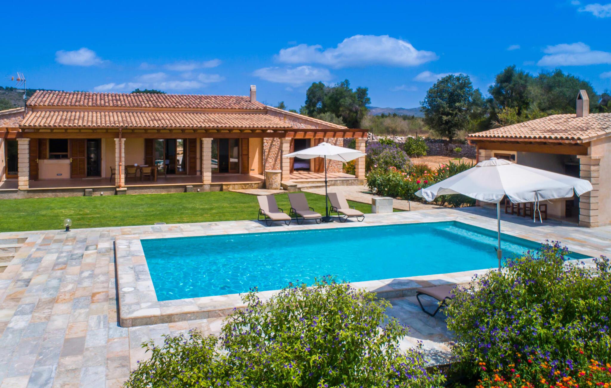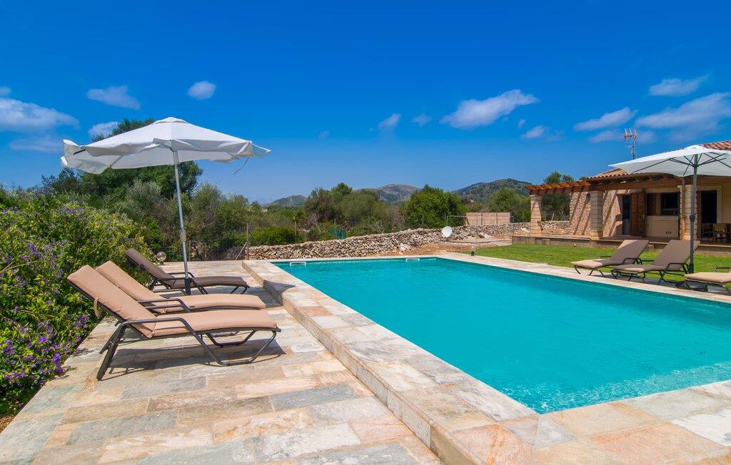 Hvis I vil begynde at slappe af med det samme efter ankomsten til Mallorca, er den kompakte villa "Casa Manolo" det rigtige valg. Det vidunderlige øvejr kan nydes særligt godt, når udendørsområdet af sådanne proportioner inviterer jer til at svæve mellem poolen, haven og den overdækkede terrasse, fri for tidens begrænsninger: I har knap nok forfrisket jer selv i poolen, før I re omgivet af duften af grillede delikatesser, hilsner, der blæser fra køkkenskuret. Snup en hurtig aperitif indendørs og nyd den uundgåelige afslapningsfaktor ved et villaophold under klarblå himmel. Poolen har oven i købet en spabad-funktion – det er her mange mennesker kommer med en eller to spændende idéer til at overføre den rolige Mallorca-ånd til deres hjemland. I kan derefter skylle havvandet af under en udendørs bruser. Da poolhuset har et udekøkken med køleskab og opvaskemaskine samt et lille badeværelse, kan I helt flytte jeres liv til den friske luft. Hvis I alligevel skal hjem om aftenen, behøver I ikke at gå på kompromis med æstetikken i jeres bolig. Tværtimod! De seks personer kan fordele sig på de tre soveværelser, som imponerer med deres imponerende design. Et af dem har en 2 x 2 m dobbeltseng og åbner direkte ud til terrassen, de to andre værelser har hver to enkeltsenge. Begge badeværelser har komforten af en massagebruser, så I kan genoplive jeres cirkulation om morgenen. I kan også brusebad på badeværelset i poolhuset. I opholds- og spiseafdelingen er der et rigtig hyggeligt opholdsområde omkring pejsen - herfra kan I følge med i, hvad der sker derhjemme via satellit-tv. Eller I kan vælge en komplet informationsdiæt for at nyde de aktuelle kilder til fornøjelse endnu mere intensivt. Endelig er køkkenet fuldt udstyret: opvaskemaskine, brødrister, ovn, mikroovn, kaffemaskine, keramisk kogeplade, køleskab - her mangler intet. I vintermånederne, når det bliver lidt køligere på øen, kan I tænde for varmen og tilbringe glade stunder med at spille et af de omgængelige brætspil. Takket være de store vinduespartier kommer der meget naturligt lys ind i rummene, som også udstråler en behagelig atmosfære takket være den venlige, lyse indretningsstil. Ejerne har også bygget et gæstetoilet ind i garagen. Lige bag villaen er der en sti til Artà, kun halvanden kilometer væk. Her finder I et fint potpourri af udsøgte butikker og caféer, så I helt kan fordybe jer i den spanske livsstil. I kan også dykke på en af de smukke østkyststrande, cirka 12 km fra ejendommen. Både den charmerende havneby Colonia de Sant Pere med sin promenade og udsøgte restauranter og den pulserende Cala Radjada, der er meget livlig om natten, er et besøg værd. I løbet af dagen tilbyder de mange butikker og restauranter jer den perfekte infrastruktur til at tilbringe en vidunderlig dag på stranden. Lufthavnen og øens hovedstad ligger cirka 70 km væk. Der er 11 km til Capdepera-slottet fra 1300-tallet, som vil få historieinteresseredes hjerter til at slå hurtigere. Det gælder også Ermita de Betlem, et malerisk kloster, som I kan besøge på en afslappet vandretur. Villaen "Casa Manolo" er den perfekte adresse for alle, der ønsker at kombinere det idylliske landskab med attraktive udflugtsmål: Den historiske Artà ligger kun halvanden kilometer væk til fods. Der kan I slappe af på en af caféerne, inden I tager til de imponerende drypstensgrotter eller tilbringer en solskinsdag på den naturlige strand Cala Torta, 13 km væk.