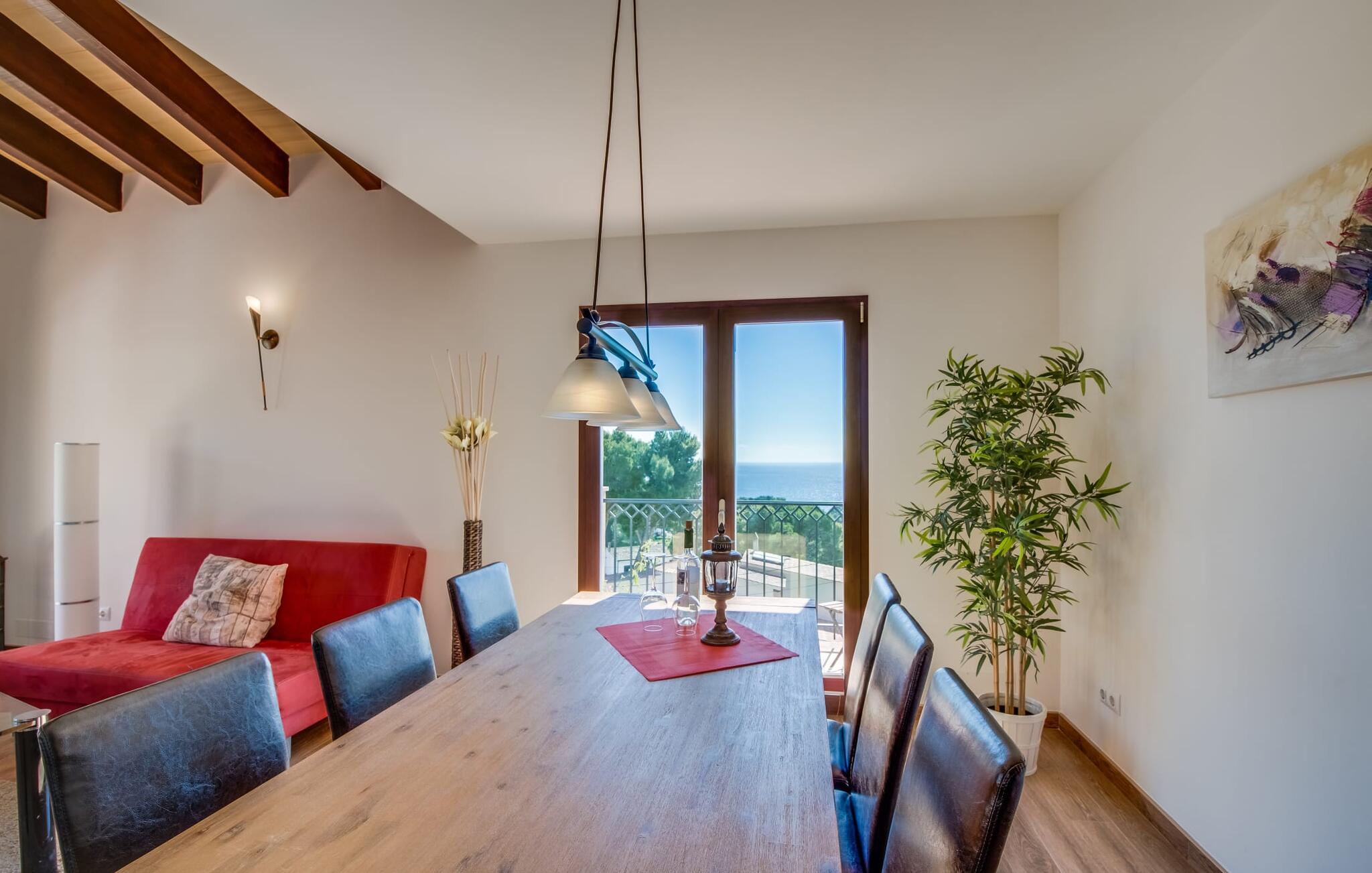 Denne feriedrøm blev skabt på en næsten 800 m² stor grund på en bjergskråning for at forkæle gæsterne med en fantastisk stemning på en unik beliggenhed. En stor træterrasse ved poolen med komfortable liggestole inviterer jer til at slappe af og fungerer også som udsigtsplatform for en unik udsigt over Canyamel-bugten og det blå hav. På varme dage kan I tage en dukkert i poolen eller blot nyde de utrolige omgivelser omgivet af frodig natur. Alt er gennemtænkt ned til mindste detalje: Poolen ligger lige ved siden af huset og har selvfølgelig en udendørs bruser. Over denne er der endnu en overdækket terrasse med siddepladser og et stort spisebord. Oplev fantastiske solnedgange over havet her og tilbring en hyggelig aften sammen. Når I føler jer sulten, skal I blot tænde kulgrillen, og maden er på bordet. Det smukke Casa Miramar vil ikke kun fortrylle jer udefra, interiøret er også værd at se! Den rummelige opholds- og spisestue, to hyggelige soveværelser og et badeværelse er placeret på ét plan. Den åbne, lyse indretning med gulv-til-loft vinduer og smagfuld indretning skaber en indbydende og hyggelig atmosfære. En komfortabel sofa kan foldes ud for at rumme yderligere to gæster. Internationale tv-kanaler kan ses på et fladskærms-tv; Der er gratis WiFi overalt i huset. I kan nyde jeres morgenmad ved det store spisebord med udsigt over havet: sikke en afslappet start på dagen. I vintermånederne giver en pejs hyggelig varme og hygge. Det fuldt udstyrede køkken vil også glæde jer og lader intet tilbage at ønske. Der er store skabe i soveværelserne. Det ene af de to værelser har en dobbeltseng, mens det andet rum har to enkeltsenge. Det moderne, dagslysfyldte badeværelse med bruseniche og stor håndvask passer perfekt ind i denne boligs smukke stemning. Canyamel, en afslappet kystby på Mallorcas østligste punkt, er et populært feriemål for familier og feriegæster, der ønsker at få et glimt af den autentiske mallorcanske livsstil. På den ene side har byen rigtig gode transportforbindelser, men på den anden side er den ikke så let at nå som andre regioner på øen. Destinationen har skabt sig et navn primært gennem sine mange fremragende restauranter. Fra jeres feriehus kan I gå til den smukke Platja de Canyamel: en lys sandstrand, malerisk indlejret i en skovklædt bugt. Her finder I liggestole og parasoller, brusere/toiletter og bådudlejning. Der er adskillige tennisbaner og den udfordrende 18-hullers Canyamel golfbane i og omkring byen. De nærliggende Coves d'Artà er også værd at se: de fascinerende drypstensgrotter fortryller mange besøgende hvert år. “Casa Miramar” ligger i det smukke feriested Canyamel på Mallorcas østkyst. Fra jeres villa kan I gå til havet og en smuk sandstrand. Fra jeres poolterrasse kan I nyde en malerisk udsigt over bugten omgivet af klipper og fyrretræer. I kan gøre jeres daglige indkøb i umiddelbar nærhed. Den fantastiske beliggenhed af denne ejendom er afrundet af en række attraktioner, der kan findes i denne region af øen.