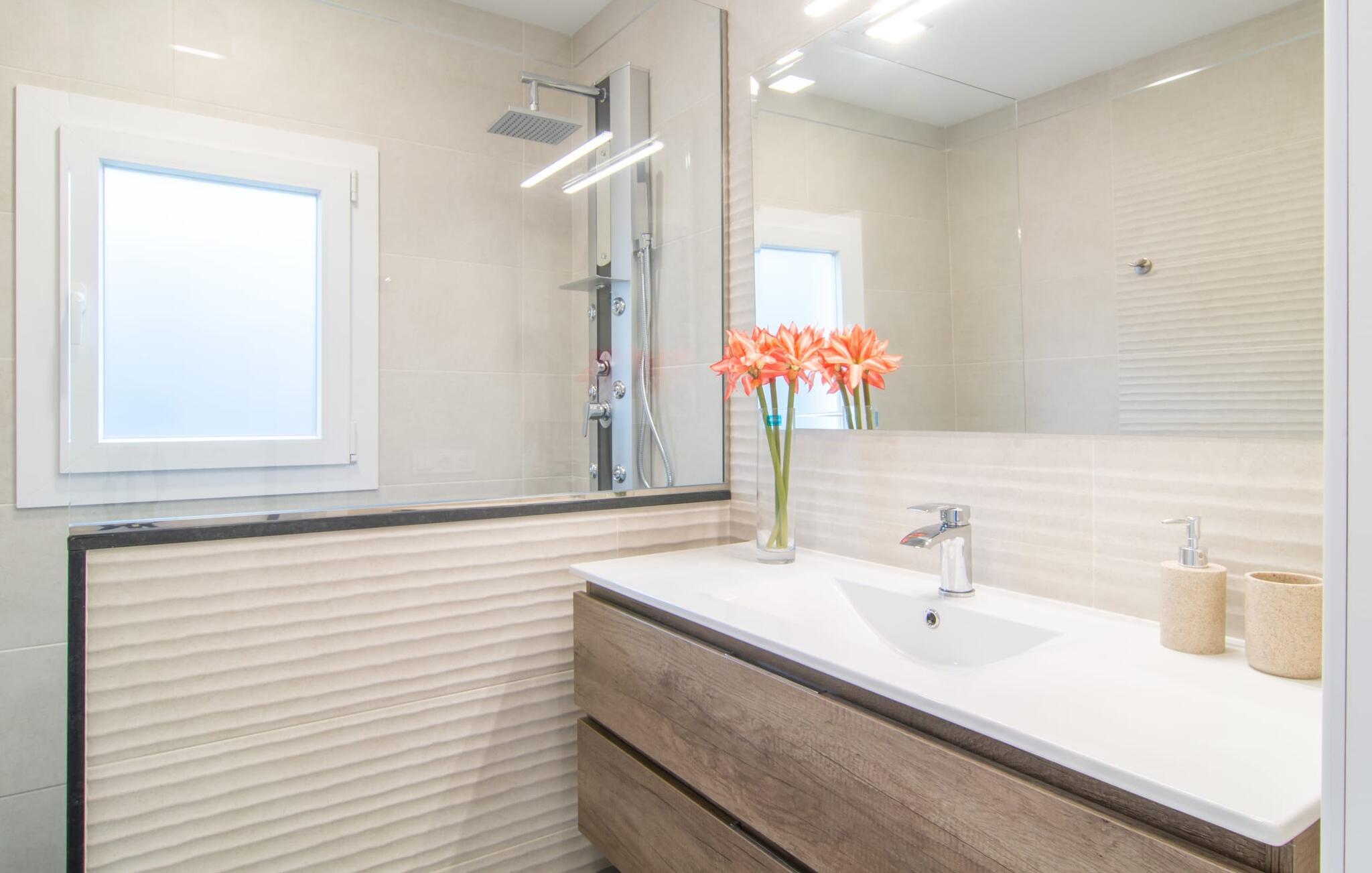 Hvis I forestiller jer et moderne, veludstyret feriehus på Mallorca, så overvej "Casa Neptuno" i udkanten af Cala Ratjada. Denne charmerende villa har rødt tag og grønne skodder og er beliggende i en velholdt urbanisering. Selvom det er omgivet af naboer, sikrer ejendommen privatlivets fred og giver mulighed for et fredeligt tilflugtssted. Villaen har flere overdækkede og solrige terrasser, ideelle til afslapning og grill. En fantastisk pool dekoreret med en delfinmosaik byder på forfriskende dukkert, og liggestole er perfekte til at varme op i nærheden. Placeringen er ideel, lokale restauranter, købmandsforretninger og stranden er alle inden for en kort gåtur. Indvendigt er Casa Neptuno chik og harmonisk og designet til komfort på ét plan - der er ingen trapper at gå op af. Naturlige toner skaber en beroligende atmosfære i hele opholds- og spisestuen i åbent plan, som har en hyggelig sofa til at se tv og en flimrende pejs. Det veludstyrede køkken har et ekstra spisebord til fælles måltider. Villaen har tre smagfuldt designede soveværelser, to badeværelser (et en suite) og et gæstetoilet, hvilket sikrer en komfortabel og stilfuld opholdsoplevelse. "Casa Neptuno" er det perfekte feriehus for alle, der søger afslapning og komfort på Mallorca. Den moderne villa “Casa Neptuno” ligger i udkanten af det populære feriested Cala Ratjada – og derfor meget tæt på havet. Butikker, restauranter og stranden Platja de Son Moll ligger inden for gåafstand.
