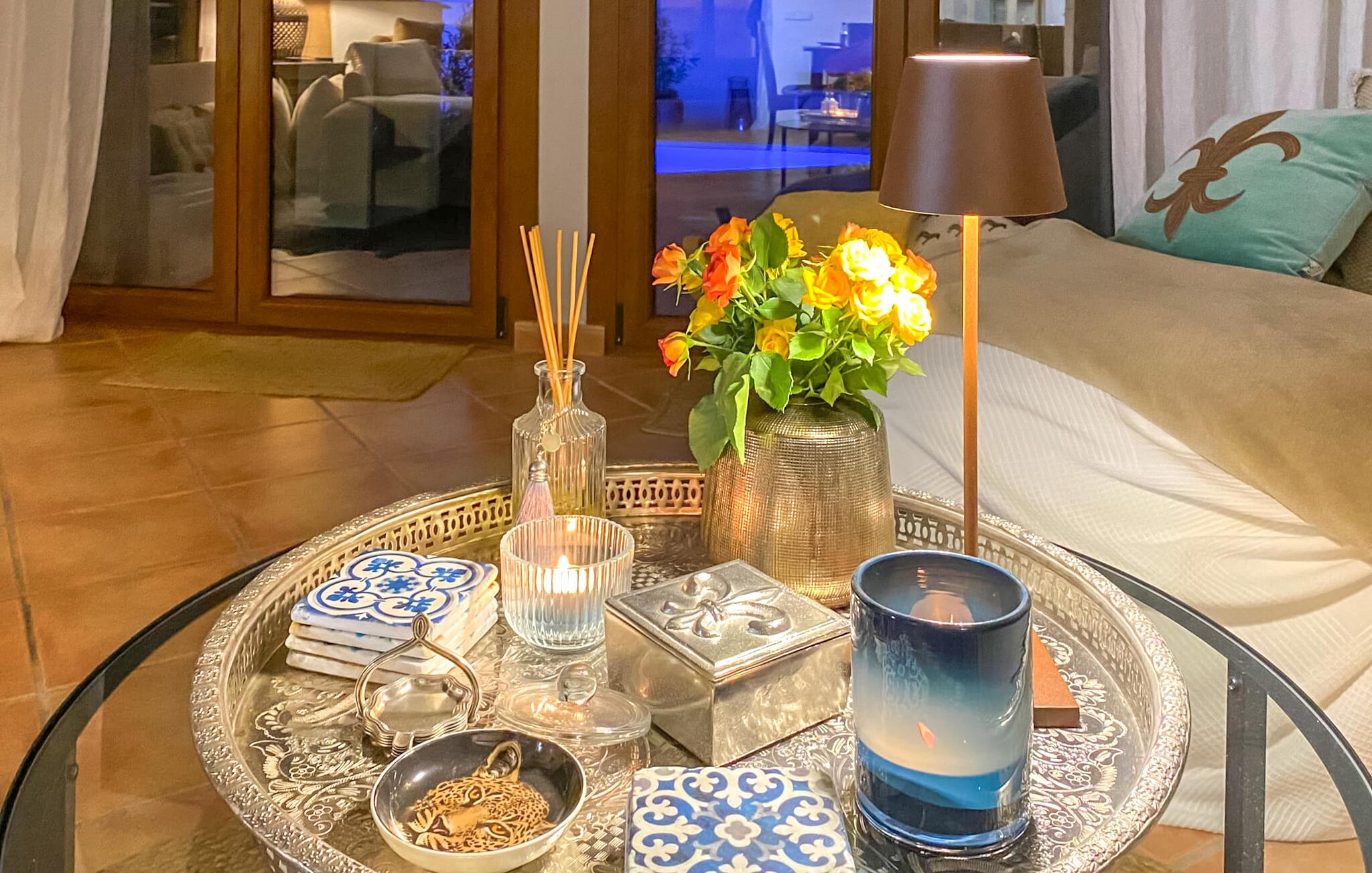 Velkommen til "Casa Vida", det charmerende rækkehus med privat terrasse og forfriskende pool, der endda kan oplyses om natten. Der er også en vandfaldsbruser med varmt/koldt vand. Direkte på terrassen er der et overdækket og airconditioneret loungeområde med hyggelig indretning med liggestole og parasoller. I kan tilberede lækre retter på grillen. Et ekstra højdepunkt er tagterrassen med solsejl. Herfra kan I nyde en vidunderlig udsigt over Artàs tage. Interiøret i det smukke rækkehus er yderst charmerende indrettet. I stueetagen finder I en stor stue med sofaer, liggestole og andre komfortable siddepladser. Spisepladsen grænser op til opholdsområdet og flyder ud i køkkenområdet. Der vil I finde alle faciliteter til selvforplejning. På øverste etage er der en separat tv-stue, også med aircondition. Alle tre soveværelser har aircondition, to badeværelser med bruser, hvoraf det ene også har badekar, runder den tidløse moderne indretning af "Casa Vida" af. Det klimatiserede og opvarmede feriehus er perfekt både sommer og mild vinter. Den er også ideel til hjemmekontoret. Med en smuk terrasse og pool samt en tagterrasse byder det store rækkehus "Casa Vida" på en privat juvel midt i middelalderbyen Artà på den østlige del af øen. I kan gøre jeres indkøb i gåafstand på Agromart, supermarkedet eller om tirsdagen på det ugentlige marked. Smukke strande som Sa Marjal ligger kun 10 km væk.