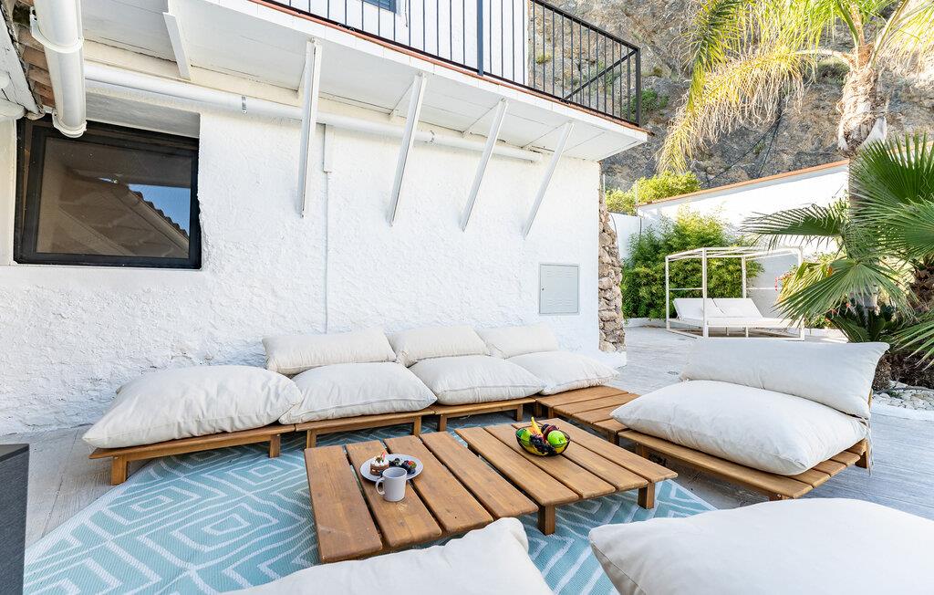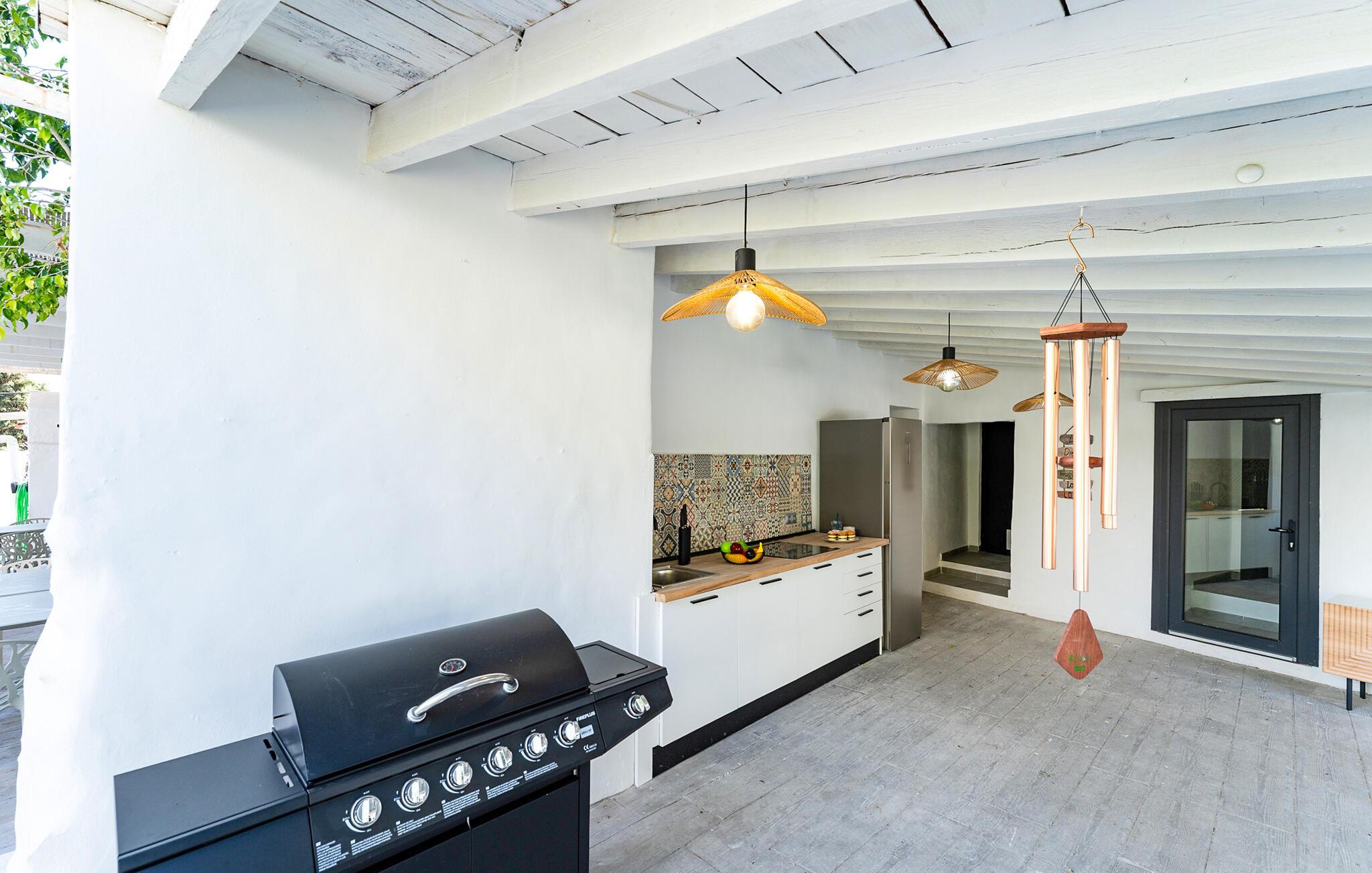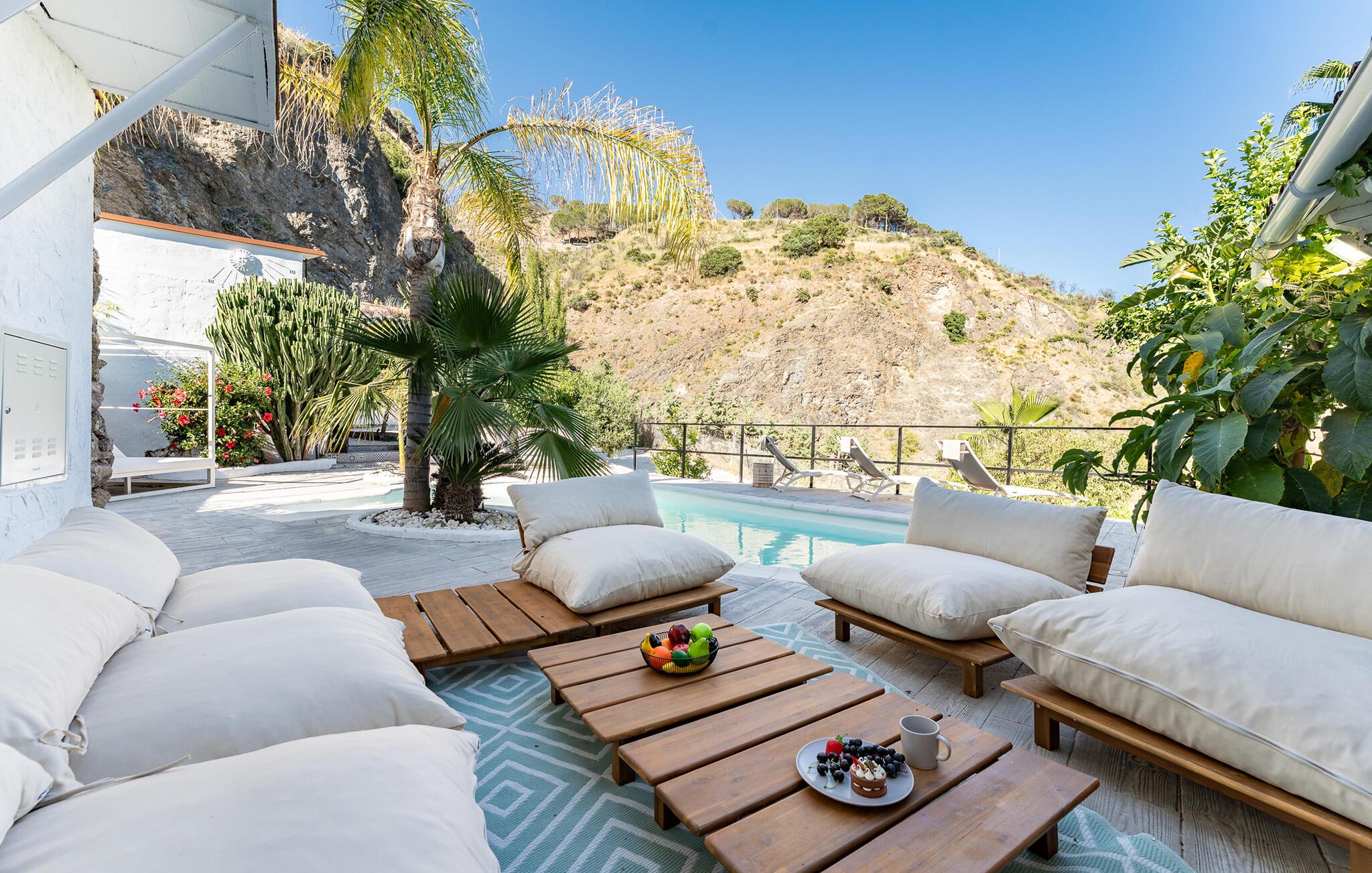 Det harmonisk designede udendørsområde med pool, flere terrasser og forskellige planter er en sand oase af ro. Forfrisk dig med en dukkert i poolen, læn dig tilbage med en kølig drink på en af liggestolene, eller find et roligt sted at bladre i din ferielæsning.