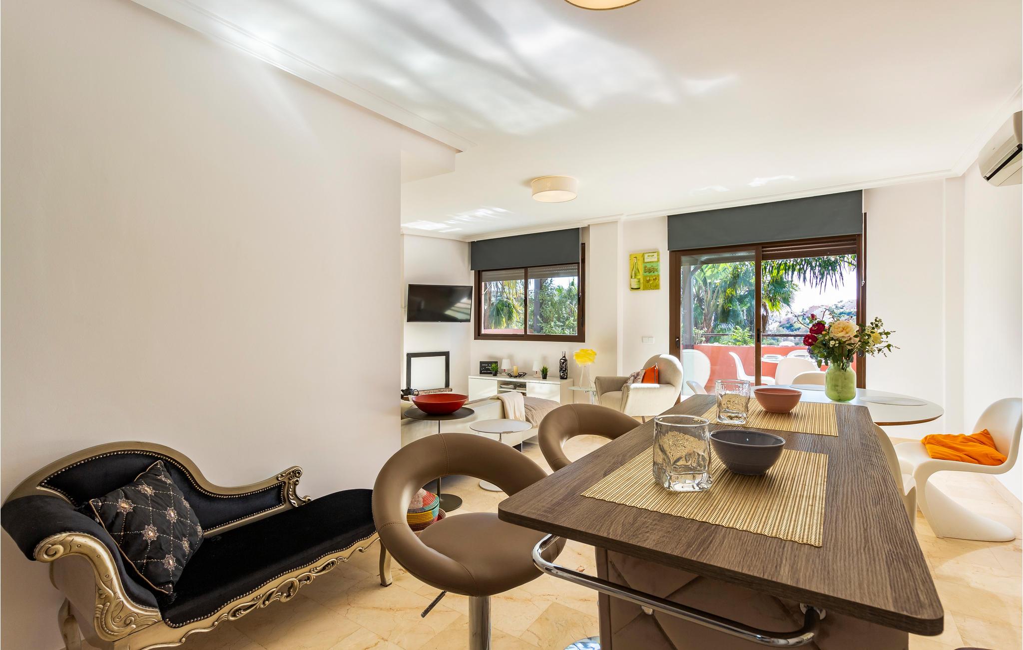 I bor i et skønt feriekompleks med smukke haver og fælles pool, hvor livet er fantastisk. Herfra kan du tage på ture til Gibraltar, Estepona eller Marbella, hvis bylivet er noget for dig.