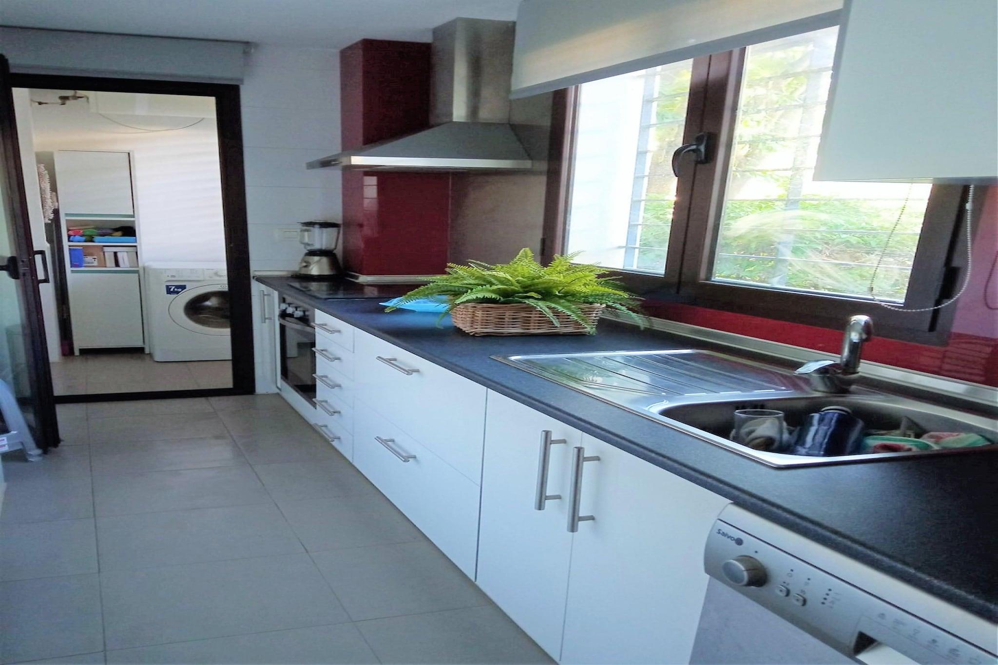 På 1. etage: (Stue(Fjernsyn, spisebord, sofahjørne, balkon eller terrasse, klimaanlæg), Køkken(brødrister, komfur, kaffemaskine, ovn, mikrobølgeovn, opvaskemaskine , køle-fryseskab), Soveværelse med badeværelse(dobbeltseng, bruser, håndvask, toilet, klimaanlæg), Soveværelse med badeværelse(enkeltseng, enkeltseng, bruser, håndvask, toilet, klimaanlæg)) have, swimmingpool(deles med andre gæster), padelbane
