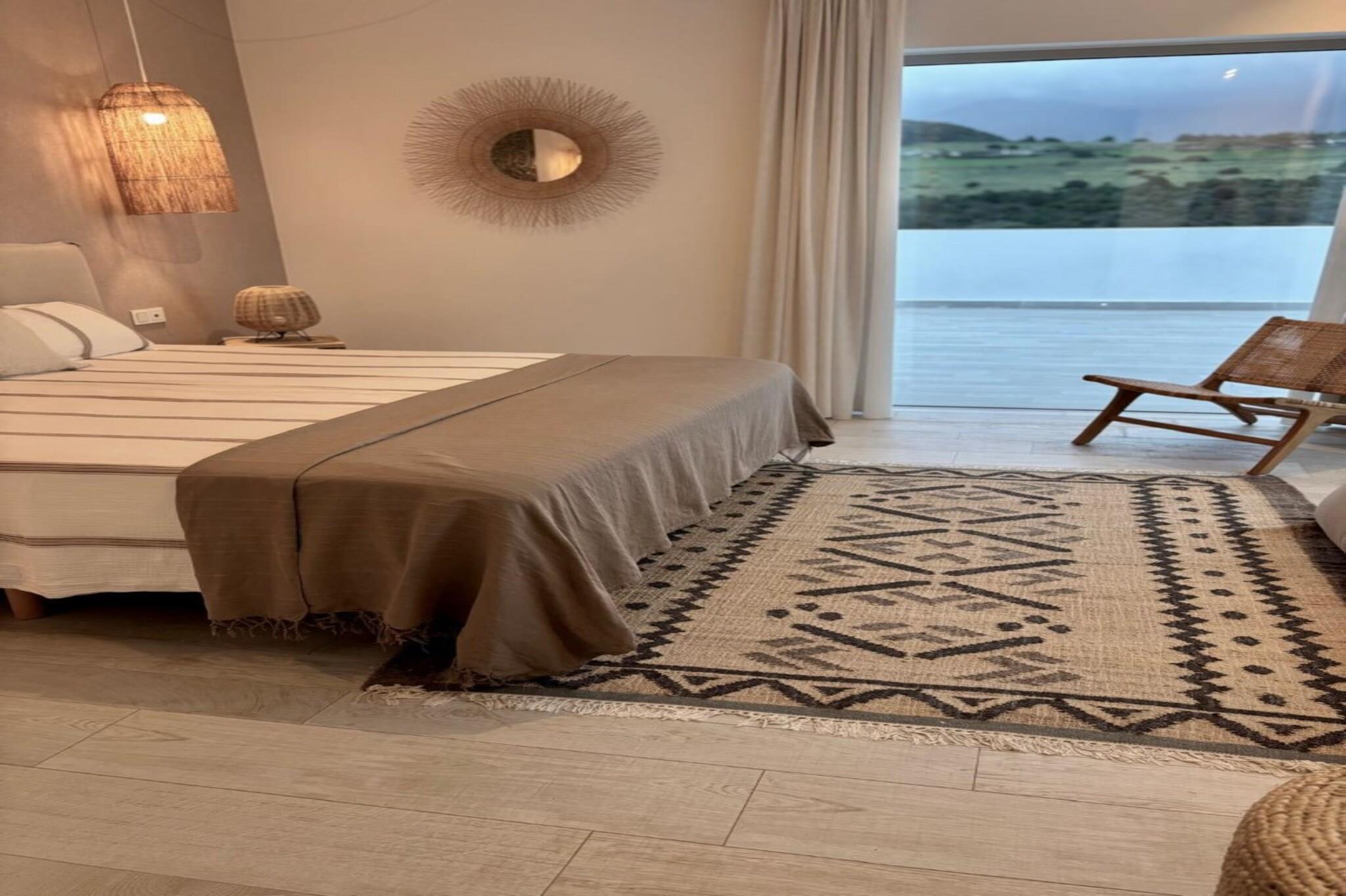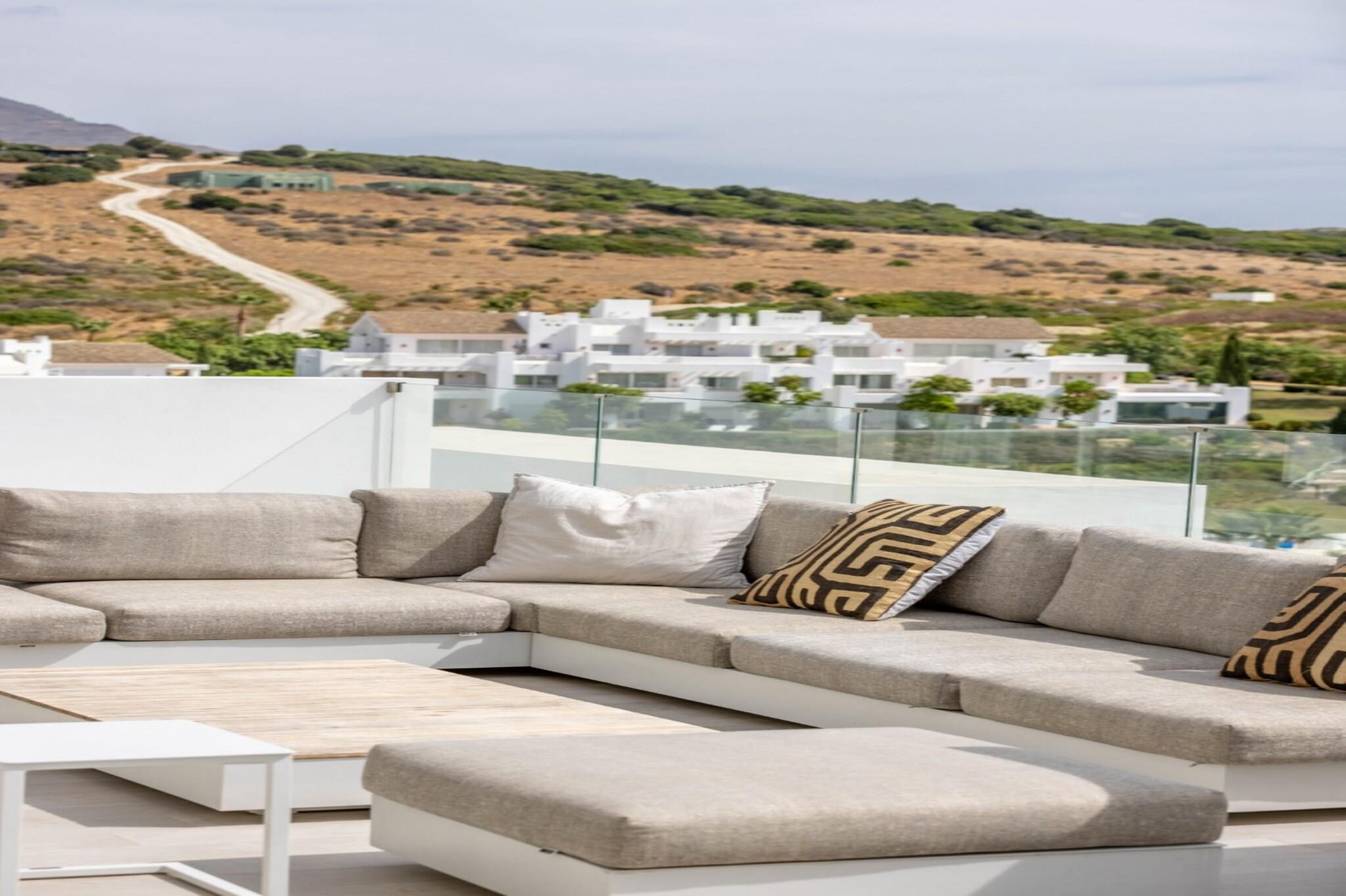 , åbent køkken(kogeplade(elektrisk), elkedel, brødrister, kaffemaskine, ovn, mikrobølgeovn, opvaskemaskine , køle-fryseskab, , ), stue / spisestue(Fjernsyn(fladskærm, parabol, Smart-TV), spisebord, sofahjørne, radio), soveværelse(enkeltseng, enkeltseng), soveværelse(enkeltseng, enkeltseng), soveværelse(king size-seng), badeværelse(bruser, håndvask, toilet, føntørrer), badeværelse(bruser, håndvask, toilet, føntørrer), fitnessrum, garage, Internetadgang, Børne swimmingpool, Havemøbler, tremmeseng, hottub, sauna, vaskemaskine, balkon, varme, klimaanlæg, terrasse, have, solstole, parkering, swimmingpool(deles med andre gæster), barnestol, strygejern, Alarm