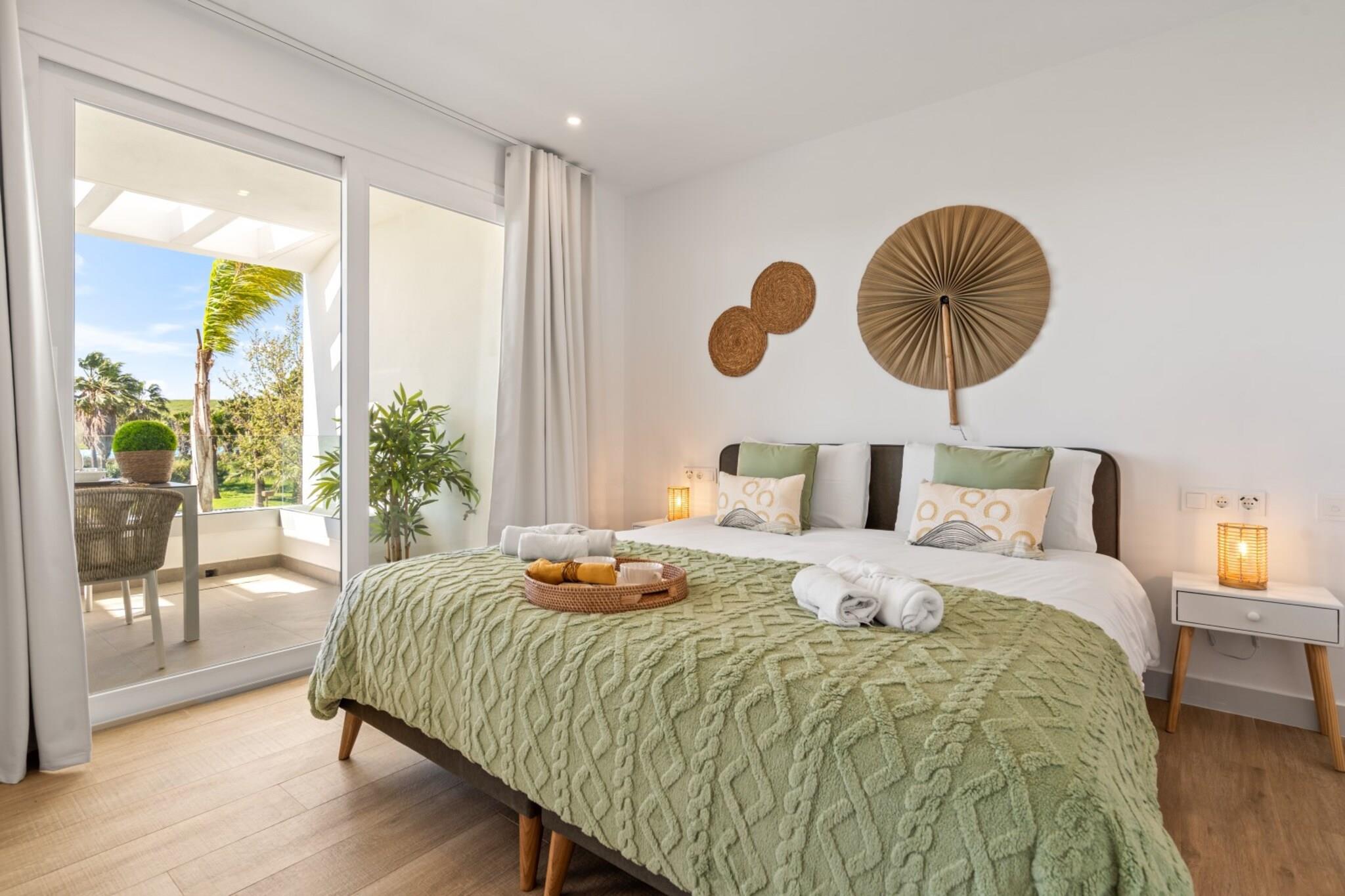 Slap af i denne stilfulde lejlighed beliggende i det eftertragtede Alcazaba Lagoon-område i Casares nær Estepona. Omgivet af anlagte haver og moderne middelhavsarkitektur tilbyder boligen en afslappet base på Costa del Sol for par, familier eller venner, der ønsker at nyde resortfaciliteter tæt på kysten. Indvendigt har lejligheden på første sal plads til op til fire gæster fordelt på to soveværelser, der begge er indrettet med en dobbeltseng. Den lyse stue og spiseplads har komfortable siddepladser, et tv og et spisebord til fælles måltider. Et veludstyret køkken gør det nemt at tilberede måltider under opholdet. To badeværelser med brusere og toiletter giver ekstra komfort, mens internetadgang, aircondition, varme, elevator og vaskemaskine sikrer daglig bekvemmelighed. Træd ud på altanen og terrassen, hvor havemøbler skaber et behageligt sted at slappe af i den middelhavssol. Gæsterne har også adgang til resortets fælles faciliteter, herunder en swimmingpool, børnebassin, anlagte haver og wellness-faciliteter såsom et fitnessrum, sauna og to træ-spabade. Der er parkering til rådighed inden for komplekset. Alcazaba Lagoon er kendt for sin turkisblå lagune og afslappede resortstemning. Det nærliggende Estepona byder på sandstrande, strandpromenader, restauranter og butikker, mens flere golfbaner og attraktioner ved kysten ligger inden for kort køreafstand.
