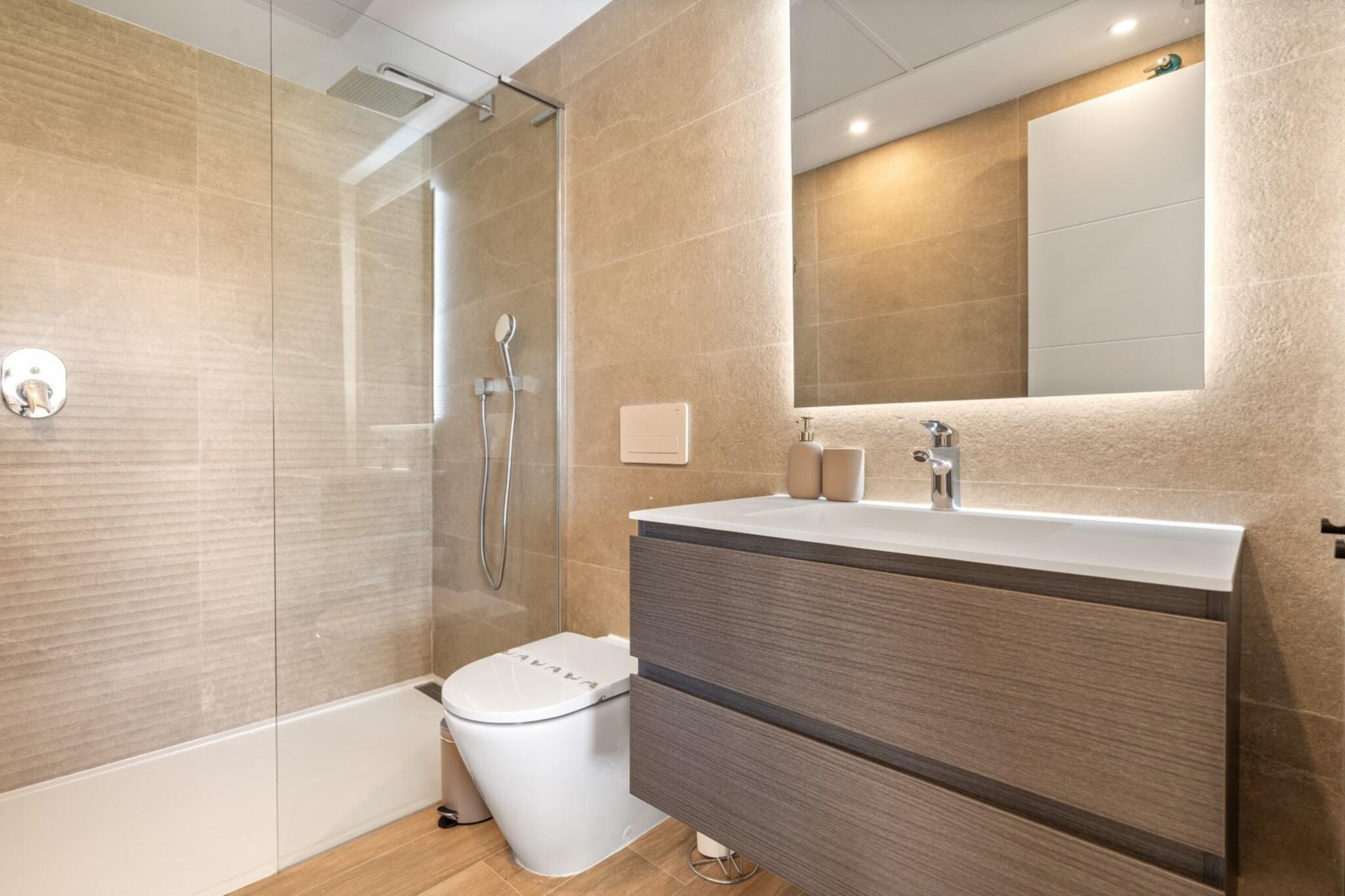 På 1. etage: (åbent køkken(elkedel, brødrister, kaffemaskine(espresso), ovn, mikrobølgeovn, opvaskemaskine , køleskab, fryser, , ), stue / spisestue(Fjernsyn, spisebord, sofahjørne, radio), soveværelse(dobbeltseng), soveværelse(dobbeltseng), badeværelse(bruser, håndvask, toilet), badeværelse(bruser, håndvask, toilet)) , fitnessrum, Internetadgang, Børne swimmingpool, Havemøbler, hottub, hottub, sauna, vaskemaskine, balkon, varme, klimaanlæg, terrasse, have, parkering, swimmingpool(deles med andre gæster), strygejern, føntørrer, Alarm