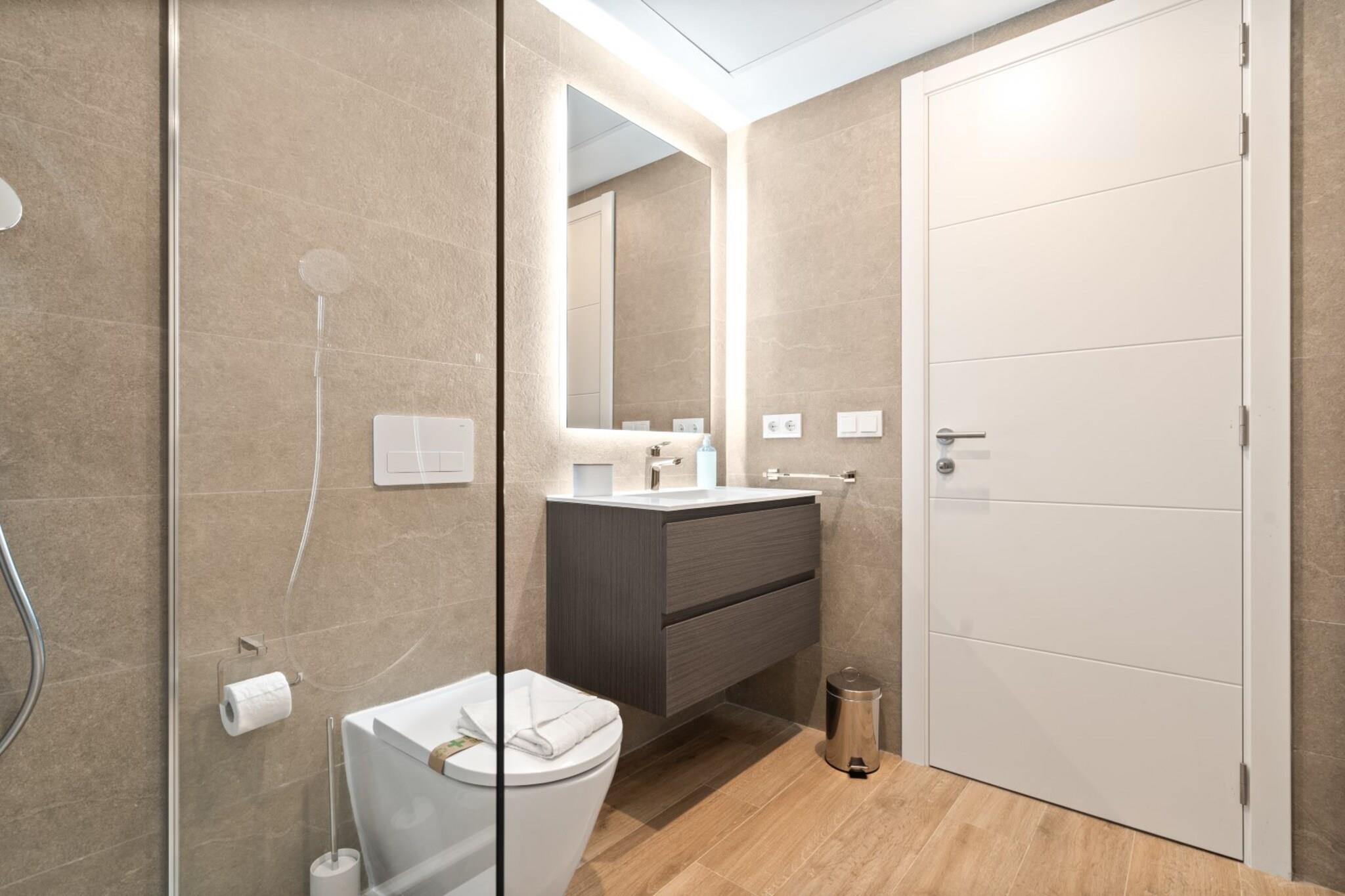 Denne stilfulde lejlighed i stueetagen ligger i det populære boligområde Alcazaba Lagoon i Casares nær Estepona og byder på et fredeligt fristed på Costa del Sol, omgivet af anlagte haver og moderne middelhavsarkitektur. Det er et fremragende valg for par, der ønsker at nyde resortets bekvemmeligheder tæt på kysten. Indenfor har lejligheden plads til op til to gæster i et soveværelse med en kingsize-dobbeltseng. Den lyse stue og spiseplads har komfortable siddepladser, et Smart-tv, en radio og et spisebord til afslappede måltider indendørs. Et veludstyret køkken gør det nemt at tilberede måltider under dit ophold. Lejligheden har også et badeværelse med brusebad, håndvask og toilet, mens internetadgang, aircondition, varme, adgang til elevator og en vaskemaskine sørger for daglig komfort. Træd ud på den private terrasse og i haveområdet, hvor udendørs siddepladser og liggestole skaber et afslappende sted at nyde Middelhavssolen. Gæsterne har også adgang til resortets fælles faciliteter, herunder en swimmingpool, en børnepool, anlagte haver og wellness-faciliteter såsom et fitnessrum, en sauna og to træ-spabade. Der er parkering til rådighed inden for komplekset. Alcazaba Lagoon er kendt for sin turkisblå lagune og afslappede resortstemning. Det nærliggende Estepona byder på sandstrande, strandpromenader, restauranter og butikker, mens golfbaner og maleriske kystbyer er let tilgængelige for dagsture langs Costa del Sol.