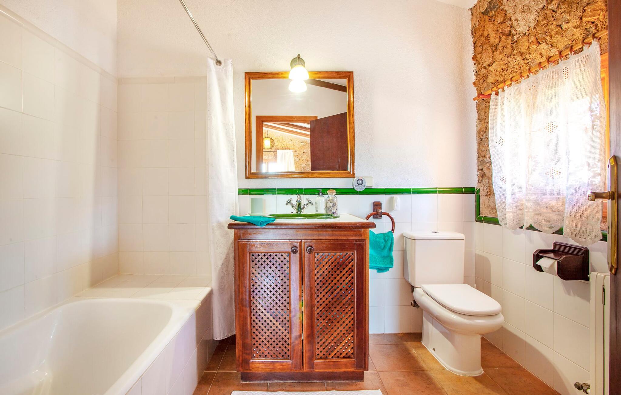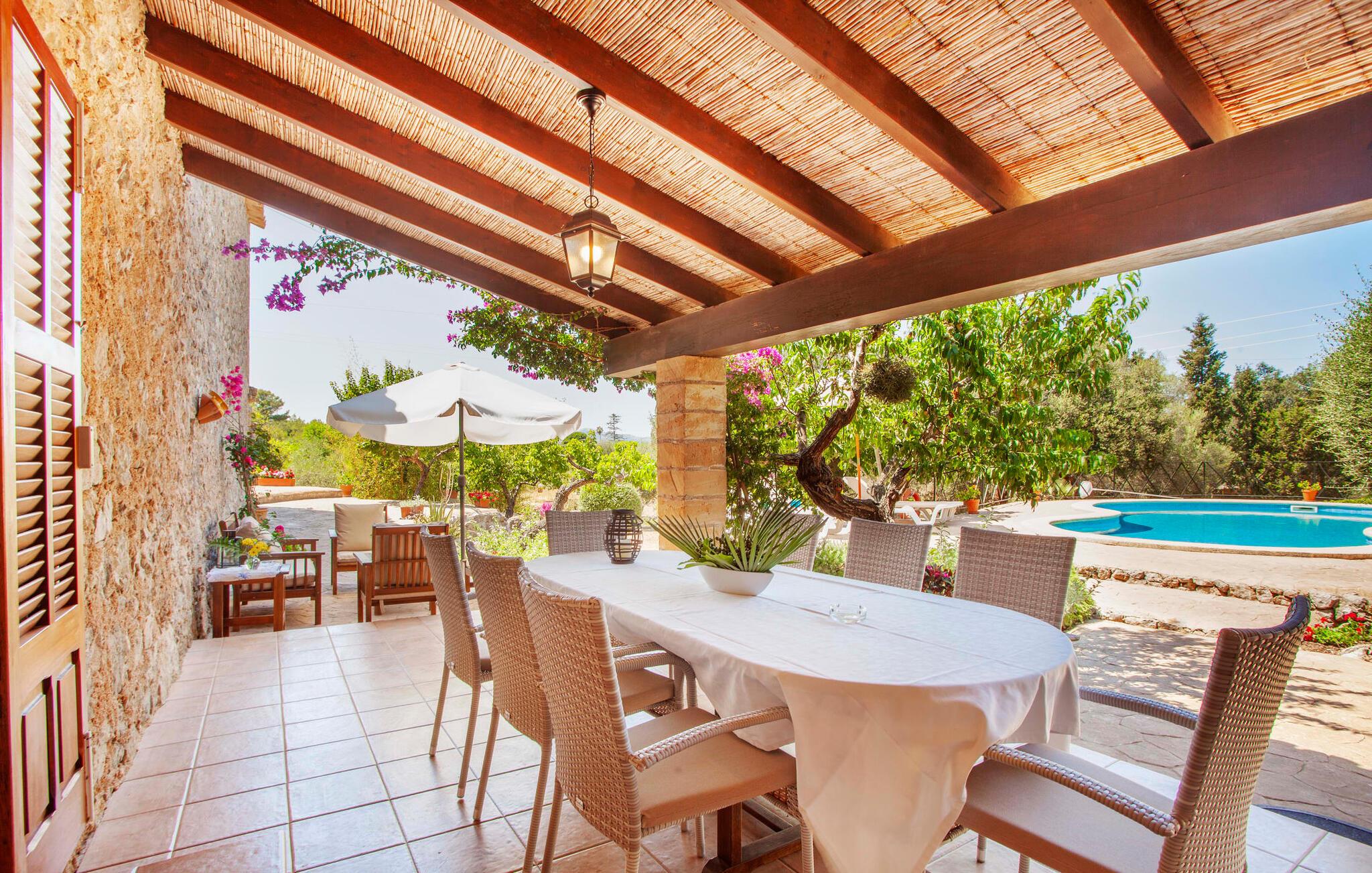 Velkommen til Mallorca og "Cases de Son Duc" - disse to klausuler ser ud til at være uløseligt forbundet. Det traditionelle stenbrudshus fra 1901 fortæller historien om Mallorca. Den rustikke facade med brune persianer er blevet nænsomt renoveret med omhyggelig opmærksomhed på bevarelsen af stuehuset; Dyr og traktorer skaber en landlig atmosfære. Huset er præget af en nærmest eventyrlig pragt, omgivet af lilla bougainvilleaer, vinstokke, oliven- og citrustræer og kaktusser. Den smukke have er overalt. I og jeres familie eller venner kan føle jer rigtig godt tilpas på dette vidunderlige, afsondrede sted. En organisk formet pool, som er omkranset af en omgivende terrasse, bidrager også til dette. Her kan I indstille jeres liggestole til at slappe af og nyde et langt solbad. Bagefter kan I tilberede en lækker BBQ i det lille, men fine udekøkken med indbygget grill. Der er talrige udendørs siddepladser - fra den overdækkede spiseplads til den skyggefulde lounge og de andre spredte hjørner, hvor I kan nyde jeres morgenkaffe eller et aromatisk glas rødvin og afslutte dagen i fred med at sige godnat og stille med lyden af natur. Interiøret i "Cases de Son Duc" er også et sted at blive hængende, fordi interiøret afspejler bondehyttens naturlighed, som blev bæredygtigt restaureret i 2000. Tilbage er blotlagte stenbrudsmure og massive træbjælker. De typiske terracotta- og keramiske fliser med kunstfærdige mønstre i køkken og badeværelse fortsætter den antikke charme. Samtidig blev der ved valg af udstyr lagt særlig vægt på den mest moderne komfort. Det betyder, at jeres bevidst valgte ferie med selvforplejning i det fuldt udstyrede køkken bliver en sand fornøjelse. Møblerne minder om et mallorcansk landsted - praktisk, med et strejf af antik og masser af flair. Takket være denne atmosfære kan I nyde jeres tid i de generelle opholdsrum. Soveværelserne sikrer også en afslappende søvn. Med tre badeværelser (et en-suite til master bedroom ovenpå), forbliver komforten. Fra soveværelset kan I endda få adgang til gårdhaven via en ekstern stentrappe. Værelset er ideelt til to familier - selv med fire par kan I tilbringe en harmonisk tid i sådanne omgivelser. Men sørg for at udforske omgivelserne i denne vidunderligt afsidesliggende villa. Den behagelig atmosfære i dette charmerende landsted afspejler også karakteren af dette område på den østlige del af øen. Den middelalderlige Artà er meget rolig med en gågade, smukke butikker, små caféer med lokale farver og gode restauranter. Fra villaen kan I nå stedet til fods på cirka 40 minutter. Trods den absolutte fred, er I optimalt forbundet og kan udforske det omkringliggende område, som er præget af små kystbyer som Canyamel og Cala Millor. Der er også den livlige Cala Ratjada med sit aktive natteliv - et besøg værd, især i lavsæsonen, med sin havnepromenade spækket med restauranter. Denne region er et paradis for golfspillere - "Cases de Son Duc" ligger trods alt lige mellem Capdepera og Canyamel Golf. Den nænsomt renoverede villa "Cases de Son Duc" ligger i en vidunderlig, afsondret beliggenhed mellem Capdepera, Canyamel og Artà. Dette blide bakkeland er enestående smukt og byder på en masse variation. Byerne, hvor I kan gøre jeres daglige indkøb, ligger godt 10 minutter væk i bil. Eller I kan shoppe på de ugentlige markeder og lære de rolige byer at kende. Kysten med nogle ubebyggede strande er 15 minutter væk. Bemærk venligst, at denne ejendom ikke accepterer ungdomsgrupper eller polterabender. En ungdomsgruppe på denne ejendom består af personer på 25 år eller derunder. Book ikke denne ejendom, hvis I er en ungdomsgruppe eller en polterabendgruppe, da jeres reservation vil blive afvist, når den er booket, hvilket også kan være tilfældet ved ankomst til ejendommen eller under jeres ophold, og I vil ikke modtage en refusion.