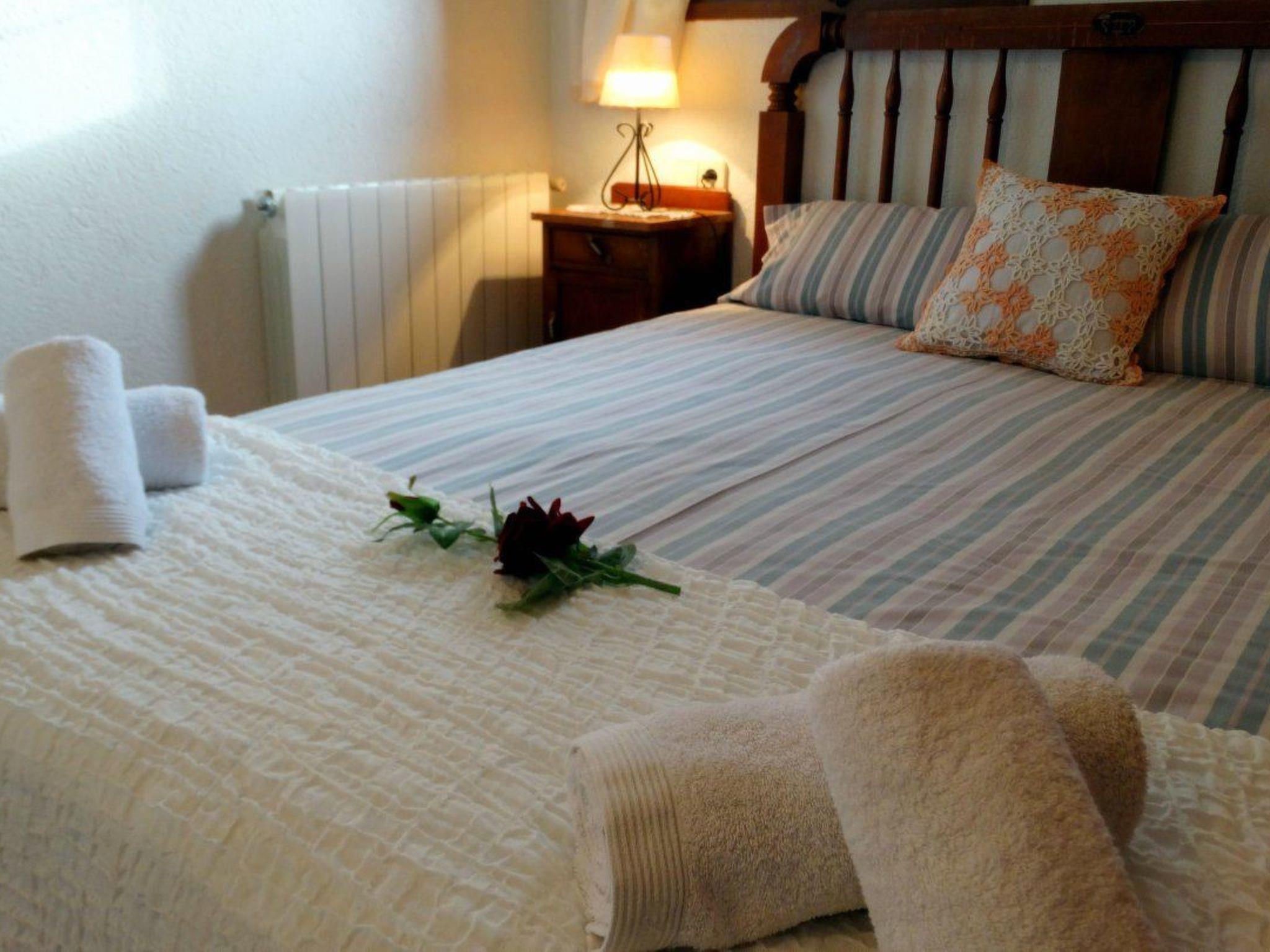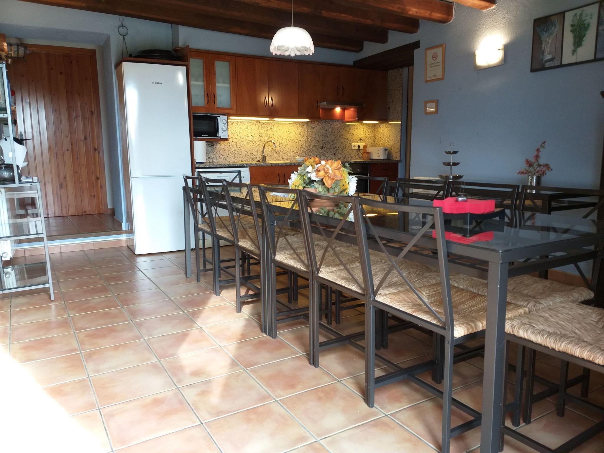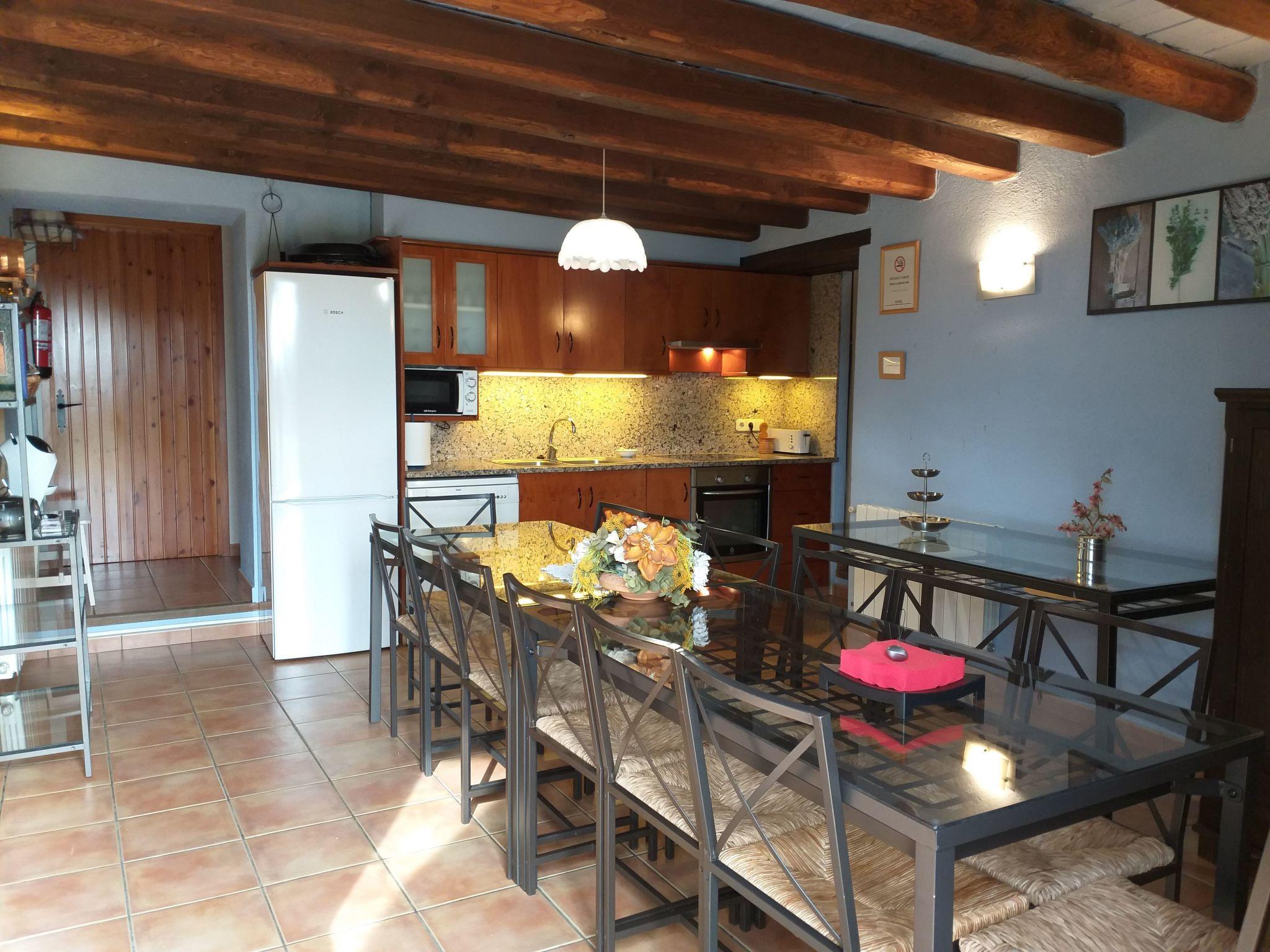The interior of La Pahissa reflects the warmth and comfort of a house designed for the enjoyment of its guests. With capacity for a single group, it guarantees total privacy during your stay. On the ground floor of the house, there is a dining room and kitchenette, equipped with appliances such as microwave, fridge, freezer, oven, ceramic hob, blender, toaster, coffee maker, dishwasher and washing machine. The furniture includes a table with 11 chairs, and the living room has sofas for five people, TV, DVD, satellite channels, a library and free WIFI. The house has a double suite with full bathroom, another room with two single beds, a third double room on the ground floor and three more rooms on the first floor, a suite with a double bed and an extra single bed and a full bathroom inside, another double room and a last one with two single beds, adding two more shared bathrooms, one on each floor.