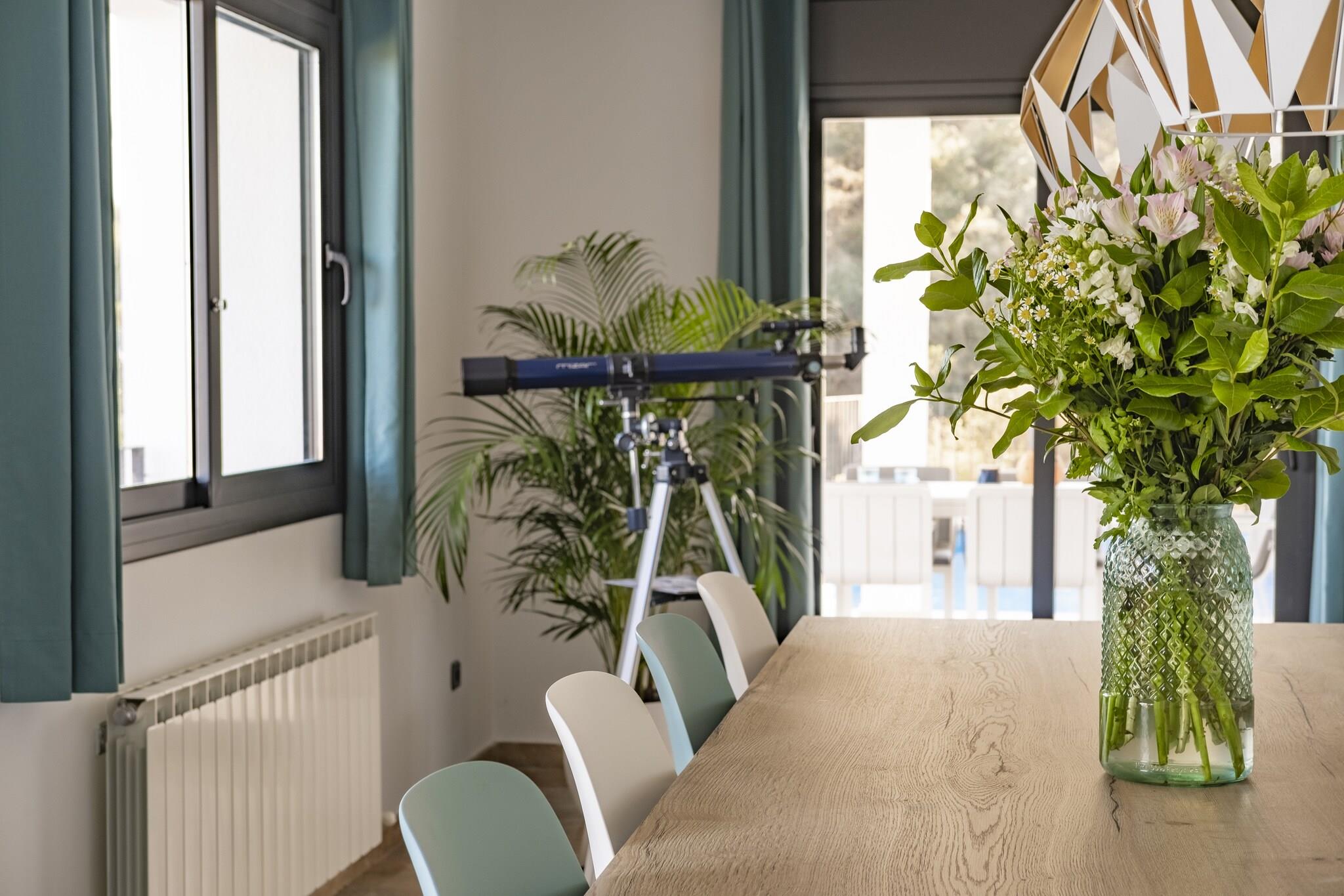 Stueetage: (sofastue(dobbeltskabsseng, Fjernsyn, sofahjørne), spisestue(spisebord(8 personer)), Køkken(kogeplade, elkedel, brødrister, emhætte, kaffemaskine, ovn, mikrobølgeovn, opvaskemaskine , køle-fryseskab, Saftpresser), vaskerum (vaskemaskine, strygebræt, strygejern), toilet, terrasse, air conditioning(paid)) På 1. etage: (soveværelse(dobbeltseng(180 x 200 cm), Fjernsyn, balkon eller terrasse), soveværelse(enkeltseng(90 x 200 cm), enkeltseng(90 x 200 cm), balkon eller terrasse), Soveværelse med badeværelse(enkeltseng, enkeltseng, bruser, håndvask, toilet), badeværelse(bruser, håndvask, toilet), air conditioning(paid)) tremmeseng, grill, parkering, swimmingpool(privat, udendørs, opvarmet, indhegnet, opened from Jan upto and including Dec), barnestol