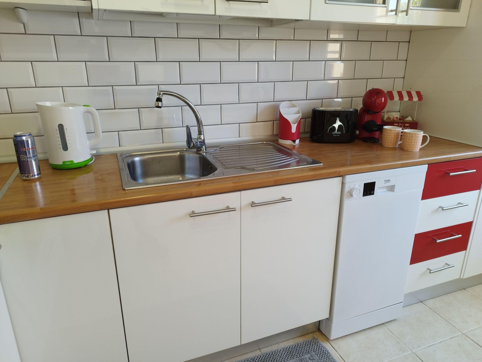 Separate fully-equipped kitchen: Fridge-freezer - Coffee maker - Kettle - Toaster - 4-burner ceramic hob - Large capacity built-in oven - Microwave oven - Extractor hood - Dolce Gusto capsule coffee maker - Citrus press - 6 place dishwasher - Sink - Crockery and kitchen utensils. 1 table with 4 chairs. A washing machine is also available near the patio.