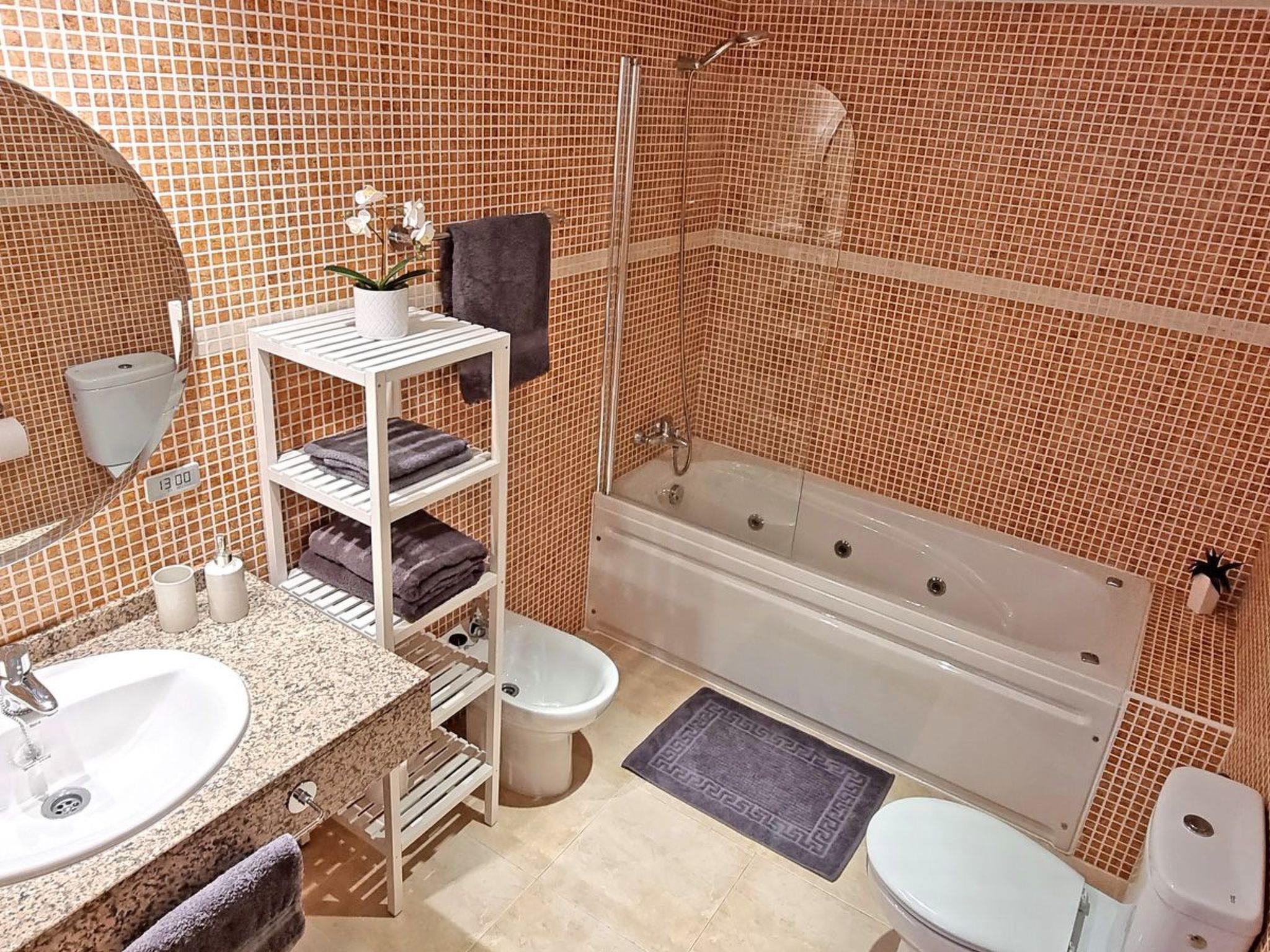 sinkshower / bathtub with whirlpool functiontoiletbidetshelfmirror AVAILABLE FOR FREE IN THE APARTMENT:+ internet+ washing machine+ clothes horse+ iron+ hair dryer+ safe+ towels+ cot, high chair+ Bed linen / duvet cover OTHERS: