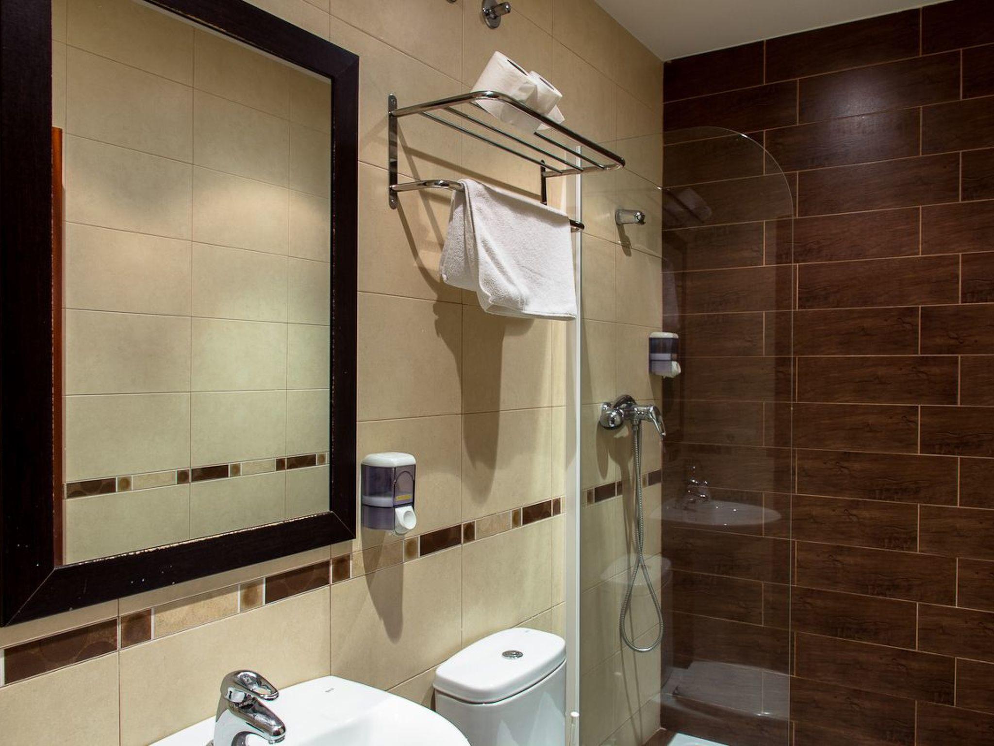 Dispensers with soap and gel in bathrooms, and dishwasher dispenser in kitchen.