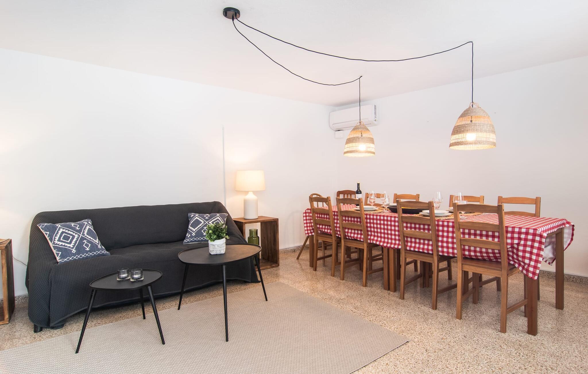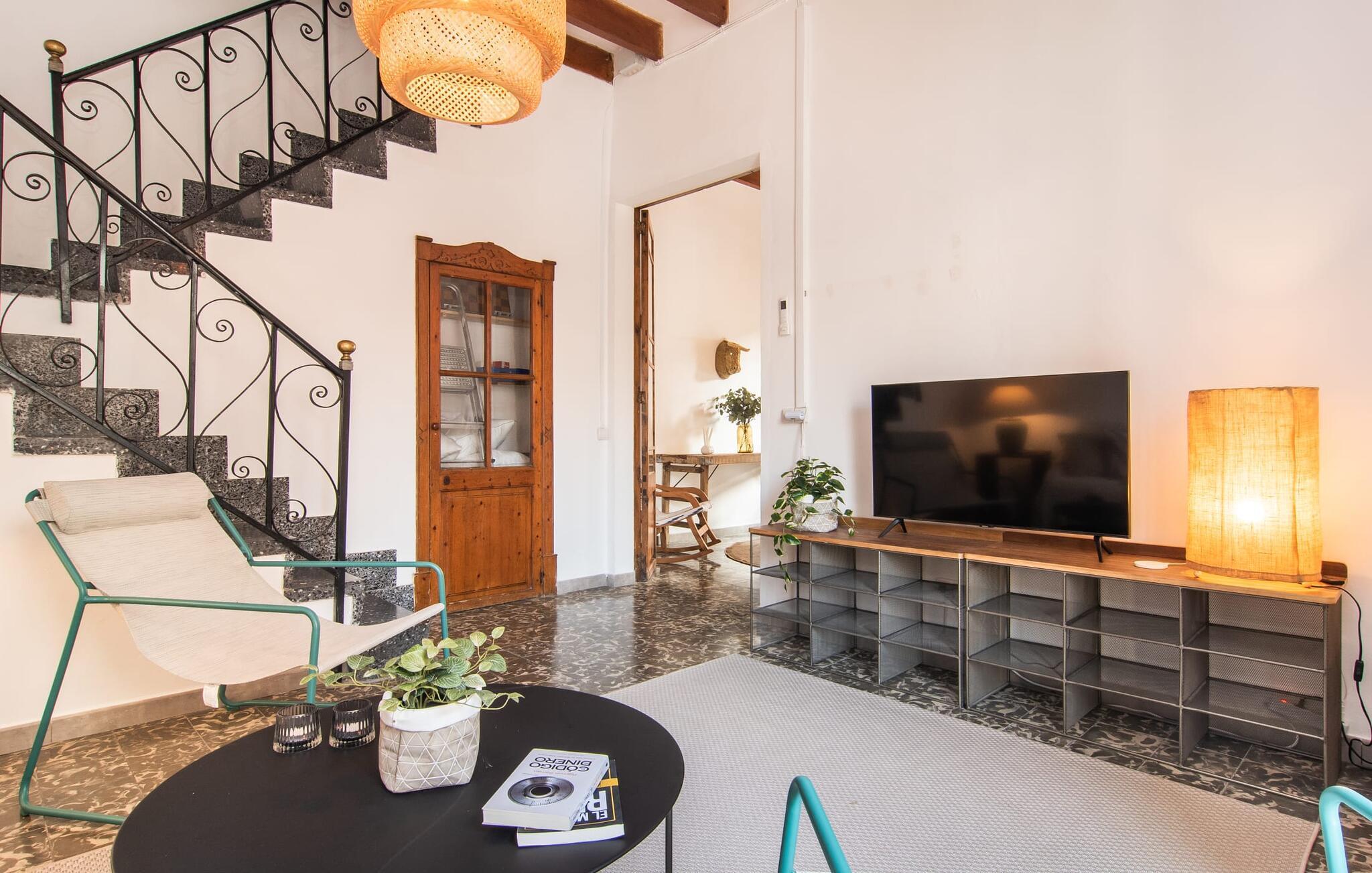 Det smagfuldt renoverede rækkehus "Cervantes 14" ligger i hjertet af Capdepera og byder på masser af plads til op til 9 personer. Herfra kan du nemt udforske den historiske gamle bydel og de mange smukke sandstrande på Mallorcas østkyst. Du vil helt sikkert nyde at bruge den rummelige tagterrasse med hele gruppen. Den er ideel til hyggelige grillaftener og hyggelige sommeraftener, men også blot til at slappe af et par timer under stjernerne efter en lang dag på stranden. I stueetagen er der en lille gårdhave, hvor du finder et komplet badeværelse med bruser samt et vaskerum. Her kan du komfortabelt friske op umiddelbart efter hjemkomsten fra stranden. Herfra fører en udvendig trappe til opholdsstuen. Du vil blive budt velkommen af omhyggeligt renoverede værelser. Gamle, velholdte klinkegulve, de originale trædøre og andre typiske mallorcanske elementer er blevet kombineret med moderne, smagfuld indretning. På 1. boligplan er der et venligt indgangsparti, en lys, indbydende stue og et hyggeligt soveværelse. Trappen fører til anden sal. Det huser en stor spisestue med en komfortabel sofa, et moderne, fuldt udstyret køkken, et badeværelse og endnu et soveværelse. En anden trappe fører til tredje sal med de resterende soveværelser. En af dem har en køjeseng. Der er stabilt WiFi i hele bygningen. Alle fire soveværelser er udstyret med varm-kold aircondition. Sørg for at tilbringe en afslappende ferie i et komfortabelt, autentisk feriehus på det østlige Mallorca. Rækkehuset ligger nedenfor den gamle bydel i hjertet af Capdepera. Supermarkeder er inden for gåafstand. De smukke strande på østkysten såsom Cala Ratjada og Cala Mesquida kan nås på mindre end 10 minutter i bil. Dette er et Fincallorca feriehus.