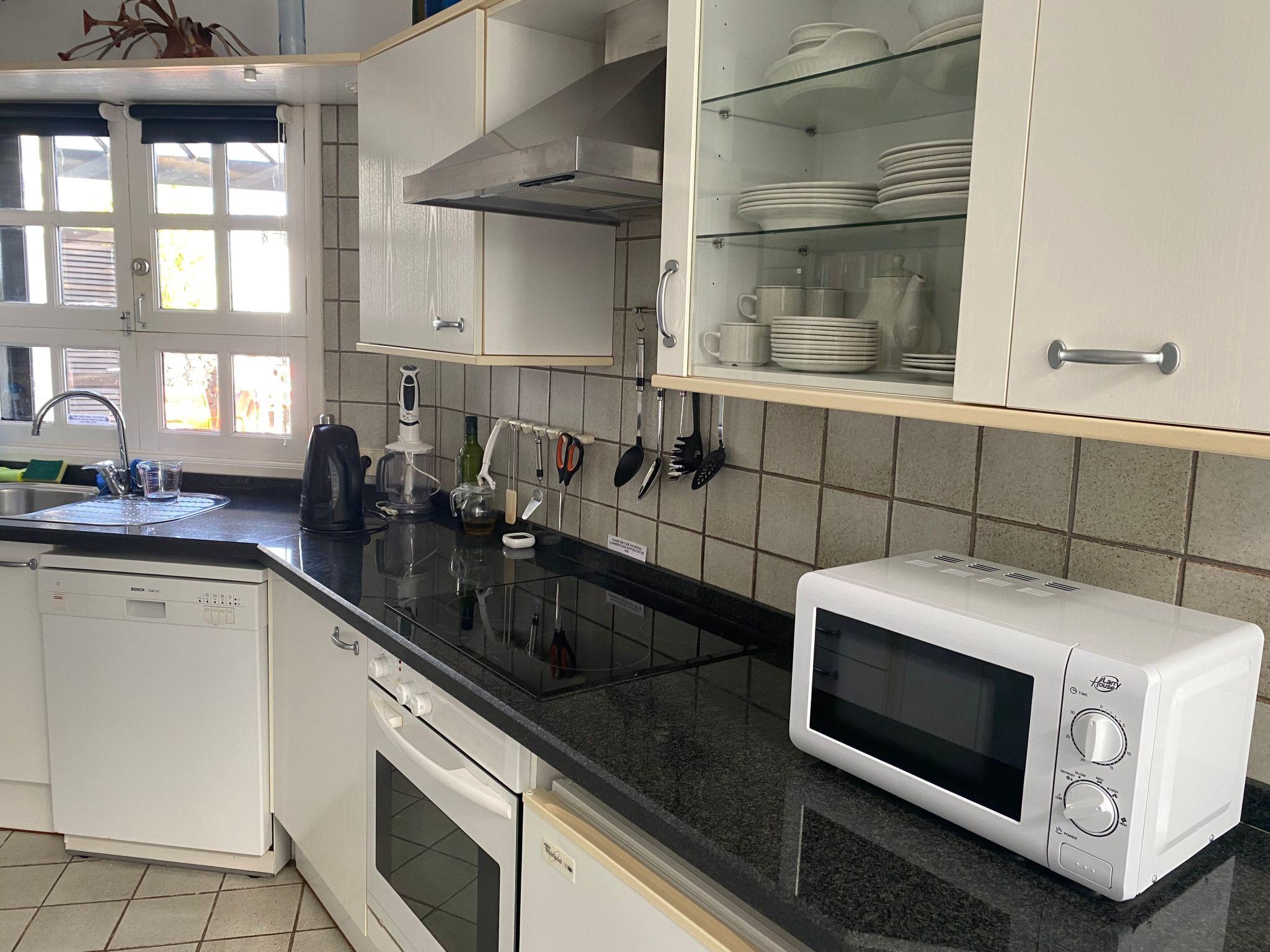 The interior of the holiday home is characterised by its well-considered furnishings to guarantee you and your loved ones a pleasant stay. Two cosy bedrooms and two bathrooms ensure that there is enough privacy for all guests. The practical side of the house is emphasised by the washing machine and dishwasher for sole use, while an existing fan provides refreshing air circulation. A kettle completes the offer, making the accommodation a true home away from home.