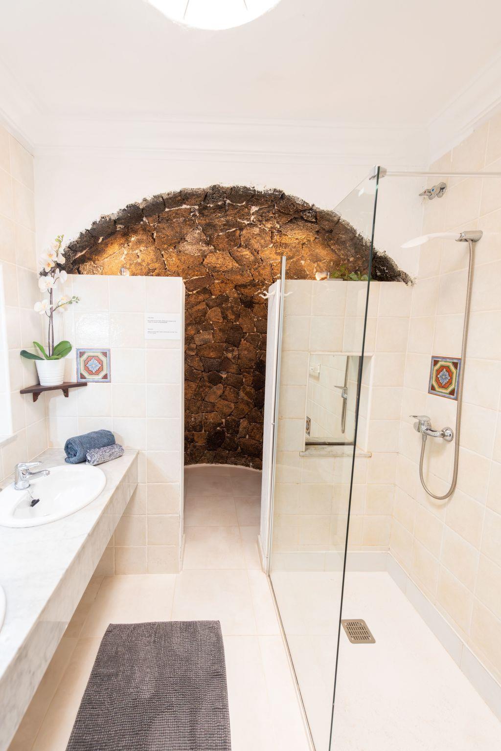 Inside, the single-storey house has three bedrooms and two bathrooms that leave nothing to be desired. The fully equipped kitchen has everything your heart desires: a large fridge, freezer, dishwasher, washing machine, hob and oven, microwave, kettle, coffee machine and toaster. There is also a spacious living room with a dining area for socialising. The first bedroom with a double bed leads to an adjoining bathroom with a bathtub, while the third bedroom with a 1.40 metre wide mattress and a bathroom are set directly in a grotto.