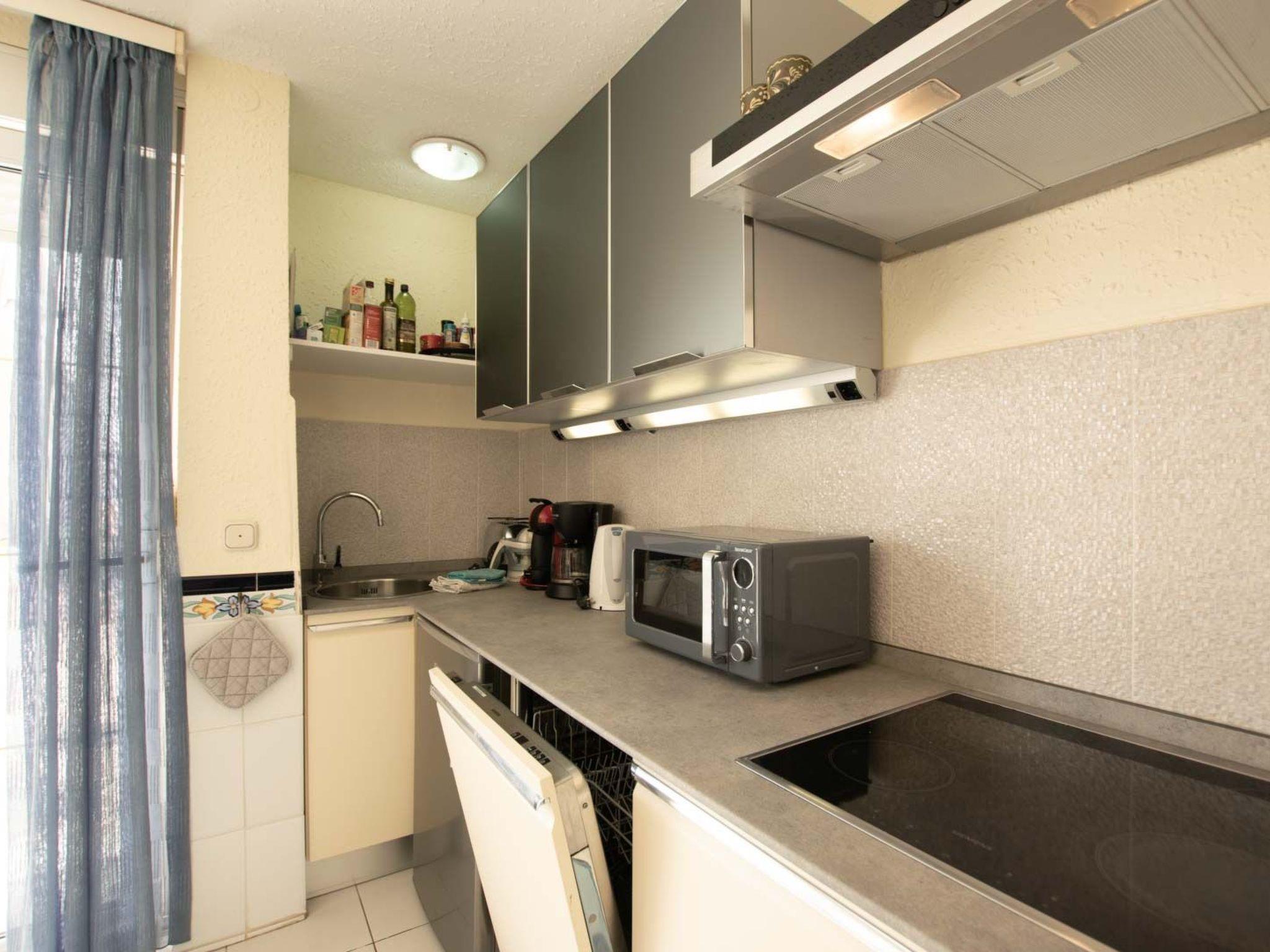 For a small budget and yet very tastefully furnished. The large heated communal pool (13x5m) is at your disposal. Combined living room/bedroom with small fitted kitchen, bathroom with shower.