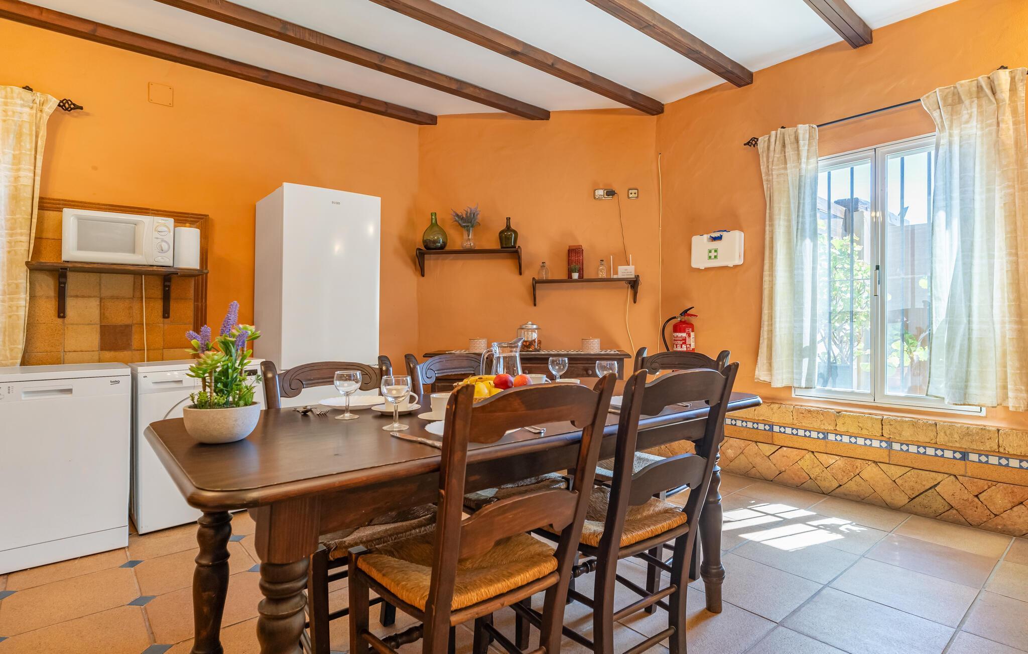 I jeres smukke hus venter jer klassisk andalusisk charme på jeres afslappende ophold i baglandet ved Costa de la Luz. I vil straks føle jer hjemme i de hyggeligt indrettede rum, hvor middelhavsfarver og flotte træbjælker skaber en varm atmosfære. Slap af om aftenen i de bløde sofaer i stuen, skab en hyggelig stemning med ild i pejsen, og nyd tiden sammen.
