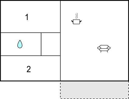 Soveværelse 16m2 (nr. 2) - 1 Soveplads. (Enkeltseng(e)). 2 Sovepladser. (Dobbeltseng(e)).