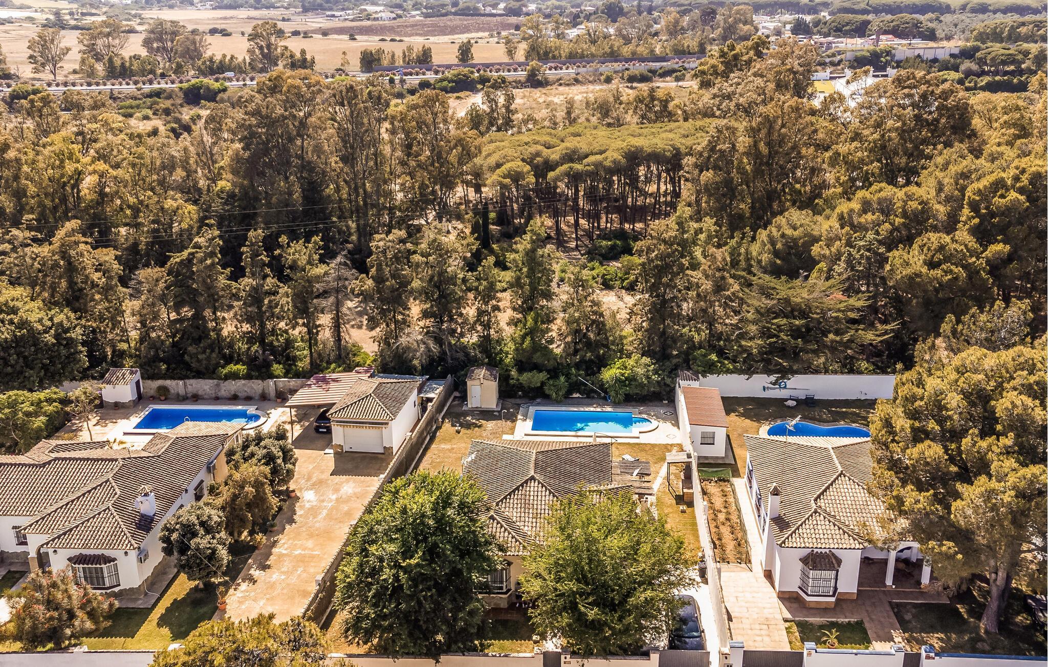 Dette feriehus i Chiclana de la Frontera er noget særligt med sin hyggelige og indbydende atmosfære. Den velindrettede bolig kombinerer traditionel charme med moderne komfort, hvilket skaber en perfekt oase til hele jeres familie. Den lyse, venlige bolig lægger op til at nyde livet og have det rart, mens den overdækkede terrasse er ideel til afslappende aftener udendørs. Haven med pool tilbyder ikke kun et skønt sted at køle ned, men også masser af plads til sjov og afslapning under den andalusiske sol.