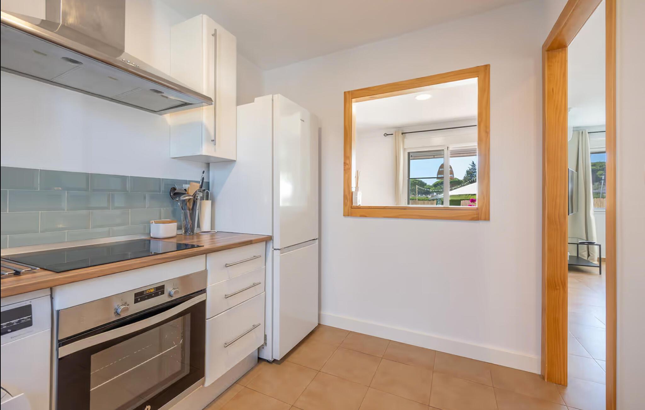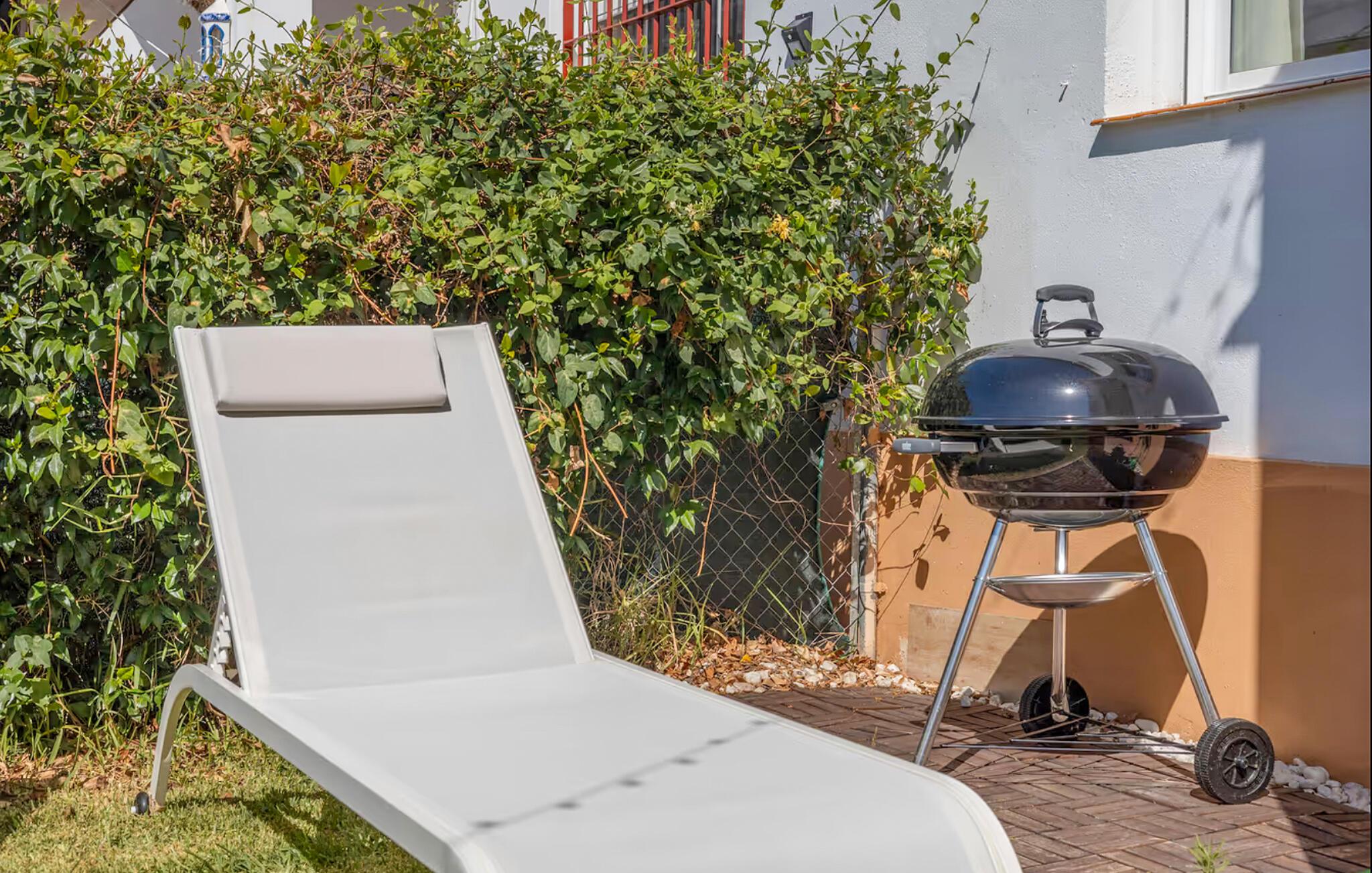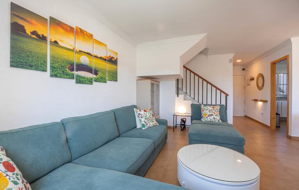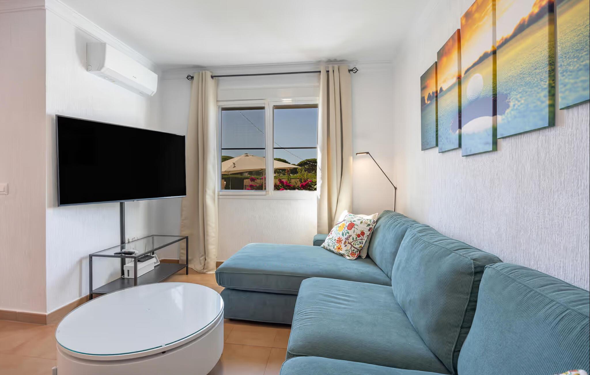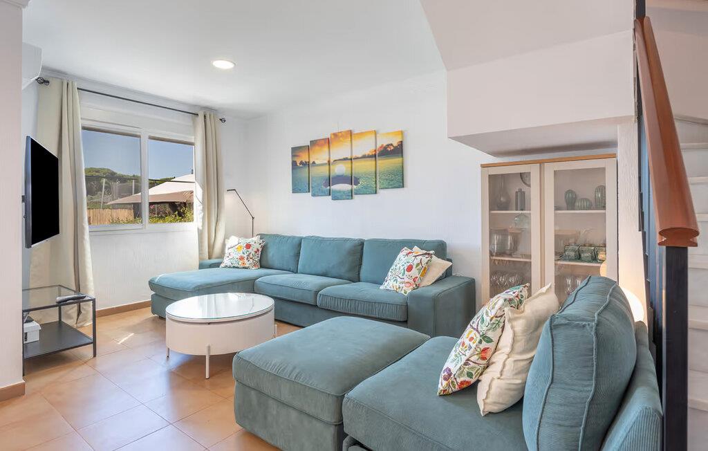 Nyd et boligkoncept præget af livlige farveaccenter og smagfulde detaljer. Slap af i den indbydende atmosfære i stuen med komfortable sofaer og et fjernsyn. Begynd dagene med en afslappet morgenmad, enten i den lyse spisestue eller udenfor på den dejlige terrasse under en parasol. Udnyt nærheden til poolen og Snup en frisk dukkert i det kølige vand lige efter morgenmaden. Tilbring rolige timer med at slappe af på de stillede liggestole. Fordyb jer i en bog eller diskuter planer for de kommende dage med jeres familie. Tilbered jeres måltider på grillen og nyd afslappende aftener.