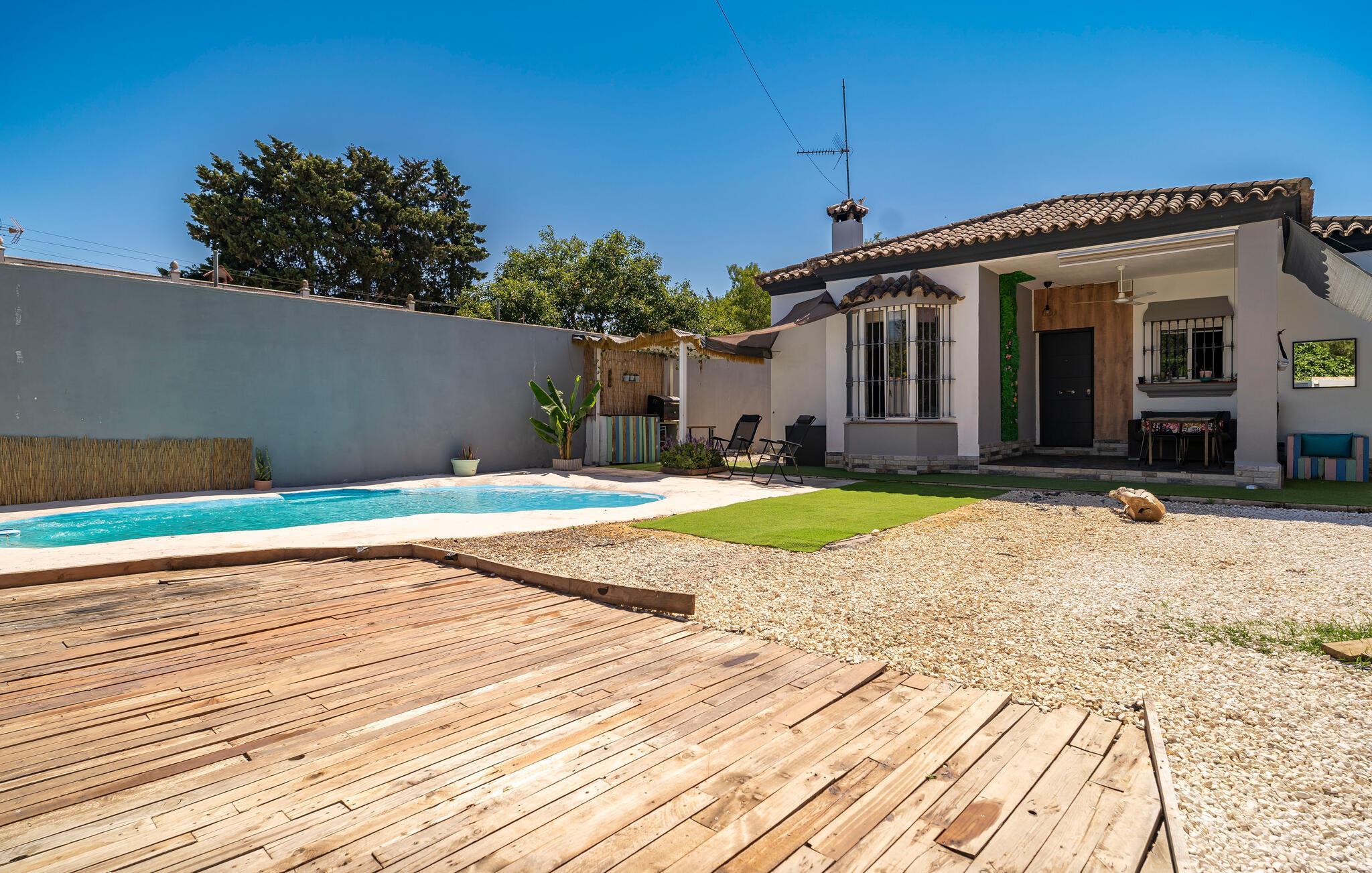 Nyd en afslappende ferie i dette smagfuldt indrettede feriehus med pool. Smukke værelser, gennemtænkte detaljer og en behagelig atmosfære skaber de ideelle rammer for afslappende dage. Start dagen på en afslappet måde med en lækker morgenmad i det moderne køkken, og lav sammen planer for jeres kommende aktiviteter. Nyd morgenmaden i den friske luft, og tag derefter en dukkert i den private pool for at køle af. Hyg jer på liggestolene, nyd en stille læsestund, eller genoplad batterierne i solen. Til hyggelige aftener er der en murstensgrill, ideel til spisning under åben himmel. Udforsk Chiclana de la Fronteras historiske centrum. Slentr gennem den gamle bydel, beundr San Juan Bautista-kirken, eller tag en afstikker til Santa Ana-pilgrimskirken. Kør ned til Costa de la Luz, og oplev fine sandstrande for enhver smag. Uanset om I solbader, svømmer eller dyrker vandsport, vil alle finde noget for deres smag her. Planlæg også en tur til Cádiz, hvor I kan slentre gennem det farverige byliv og beundre den imponerende katedral.