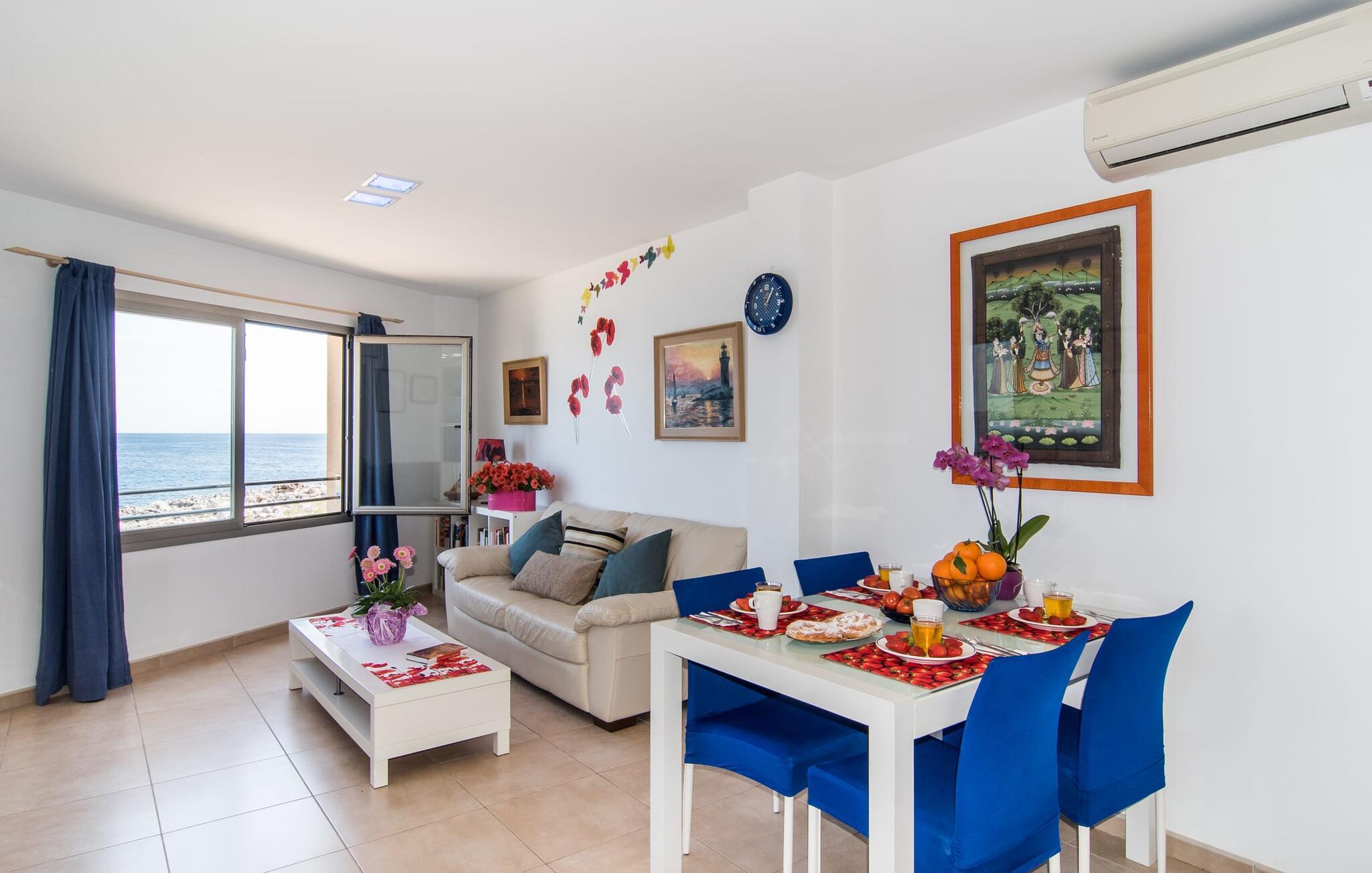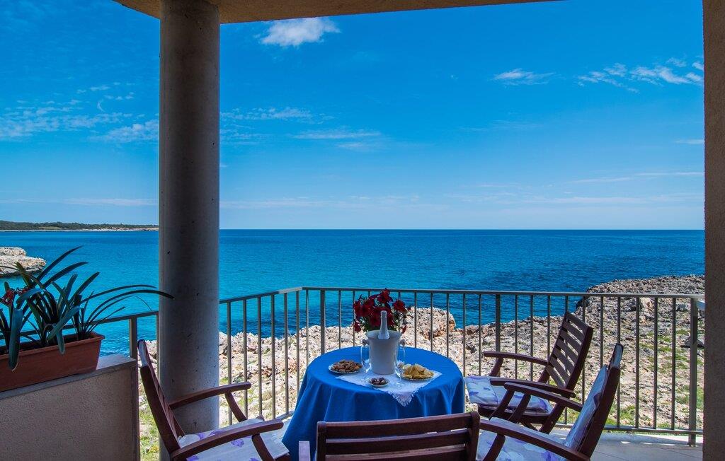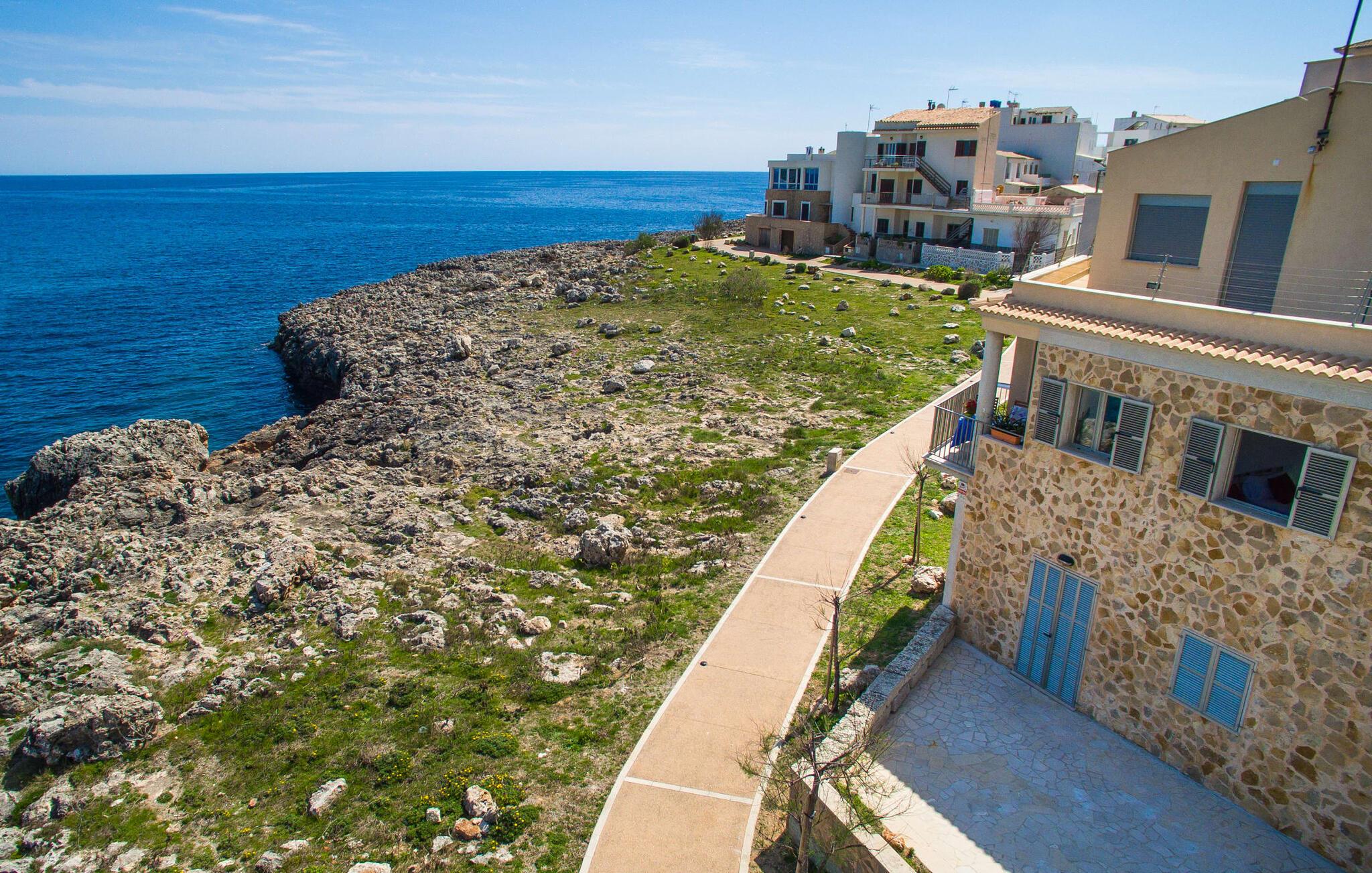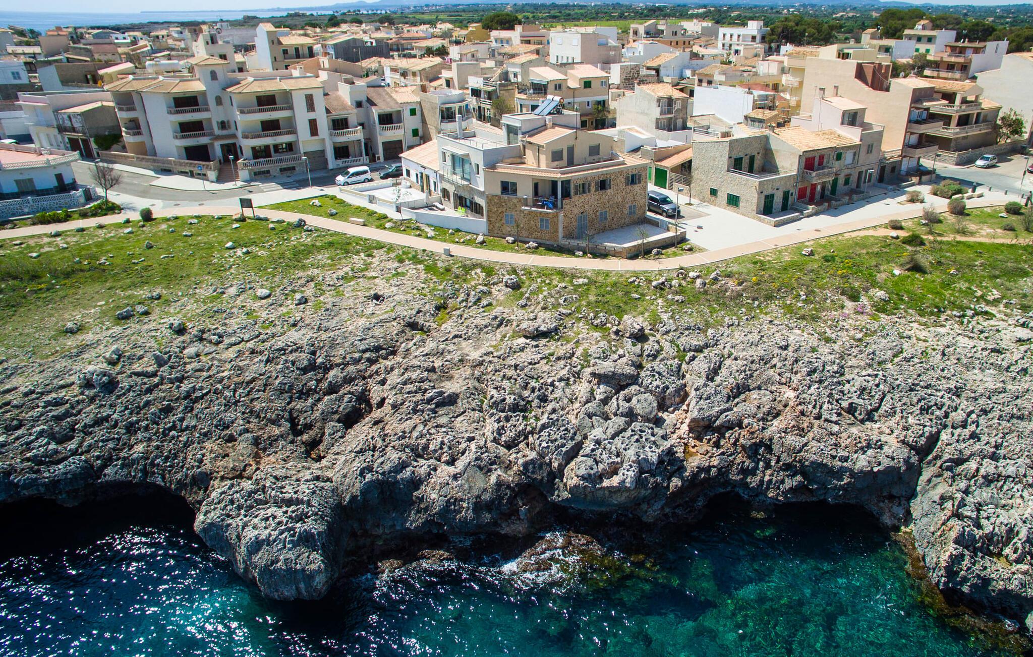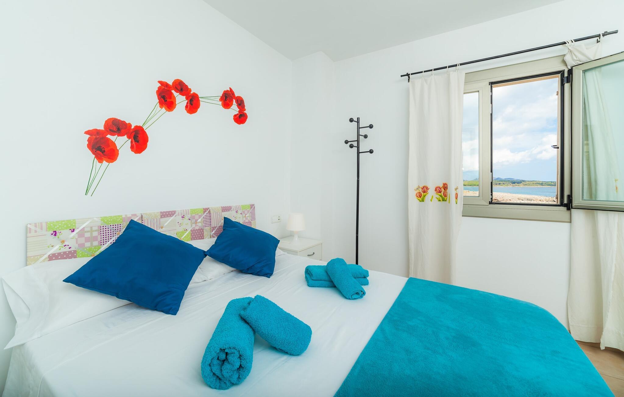 Hvis I vil starte jeres dag med udsigt over havet, nyde friskbrygget kaffe og samtidig beslutte jer for, hvordan I vil starte resten af dagen, så er ferievillaen med det stemningsfulde navn "Cielo Mar" den perfekte sted for jer. Oversat betyder det intet andet end "himmel (og) hav". Begge er utrolig tæt på hinanden her, hvilket betyder, at I kan nyde både solopgang og solnedgang fra denne lille plet. Om aftenen fuldender den glitrende månereflektion på vandet den romantiske atmosfære. Denne velholdte lejlighed er et glimrende alternativ til en hotelferie med faste morgenmads- og spisetider. Især hvis I foretrækker at rejse selvstændigt og også værdsætter fordelene ved en bymæssig beliggenhed. Den sydvendte villa ligger i udkanten af Sa Coma ud for S'Illot og byder på et smukt, til dels barskt landskab præget af dets nærhed til havet. Det delvist stenbeklædte hus med de muntre blå skodder passer ikke til billedet af masseovernatning, men lover sit eget præg, selvom der er et par andre lejlighedskomplekser i det tyndt bebyggede kvarter... Man kan gå til landsbyen, hvor I kan friske op om morgenen. I kan hente bagværk, eller slentre langs promenaden om aftenen og stoppe ved en af bodegaerne for en "Hierbas" (Mallorcan urtelikør). Det moderne feriehus "Cielo Mar" imponerer med sin behagelige maritime charme og indbydende munterhed, som er særdeles velegnet til en familie med to børn. Belægningen er dog helt variabel, da I kan reservere en ekstra seng på gæsteværelset ovenpå, hvilket er en omkostningseffektiv måde at udvide jeres gruppe på, eller også kan reserveres af et par til nedsat pris. Og dette kan nydes hele året rundt, da boligen har varm/kold aircondition i sit centrale rum, nemlig det dejligt åbne opholds-, spise- og køkkenalrum. Den komfortable sofa foran LCD-fjernsynet er ideel til en afslappet filmaften på køligere aftener. Hvid og ultramarin er de dominerende farver i det lyst møblerede og dekorerede spise- og køkkenområde; Sidstnævnte er i øvrigt meget praktisk, fordi den blandt andet også er udstyret med en opvaskemaskine. I kan også bruge vaskemaskinen til at holde jeres feriegarderobe pæn og ren. Efter at have lavet mad med udsigt over havet kan I gå ud på altanen, hvor mindst fire personer kan sidde og nyde deres måltider sammen. Soveværelserne ligger for enden af gangen, så I kan sove godt med vinduet åbent og høre havets brusen - for nogle mennesker er det endnu mere beroligende end at tælle får. Stilen i lejligheden er munter og lys overalt. I så mange små detaljer kan I endda mærke den kærlighed, som dette sted blev forberedt til sine gæster, så I kan føle jer helt komfortabel. Det inspirerende villa sommerhus “Cielo Mar” tilbyder en ferie lige ved havet, da det ligger direkte ved vandet i udkanten af Sa Coma. Takket være dens nærhed til stranden og byen er det et ideelt udgangspunkt for dejlige gåture, og det er også kun en kort gåtur til selvforplejning. Den nærliggende havneby Porto Cristo og dens indbydende promenade kan nås på få minutter i bil. Lufthavnen i Palma de Mallorca kan nås i bil på cirka en time, og der er en direkte offentlig bus, der forbinder den med landsbyen! Bemærk venligst, at denne ejendom ikke accepterer ungdomsgrupper eller polterabender. En ungdomsgruppe på denne ejendom består af personer under 18 år. Book ikke denne ejendom, hvis I er en ungdomsgruppe eller polterabend, da jeres reservation vil blive afvist, når den er booket, hvilket også kan være tilfældet ved ankomst til ejendommen eller under jeres ophold, og I vil ikke modtage en refusion