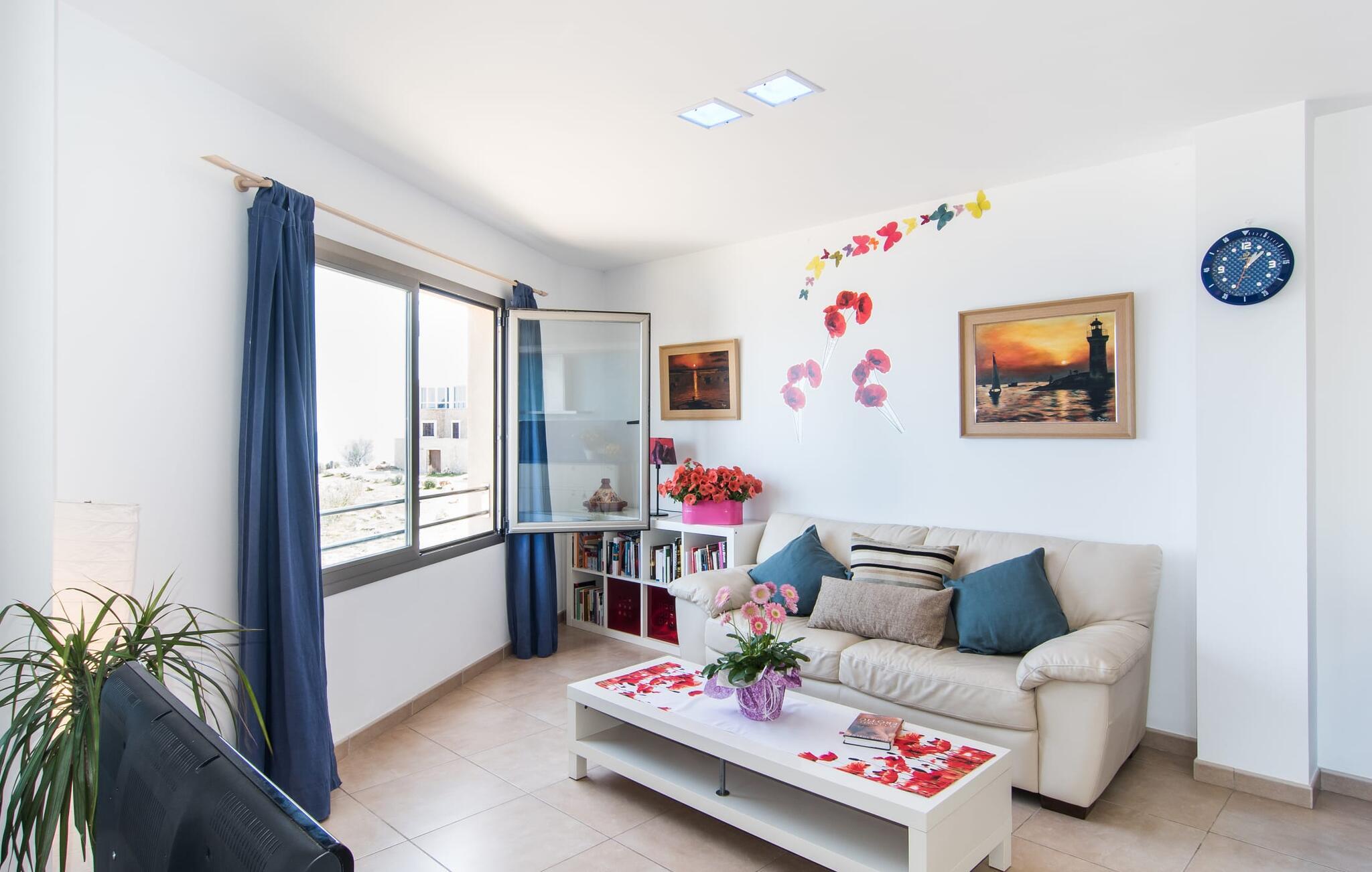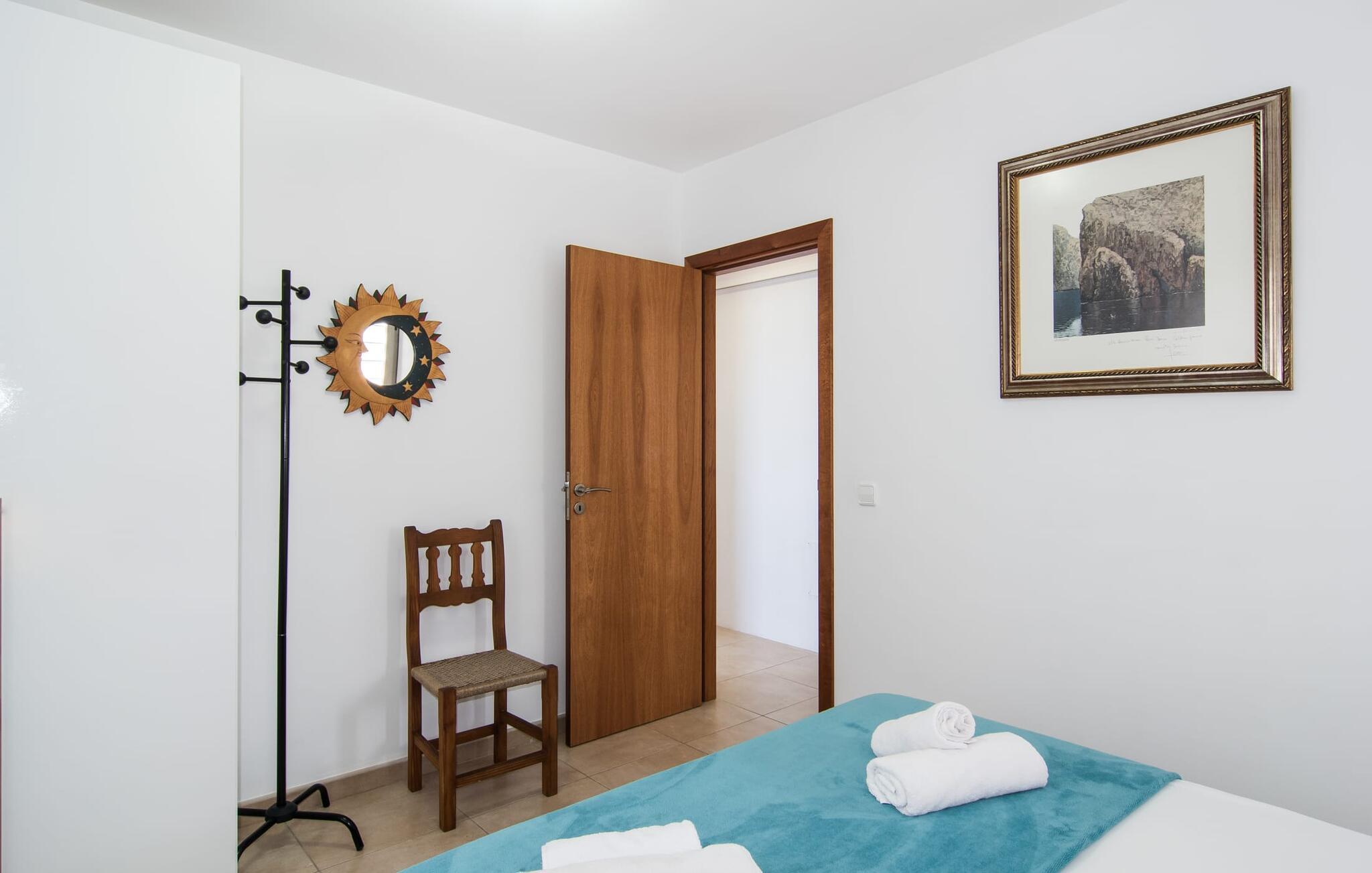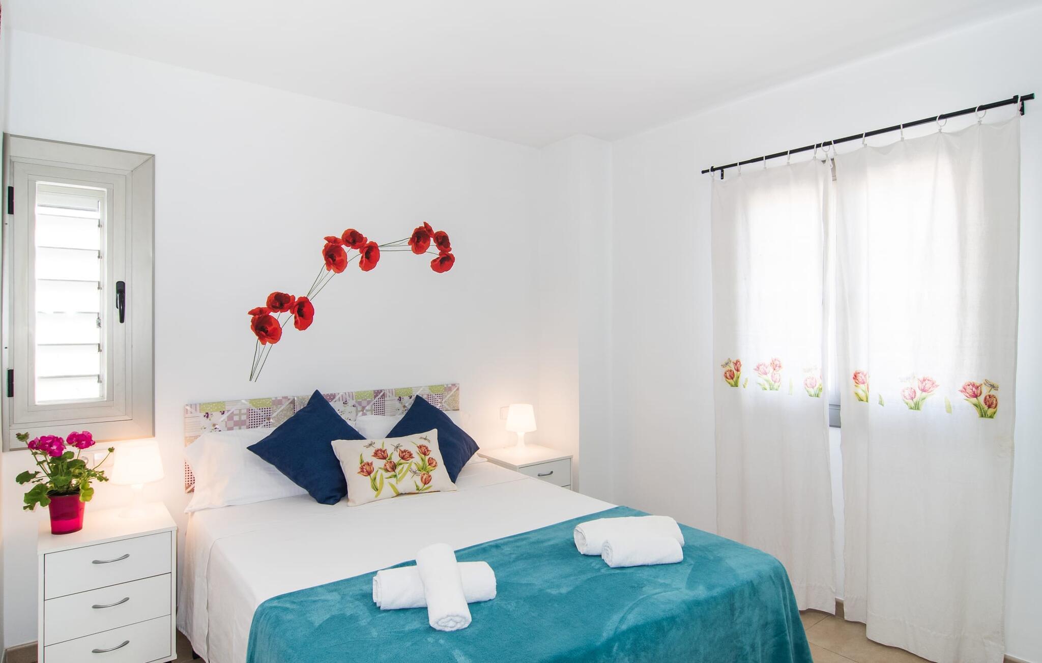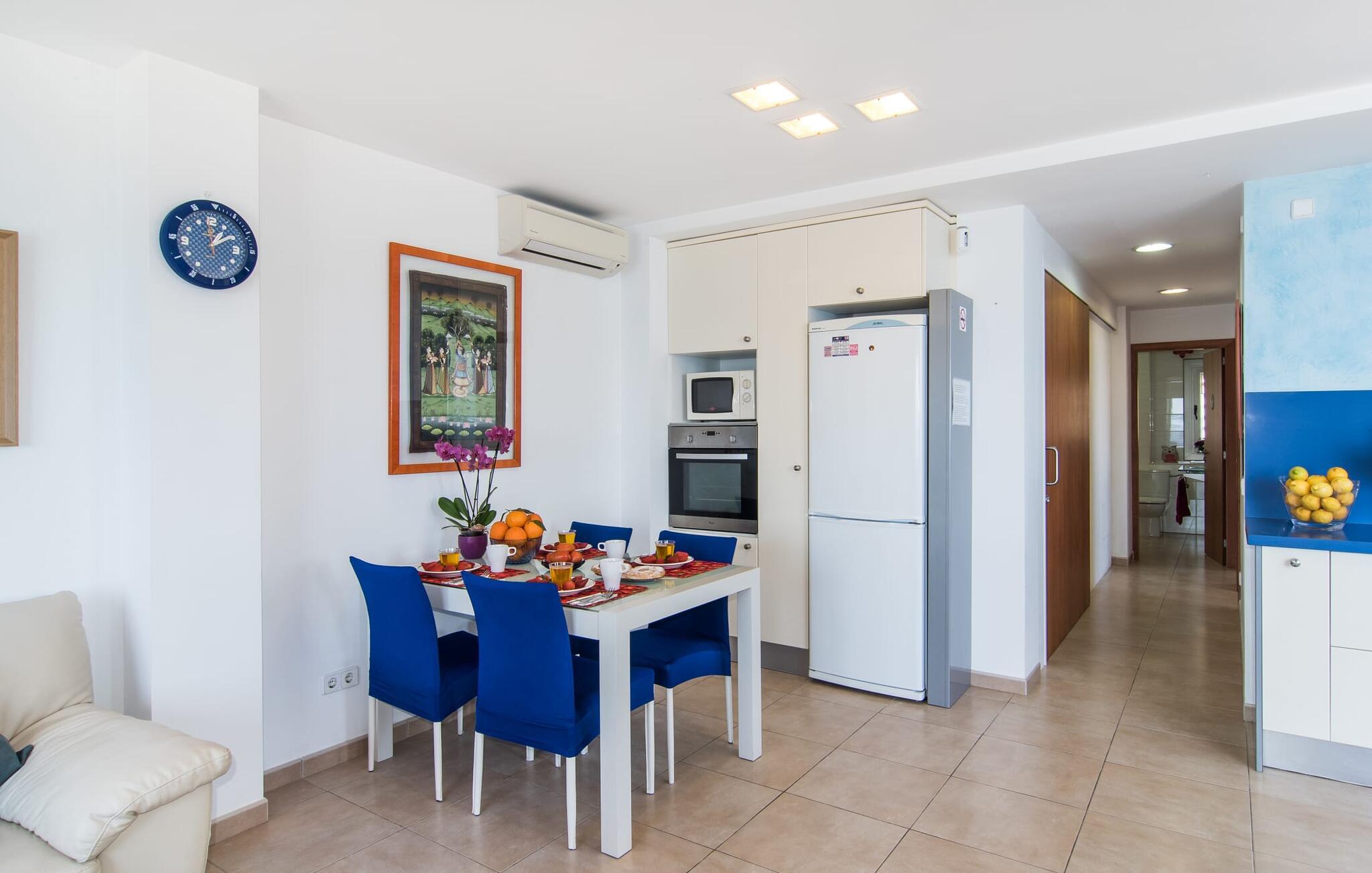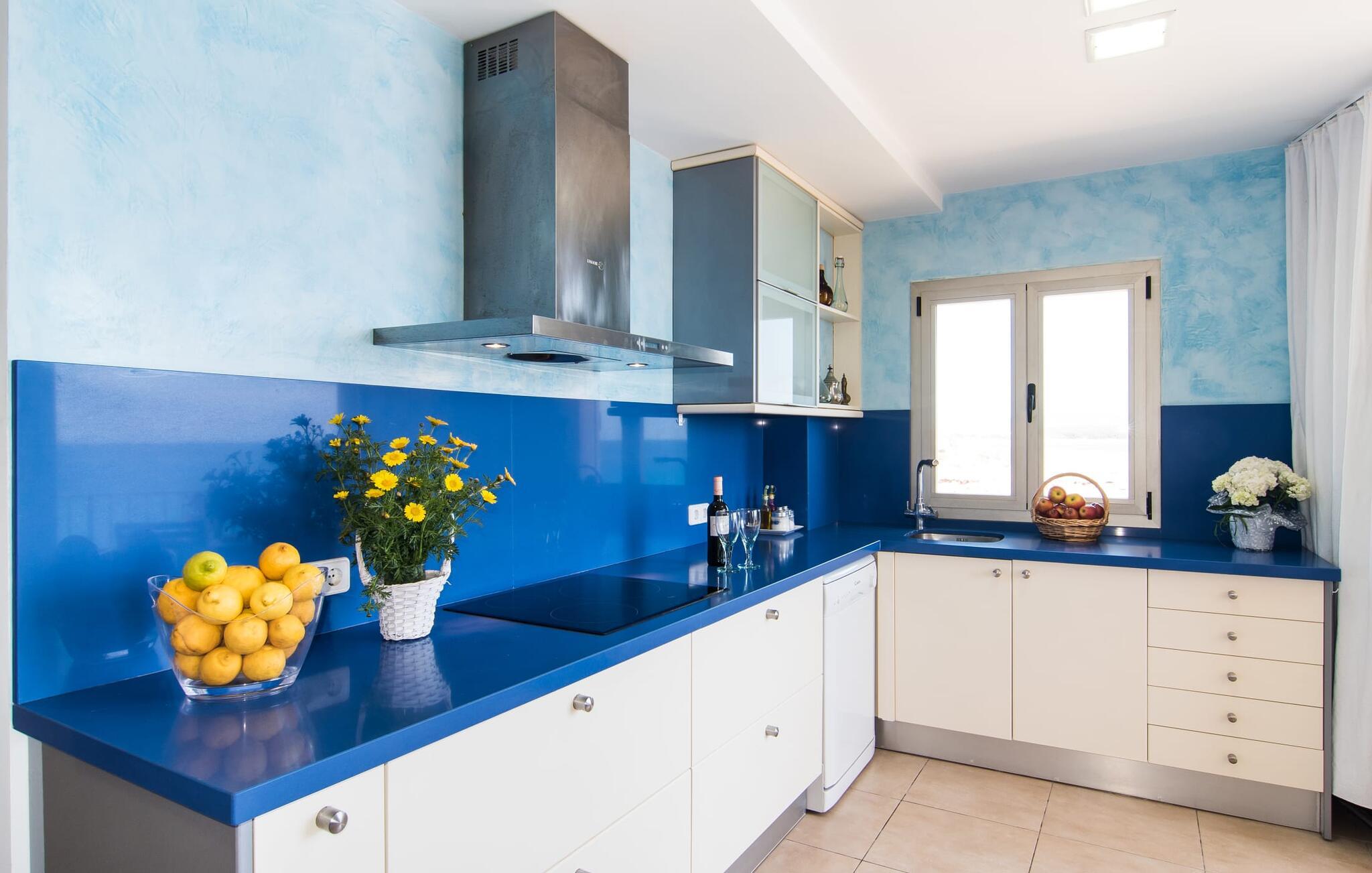 Hvis I vil starte jeres dag med udsigt over havet, nyde friskbrygget kaffe og samtidig beslutte jer for, hvordan I vil starte resten af dagen, så er ferievillaen med det stemningsfulde navn "Cielo Mar" den perfekte sted for jer. Oversat betyder det intet andet end "himmel (og) hav". Begge er utrolig tæt på hinanden her, hvilket betyder, at I kan nyde både solopgang og solnedgang fra denne lille plet. Om aftenen fuldender den glitrende månereflektion på vandet den romantiske atmosfære. Denne velholdte lejlighed er et glimrende alternativ til en hotelferie med faste morgenmads- og spisetider. Især hvis I foretrækker at rejse selvstændigt og også værdsætter fordelene ved en bymæssig beliggenhed. Den sydvendte villa ligger i udkanten af Sa Coma ud for S'Illot og byder på et smukt, til dels barskt landskab præget af dets nærhed til havet. Det delvist stenbeklædte hus med de muntre blå skodder passer ikke til billedet af masseovernatning, men lover sit eget præg, selvom der er et par andre lejlighedskomplekser i det tyndt bebyggede kvarter... Man kan gå til landsbyen, hvor I kan friske op om morgenen. I kan hente bagværk, eller slentre langs promenaden om aftenen og stoppe ved en af bodegaerne for en "Hierbas" (Mallorcan urtelikør). Det moderne feriehus "Cielo Mar" imponerer med sin behagelige maritime charme og indbydende munterhed, som er særdeles velegnet til en familie med to børn. Belægningen er dog helt variabel, da I kan reservere en ekstra seng på gæsteværelset ovenpå, hvilket er en omkostningseffektiv måde at udvide jeres gruppe på, eller også kan reserveres af et par til nedsat pris. Og dette kan nydes hele året rundt, da boligen har varm/kold aircondition i sit centrale rum, nemlig det dejligt åbne opholds-, spise- og køkkenalrum. Den komfortable sofa foran LCD-fjernsynet er ideel til en afslappet filmaften på køligere aftener. Hvid og ultramarin er de dominerende farver i det lyst møblerede og dekorerede spise- og køkkenområde; Sidstnævnte er i øvrigt meget praktisk, fordi den blandt andet også er udstyret med en opvaskemaskine. I kan også bruge vaskemaskinen til at holde jeres feriegarderobe pæn og ren. Efter at have lavet mad med udsigt over havet kan I gå ud på altanen, hvor mindst fire personer kan sidde og nyde deres måltider sammen. Soveværelserne ligger for enden af gangen, så I kan sove godt med vinduet åbent og høre havets brusen - for nogle mennesker er det endnu mere beroligende end at tælle får. Stilen i lejligheden er munter og lys overalt. I så mange små detaljer kan I endda mærke den kærlighed, som dette sted blev forberedt til sine gæster, så I kan føle jer helt komfortabel. Det inspirerende villa sommerhus “Cielo Mar” tilbyder en ferie lige ved havet, da det ligger direkte ved vandet i udkanten af Sa Coma. Takket være dens nærhed til stranden og byen er det et ideelt udgangspunkt for dejlige gåture, og det er også kun en kort gåtur til selvforplejning. Den nærliggende havneby Porto Cristo og dens indbydende promenade kan nås på få minutter i bil. Lufthavnen i Palma de Mallorca kan nås i bil på cirka en time, og der er en direkte offentlig bus, der forbinder den med landsbyen! Bemærk venligst, at denne ejendom ikke accepterer ungdomsgrupper eller polterabender. En ungdomsgruppe på denne ejendom består af personer under 18 år. Book ikke denne ejendom, hvis I er en ungdomsgruppe eller polterabend, da jeres reservation vil blive afvist, når den er booket, hvilket også kan være tilfældet ved ankomst til ejendommen eller under jeres ophold, og I vil ikke modtage en refusion