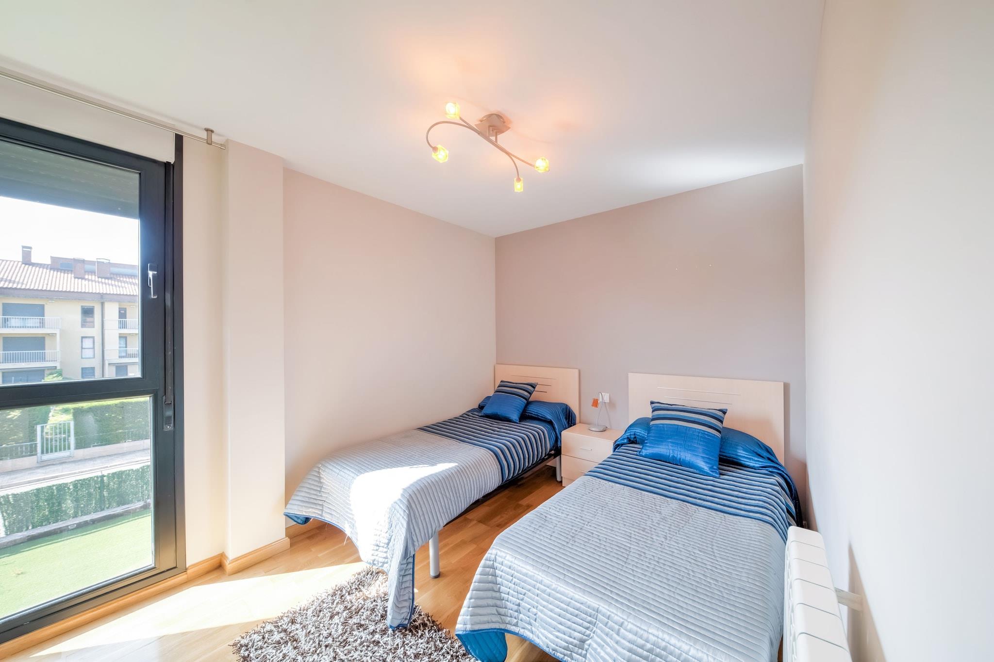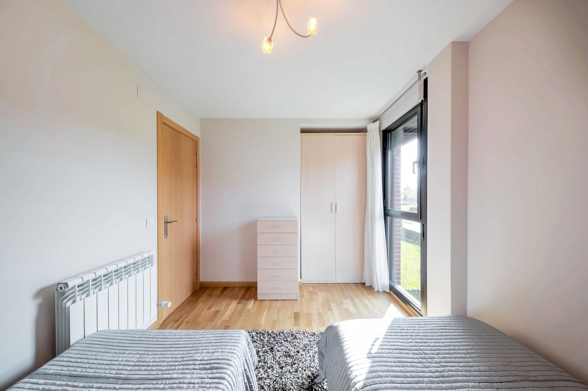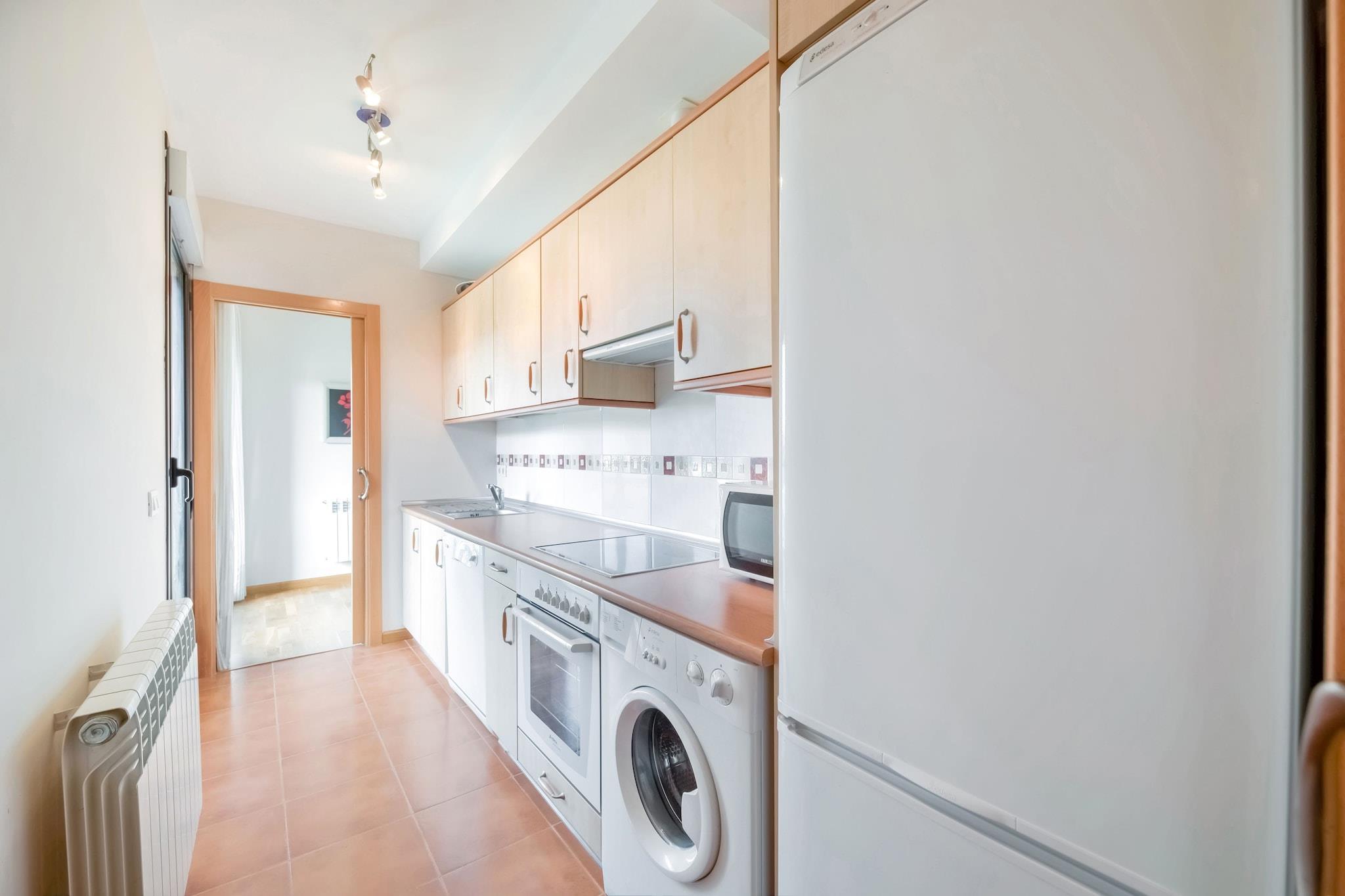 Denne charmerende lejlighed i Cirueña tilbyder et indbydende sted for familier eller grupper, der er ivrige efter at udforske La Rioja. Træd ind på den private terrasse, omkring 8 m², og nyd udsigten over landskabet og pulserende solnedgange. Den fælles have er perfekt til en morgentur eller en aftenslapning. Inden for komplekset finder du to udendørs pools, en indendørs opvarmet pool og en tennisbane - ideel til at holde dig aktiv under dit ophold. En social klub med en restaurant på stedet sikrer nem adgang til regionale delikatesser uden at forlade lokalerne. Cirueña er omgivet af verdenskendte vinmarker og vingårde, hvilket gør det til et fristed for vinentusiaster. Tag på korte køreture til nærliggende byer - Santo Domingo de la Calzada (7 km), Santurde de Rioja (13 km) eller de historiske byer Nájera og Haro (20 km). Undervejs stopper du ved berømte vingårde som Bodegas Muga, Ramón Bilbao og Martínez Lacuesta for at smage exceptionelle Rioja-vine. Regionen er også vært for sæsonbestemte festivaler, hyggelige lokale markeder og naturskønne landskaber perfekt til fotografering og afslappede gåture. Indvendigt er lejligheden omhyggeligt udstyret med et fuldt funktionelt køkken, vaskemaskine og gratis WiFi. To soveværelser rummer gæster komfortabelt. De fælles anlagte haver og garage øger bekvemmeligheden, mens nærheden til golfbanen (600 m) og restauranter (100 m) sikrer et problemfrit ophold. Logroño-Agoncillo Lufthavn ligger 57 km derfra, hvilket gør ankomsten let for besøgende.