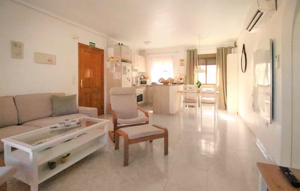 På højeste punkt af feriekomplekset Ciudad Quesada ligger denne herlige lejlighed i rolig og central beliggenhed med udsigt over golfbanen og de omkringliggende bjerge. Poolanlægget er vidunderligt og især for børn et ægte paradis. Nyd jeres morgenmad på terrassen foran stuen eller til den smukke udsigt fra tagterrassen over havet og til Torrevieja. Lejligheden er lige dejlig året rundt, og både oplagt til familier med børn, der kan glæde sig til vandlandet i nærheden, og til gæster, der værdsætter Spaniens dejlige klima om vinteren.