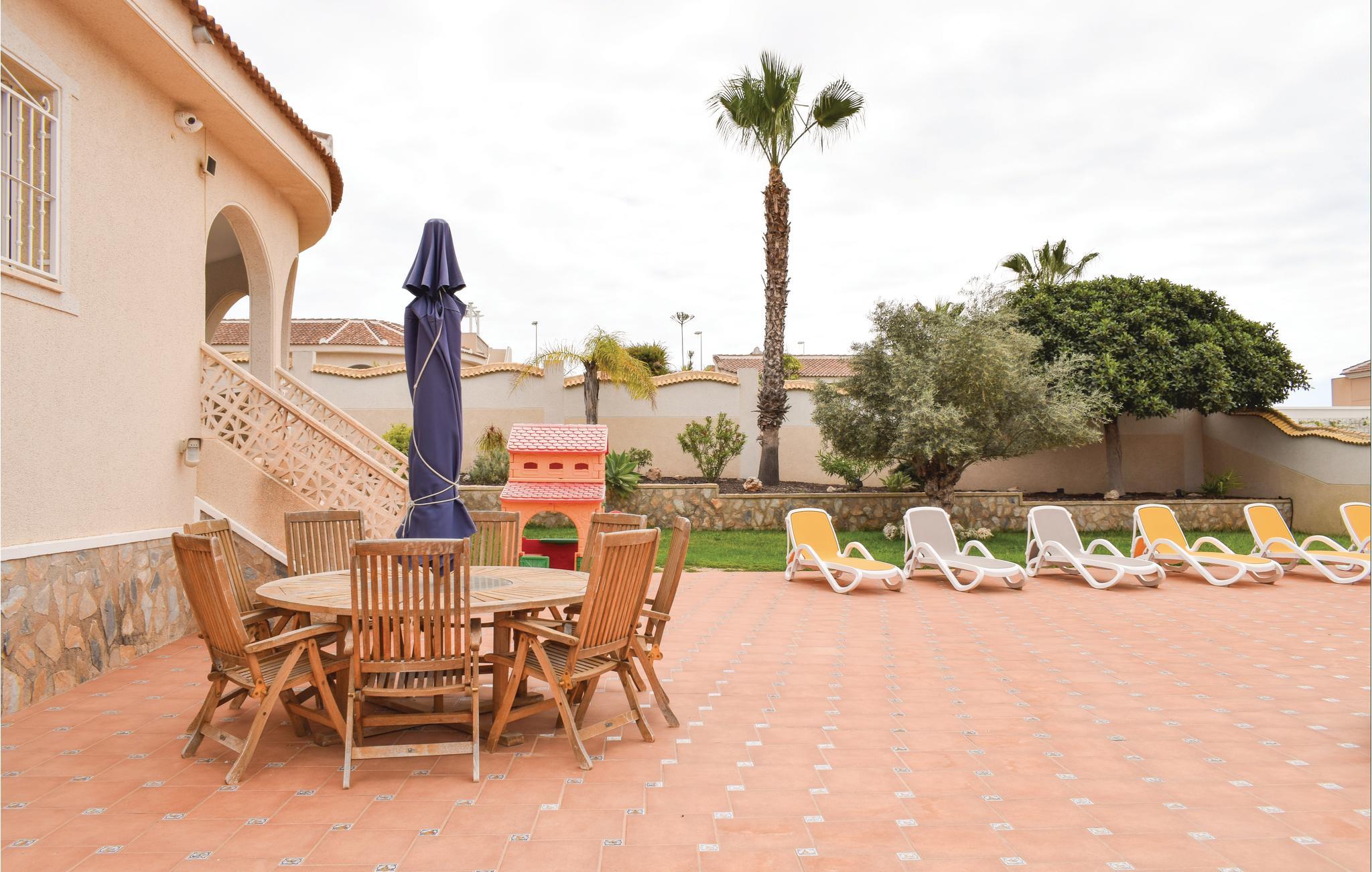 Takket være feriehusets centrale beliggenhed er restauranter, fritidsaktiviteter, supermarkeder og golfbaner i nærheden. På kun 20 minutters kørsel kan du besøge byen Torrevieja. Det tilbyder fantastiske shoppingmuligheder, f.eks indkøbscentret "Habaneras" eller det berømte vandland "Aquopolis". Torrevieja har en indbydende strandpromenade, perfekt til en afslappende tur på stranden og til en drink i en af strandbarerne.