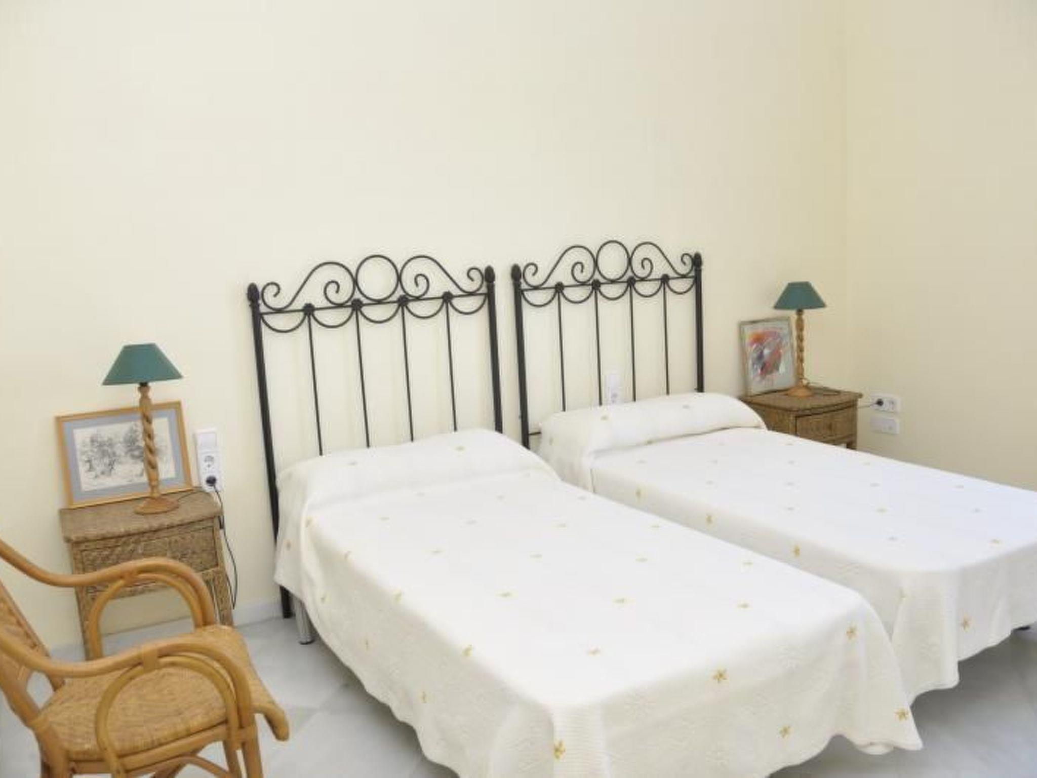 The distribution of the house is as follows: entering on the right hand side we find the kitchen-dining room, large and spacious with a lot of light and well equipped. Leaving the kitchen on the left hand side, there is the living room with the television and enough space to spend a pleasant evening. The central corridor gives access to the 4 bedrooms, 3 of them are doubles with single beds and the last one is the master bedroom. As for the bathrooms, one of them has a shower and the other one is en-suite and belongs to the master bedroom. And finally, going up the staircase, we go to the first floor where we find a relaxation room with access to an outdoor terrace from where we can see the swimming pool and the garden.