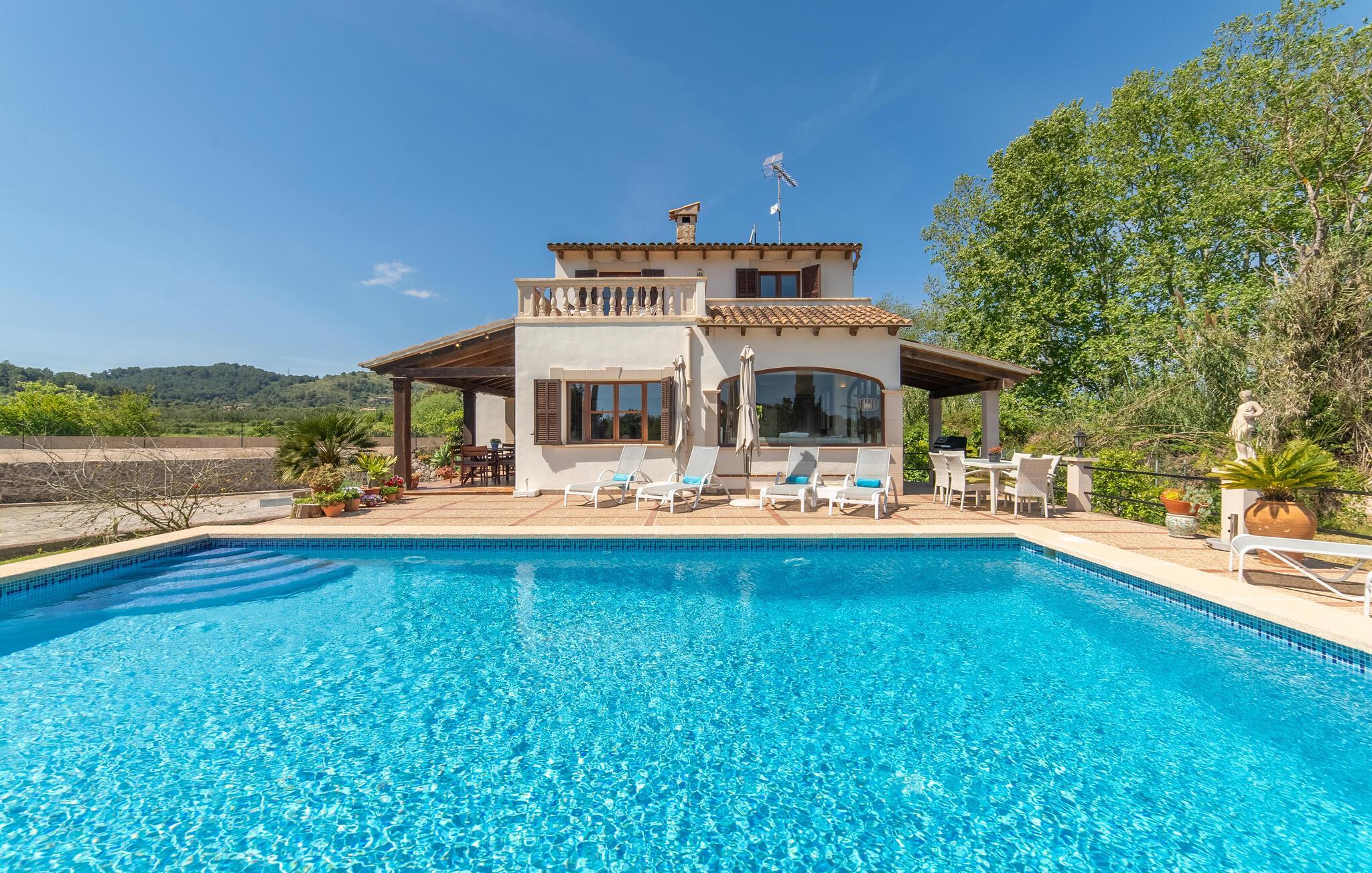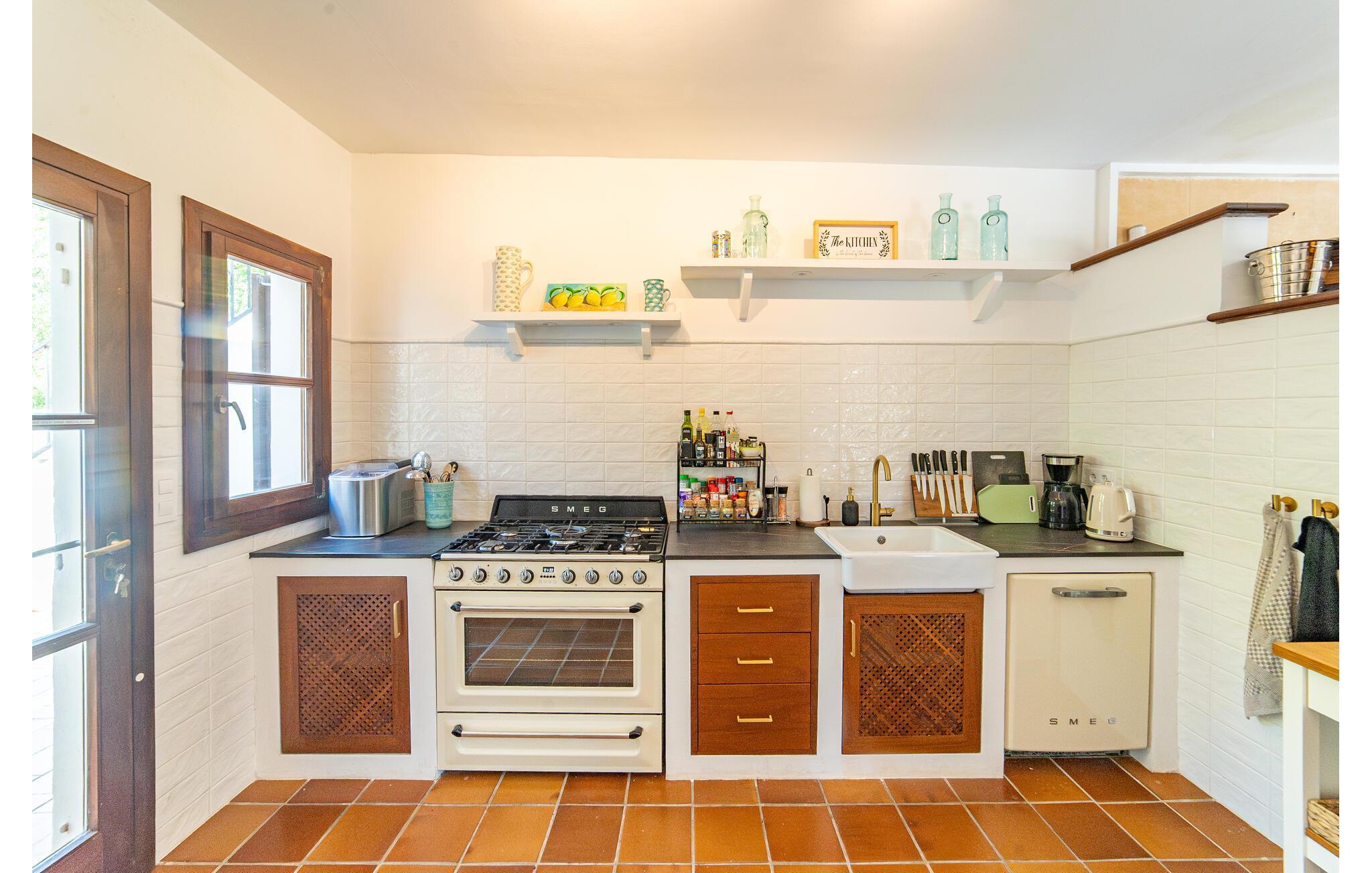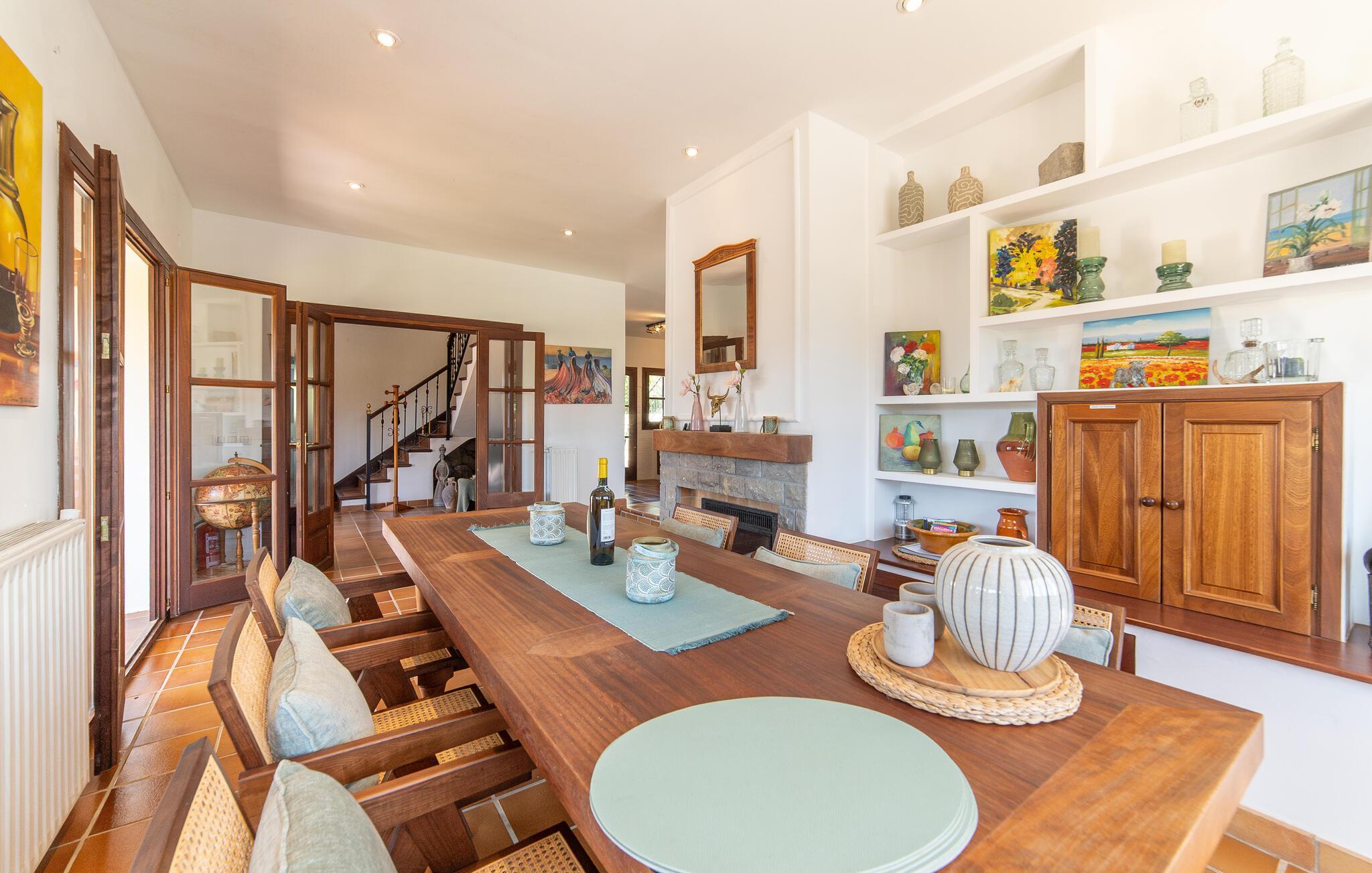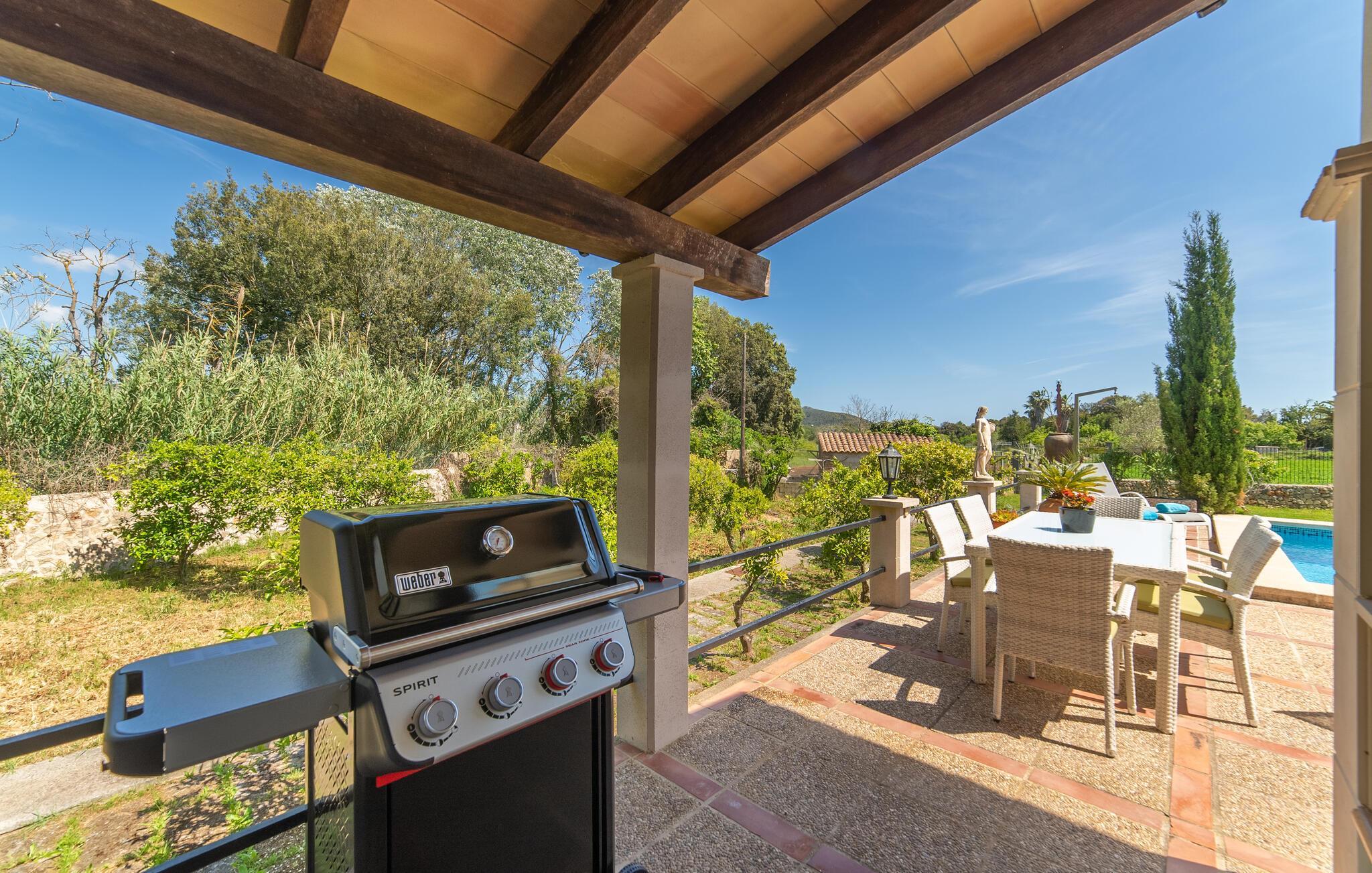 Det landlige feriehus "Clot Fillol" på den østlige del af Mallorca ligger i et betagende landskab nær Artá. Denne charmerende villa er omgivet af en have fuld af middelhavsplanter og tilbyder et fredeligt tilflugtssted. Dette er et Fincallorca feriehus. Fra den rummelige poolterrasse og den overdækkede terrasse med udendørs spiseplads kan du nyde en vidunderlig udsigt over haven og det frodige grønne område. Hele dagen vil du finde behagelige skyggefulde pletter på de forskellige terrasser, perfekt til morgenmad, en siesta eller nyde en god vin. En gasgrill af høj kvalitet er tilgængelig til lækre sommeraftener og kan rumme op til 6 gæster. Boligarealet er gennemtænkt fordelt over to plan og har en smagfuld indretning og masser af naturligt dagslys. I stueetagen er der en indbydende stue, en spiseplads og et veludstyret køkken. To store buede vinduer giver dig en fantastisk udsigt over haven og poolområdet. Der er to soveværelser, hvoraf det ene har eget badeværelse. Der er også et separat badeværelse på dette niveau. På øverste etage er der yderligere to sovepladser med hver sit badeværelse og udgang til en skøn terrasse med vid udsigt over landskabet. Alle fire soveværelser er udstyret med aircondition, og huset har oliefyr for at sikre din komfort selv i de køligere måneder. Oplev Mallorcas skønhed og ro i "Clot Fillol". Feriehuset ligger ca. 3,5 km sydøst for Artà. Her er gode indkøbsmuligheder, restauranter og caféer. Østkysten med smukke sandstrande, såsom Cala Ratjada og Font de Sa Cala, er omkring 10 km væk. Capdepera Golfbane ligger 4 km derfra.