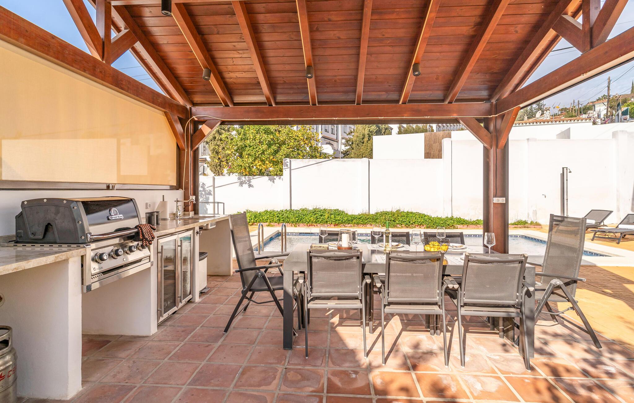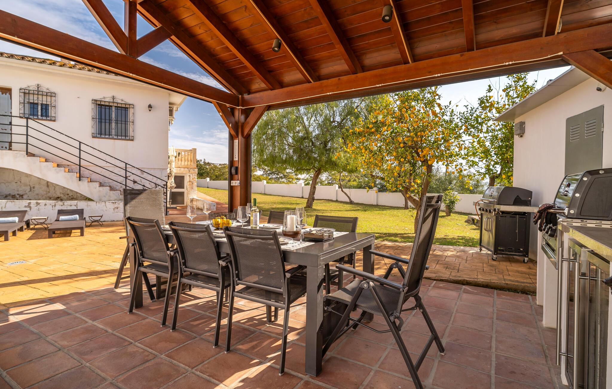 Det velholdte udendørsområde er perfekt til lange dage under den andalusiske sol. snup en frisk dukkert i poolen til hjertens lyst, slap af på de komfortable liggestole og nyd varme sommernætter med skønne grillaftener med vin og levende lys under den behageligt oplyste pergola.