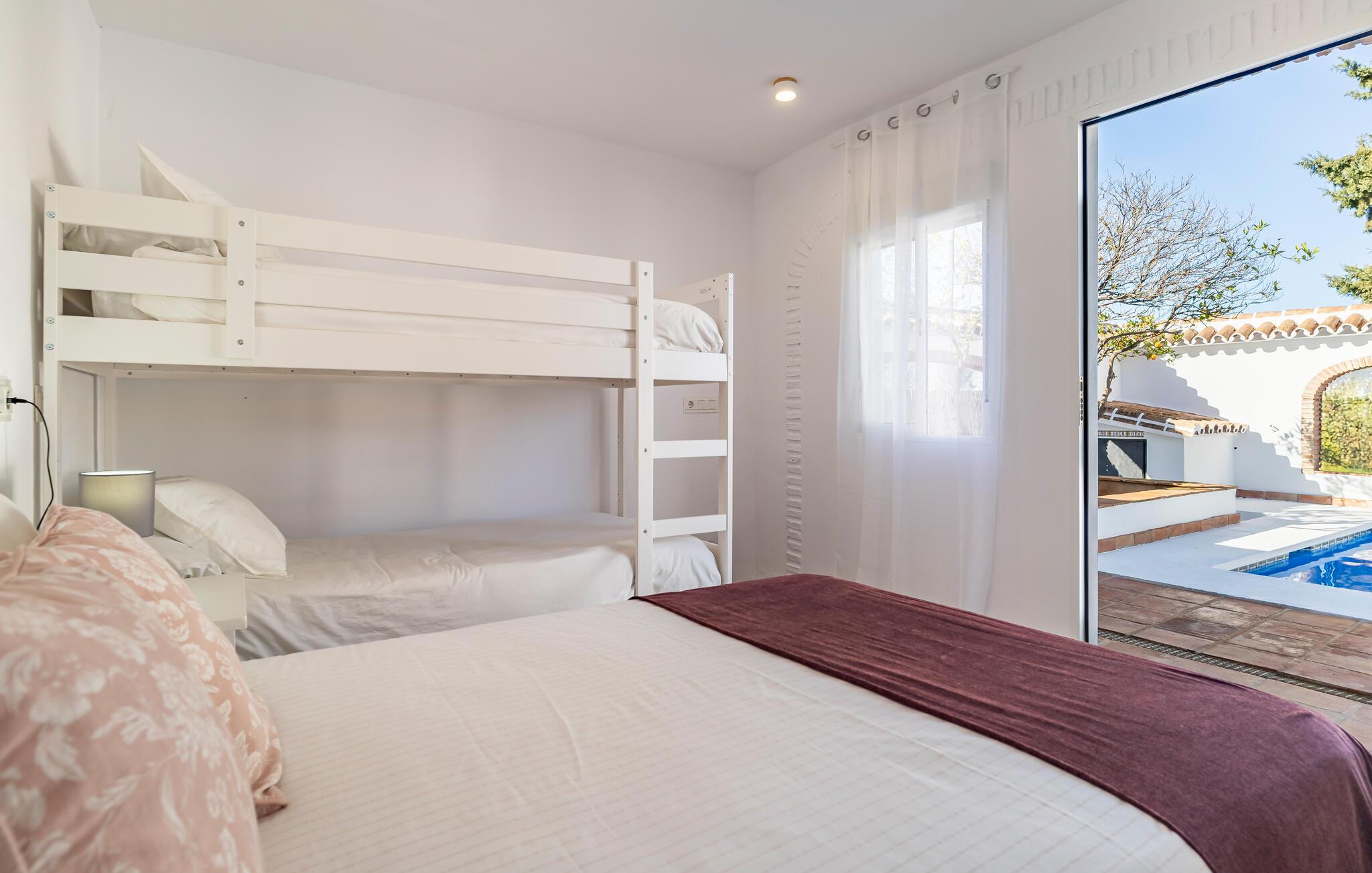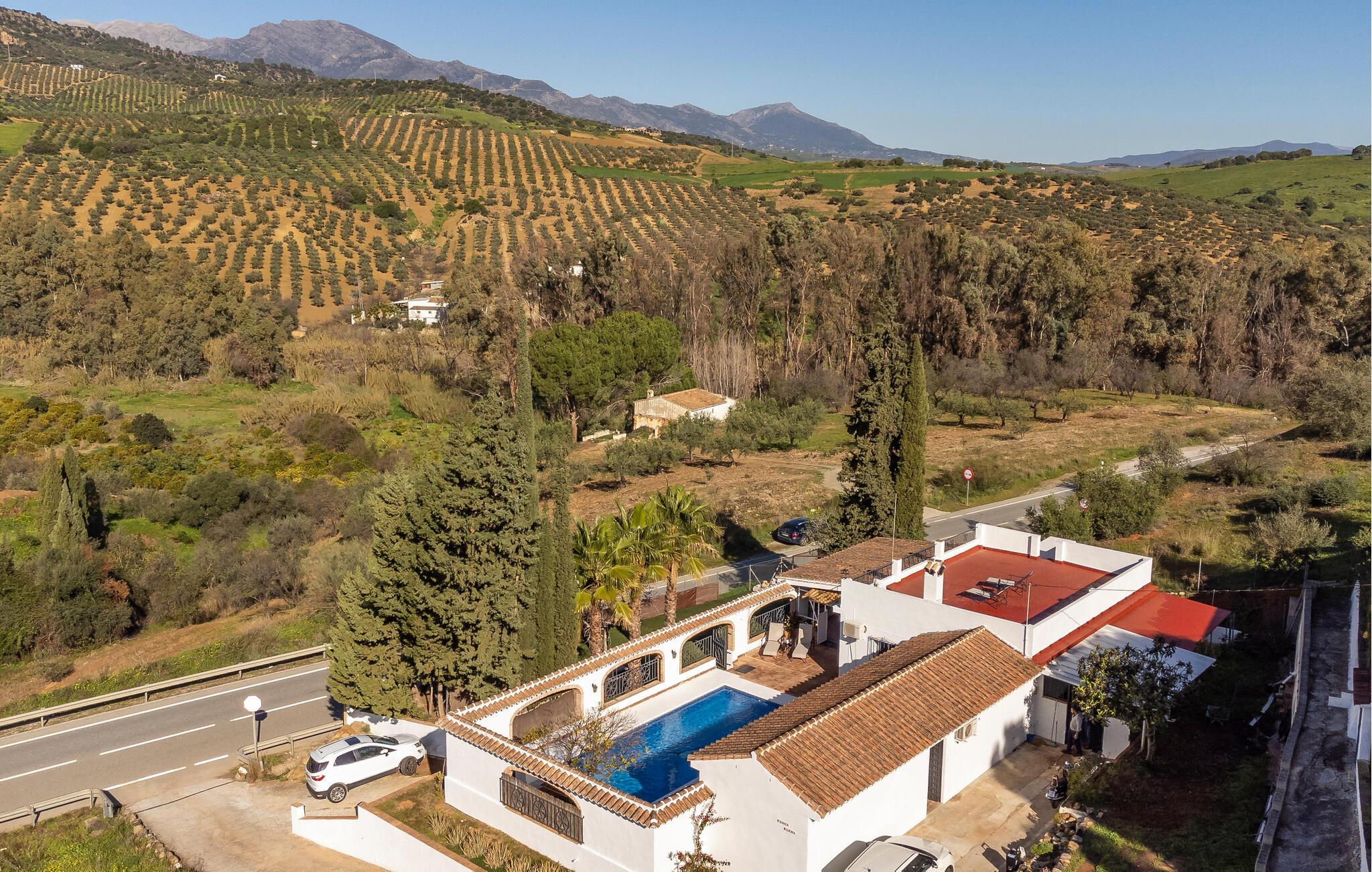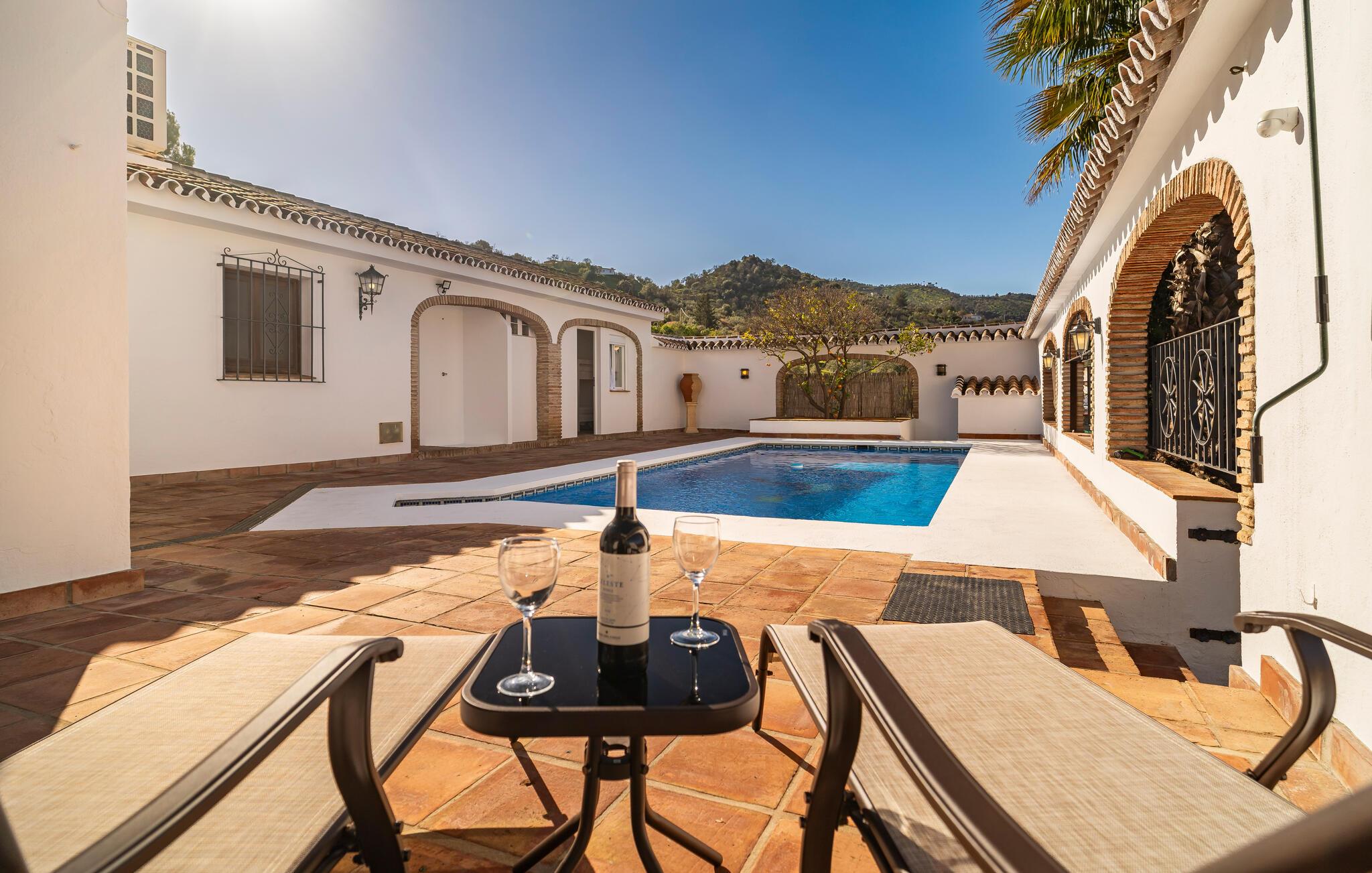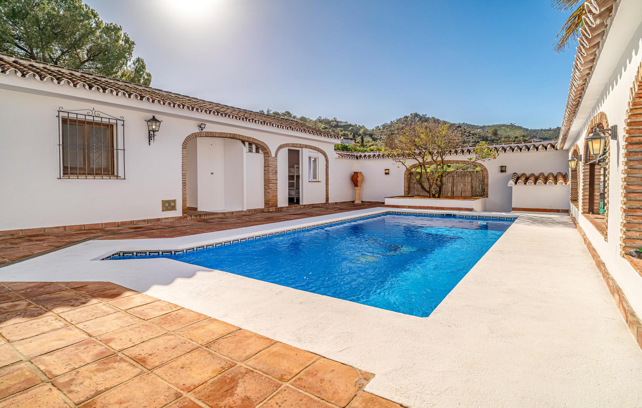 Dette familievenlige feriehus i Coin er noget særligt med sine indbydende møbler og typiske andalusiske stemning. Det rummelige verandaområde med spiseplads og pool lægger op til at tilbringe omgængelige timer udendørs, mens I lader blikket tag på vandretur over det maleriske landskab. På tagterrassen kan I nyde vidunderlige solnedgange eller afslappende stunder i fred. Det beskyttede poolområde sikrer badning for unge og gamle og tilbyder et ideelt miljø at slappe af.