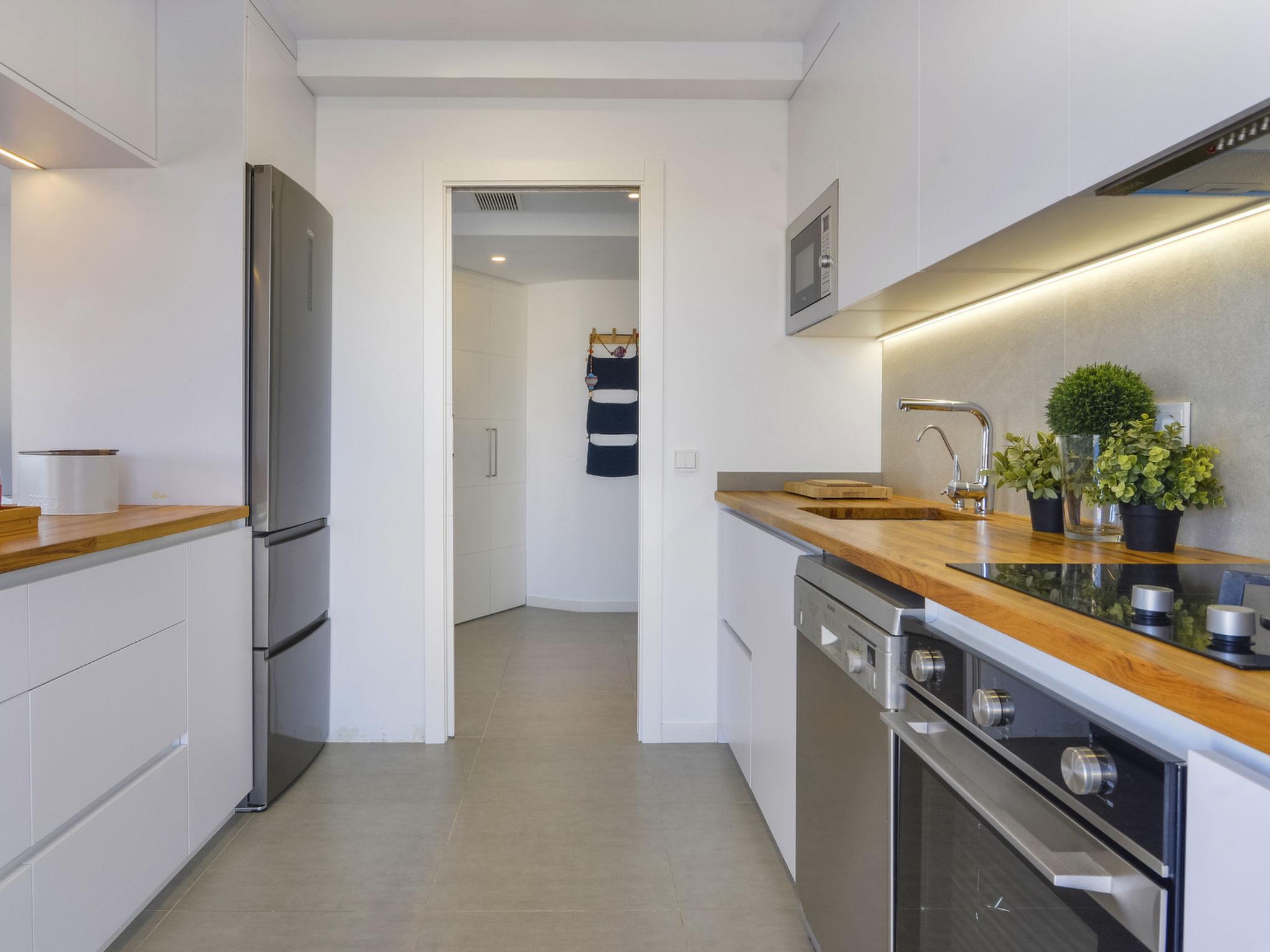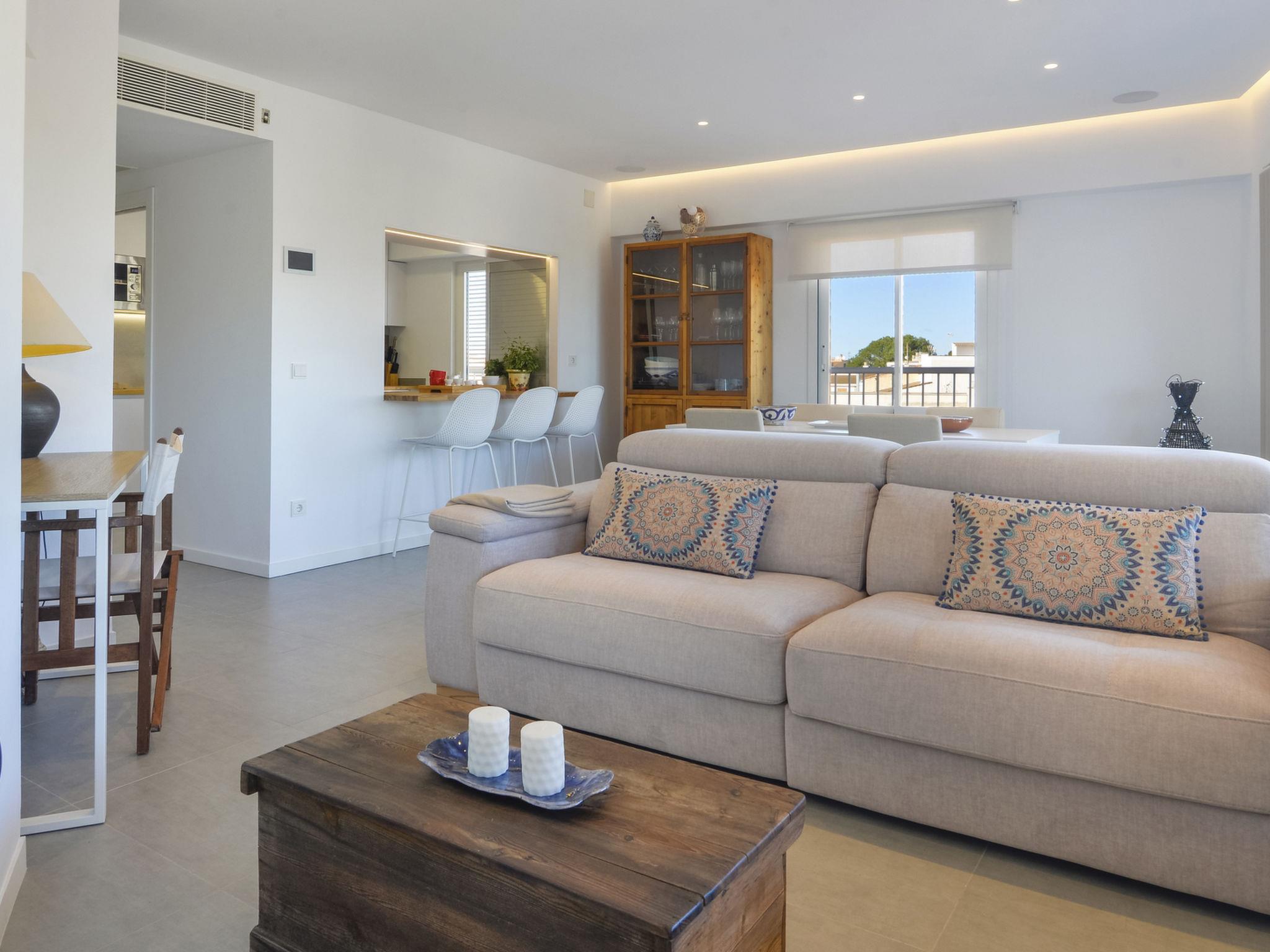 The Caballito de Mar flat is a dream home in Colonia San Jordi, located directly on the marina and the promenade, ideal for the beach, town, sea and water sports. From here, everything is just a few steps away. With magnificent views over the city beach and the harbour of Colonia San Jordi, the spacious and modernly furnished Caballito de Mar flat is located right next to the beach. The city flat with a large balcony terrace has three bedrooms and is furnished for five people. It has everything you need for a perfect holiday. The bedrooms, lounge, dining area, kitchen and two bathrooms are located on the third floor. The large terrace with sitting area, dining area, BBQ gas grill and views over the bay and harbour invites you to linger and if you don't want to cater for yourself, you are sure to find your favourite restaurant in the numerous restaurants in Colonia San Jordi. The beaches of Es Trenc and Cap des Salines, the southernmost point of the island of Mallorca, are close by and can be reached on foot if you wish.
