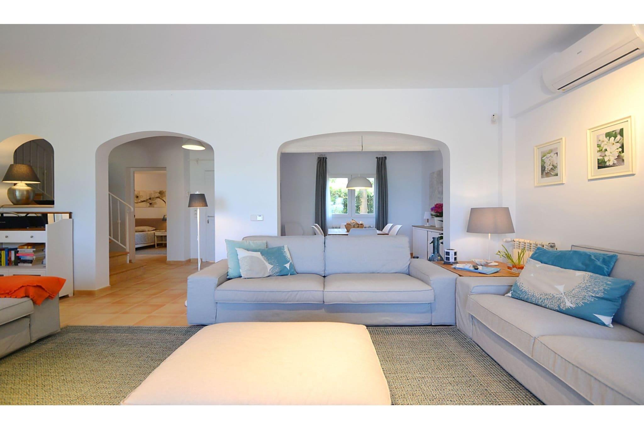 Sjovt, tilsluttet sommerhus kun 200m. fra den brede sandstrand Colonia de Sant Pere på øen Mallorca. Huset ligger i en stille urbanisering, og fra huset heeb en spektakulær udsigt over Middelhavet. Det er funktionelt og ligger kun 2 km fra fiskerbyen Colonia de Sant Pere. Her kan du shoppe eller spise frisk fisk i en af de mange restauranter. Større byer som Arta, Manacor og livlige feriesteder såsom Porto Cristo og Cala Ratjada på østkysten er alle gode dagsture destinationer for at lære øen at kende. Bedre Du kan endda lave en uforglemmelig luftballon i Manacor, hvor du kommer fra en anden vinkel for at se øen! Store travle strande kan findes i Port d "Alcudia og Pollensa, begge omkring 30-35 km. Beliggende. Peninsula Formentor med dens fyrtårn og smukke bjergveje er meget rart at besøge en gang, og de spektakulære Tramuntana bjergene på Mallorca's vestkyst. Et besøg i hovedstaden Palma er et must. Brug især et besøg på den imponerende katedral med udsigt over havnen.