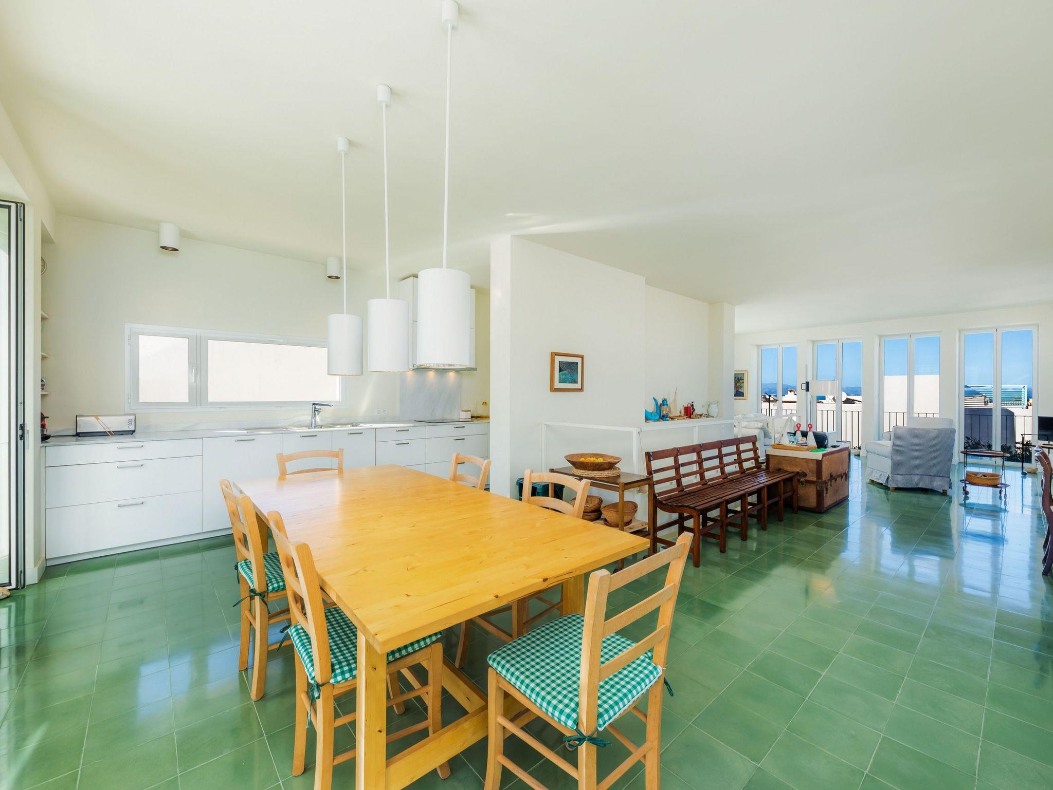 Der grosse Esstisch hat genügend Platz für bis zu 8 Personen oder mehr, morgens und Abends hat man dort ein wunderschönes Licht.