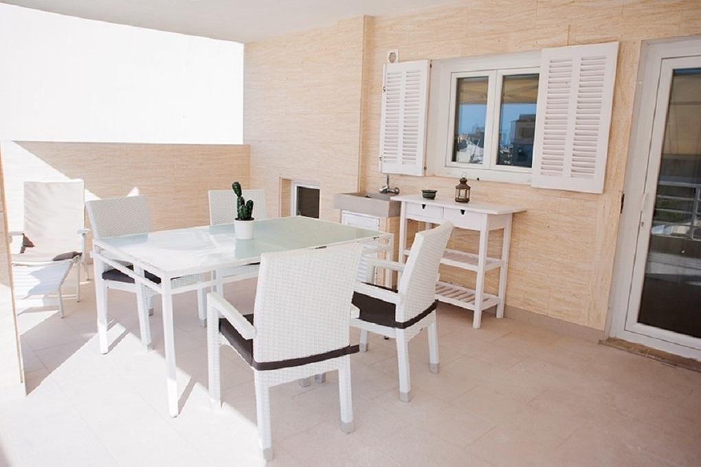 Unsere Ferienwohnung Marieta I in der 1. Etage eines ruhigen Dreifamilienhauses in Colónia St. Jordi ist modern, exklusiv und gemütlich eingerichtet. Die Wohnung lädt zum Erholen und Relaxen ein mit dem gewissen Etwas. Auf einer Wohnfläche von 110 qm verfügt die Ferienwohnung über 3 Schlafzimmer, 2 modere Badezimmer, einen großzügigen Wohn-/Essbereich und eine hochwertige Küche. Von der Küche gelangt man auf die riesige teilüberdachte Terrasse mit Gartenmöbeln und Sonnenliegen. Sie liegt zentral in der 3. Meereslinie von Colónia de Sant Jordi nur ca. 200 m vom Meer entfernt.