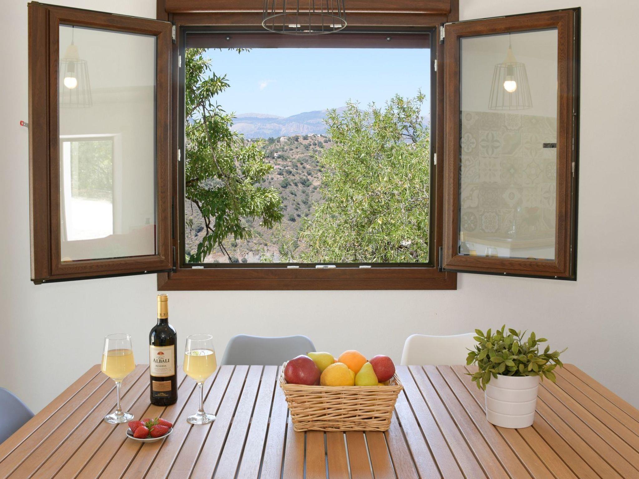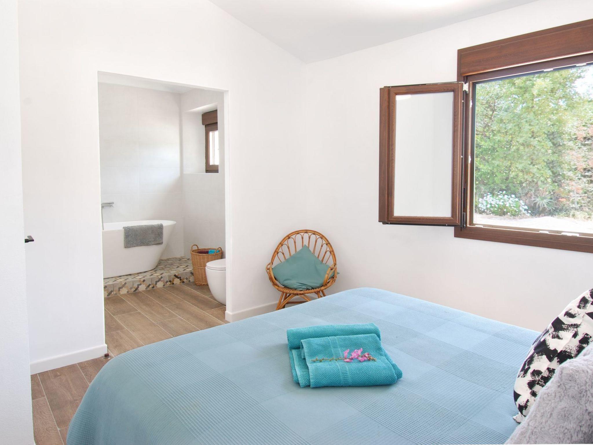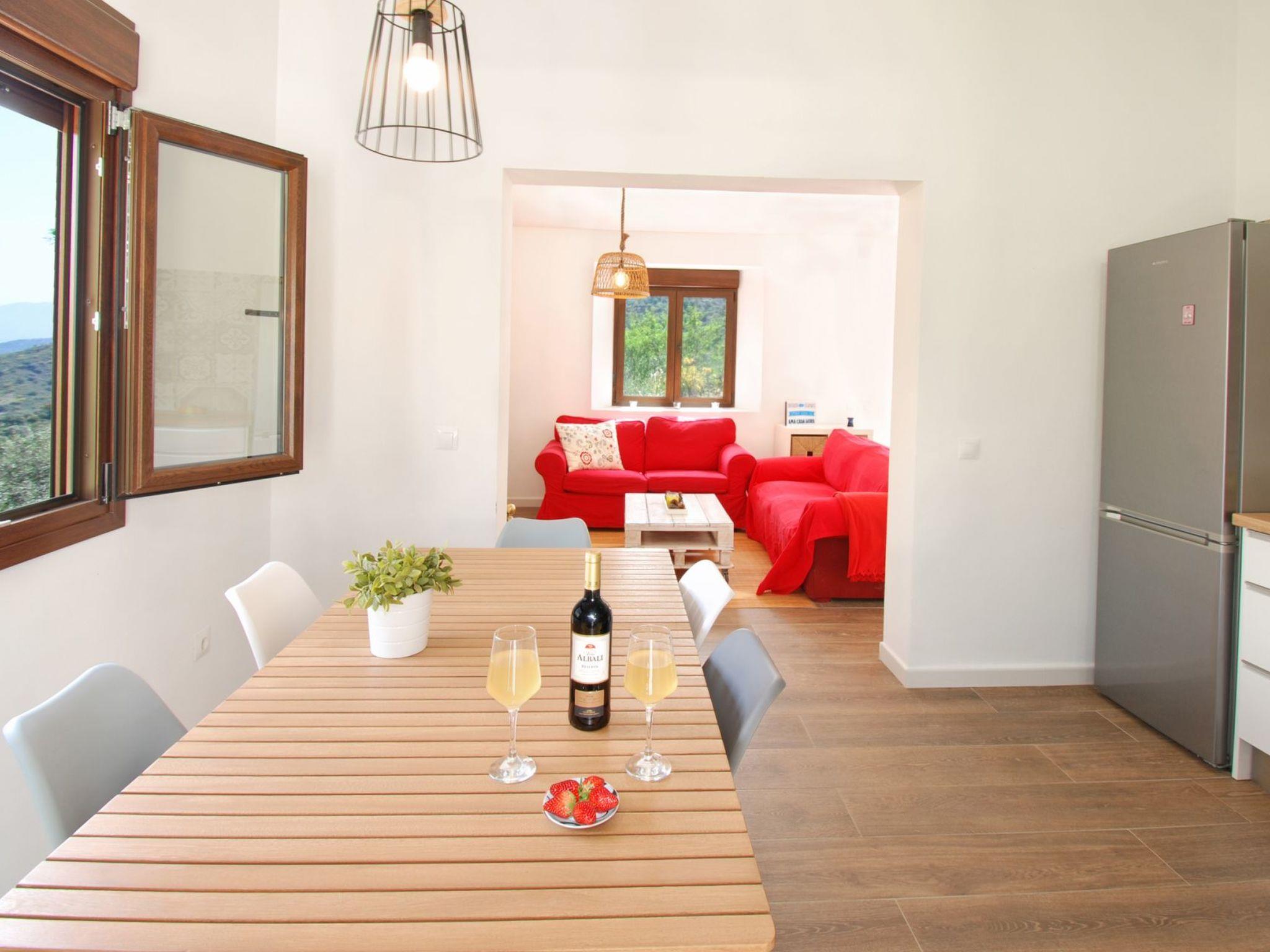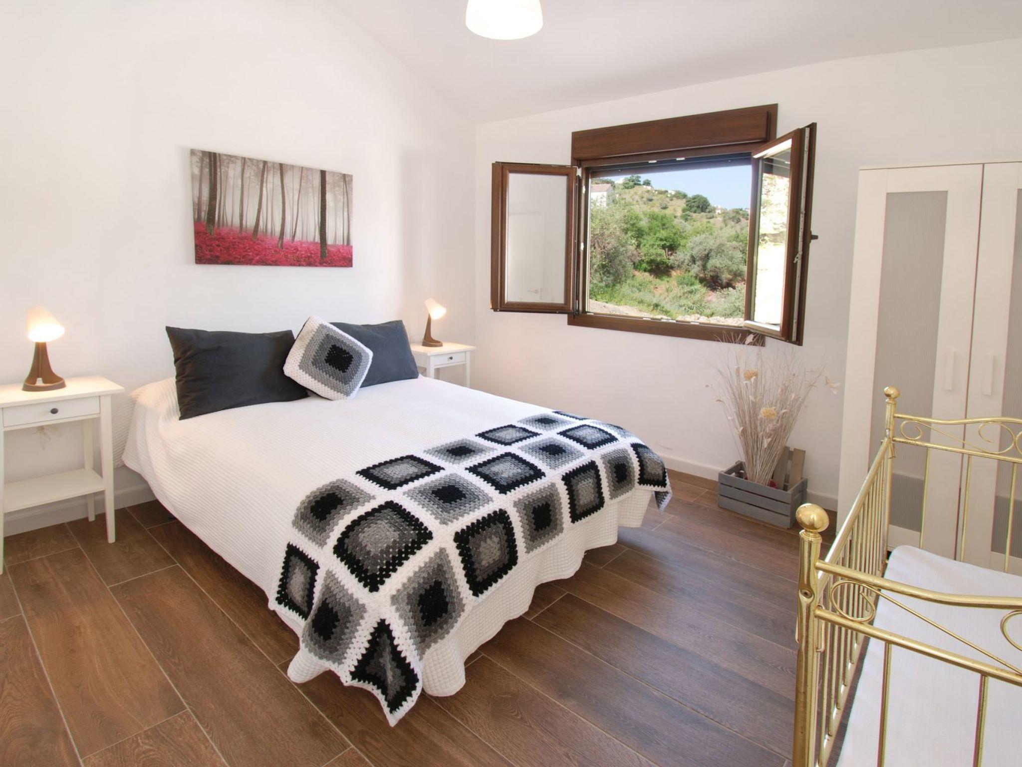 Ana, the owner, has turned the finca of her beloved grandmother into a modern, well equipped and lovely house that gives you the holiday feeling from the moment you step through the gate. Everything you see here is her idea. From the antique floor tiles that she reused in an original way in the bathrooms, over the bright and spacious living room/kitchen to the outside area with cosy corners, terrace, build-up pool and a BBQ-zone with sink. There even is a restored antique wood-oven in the garden where guests can bake their own bread or pizzas.When you enter this cosy house, you’ll be amazed how bright it is. The terrace and garden with pool are very private and allow guests to enjoy an intimate holiday at a unique location. The beauty of the natural surroundings invite you to hike, bike or just relax and practice ’the dolce far niente’.Casa Maria has 3 bedrooms and 2 beautiful bathrooms, 1 en-suite with the master bedroom with bathtub and another with shower, a bright living room with woodstove and smart tv, an open kitchen with dishwasher and an extra room with washing machine. There are shutters everywhere.This house is perfect for guests who want privacy and who love staying in a natural environment, without being too far from bars and restaurants. A 5-minutes’ drive takes you into the hamlet of Los Ventorros where you can find bars and restaurants and 5 minutes more by car take you to Comares, also known as ‘The pearl of the Axarquia’.