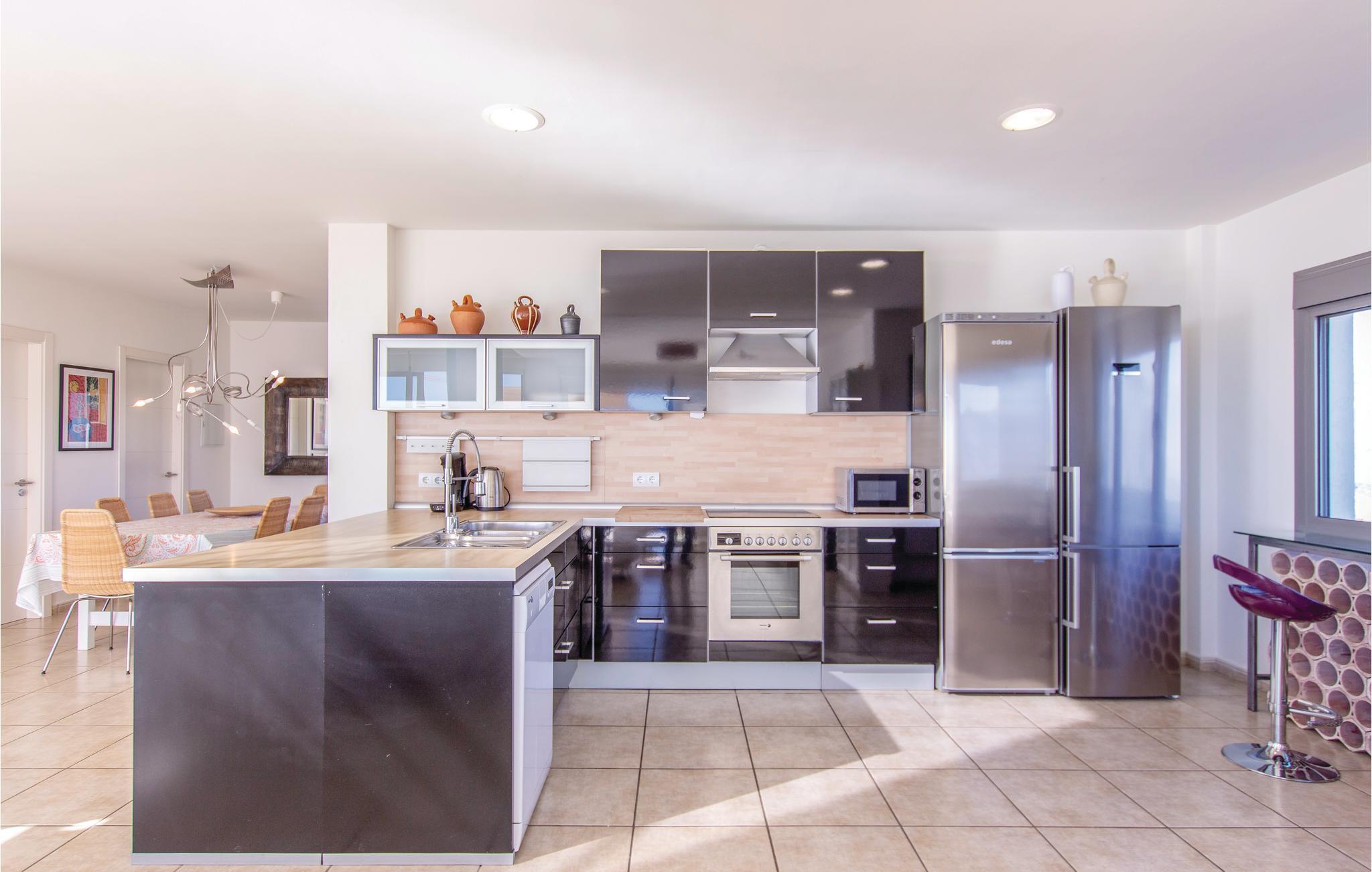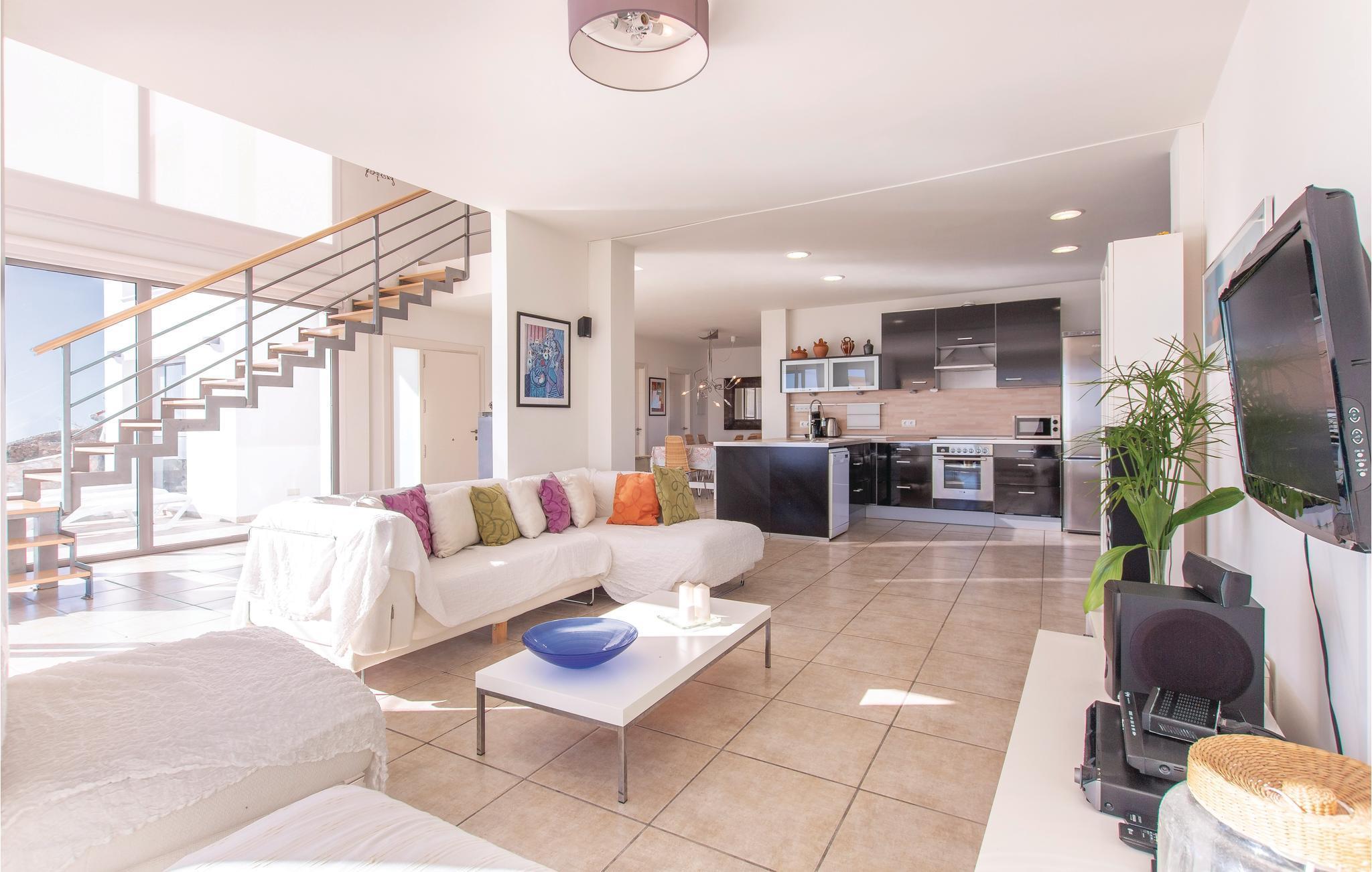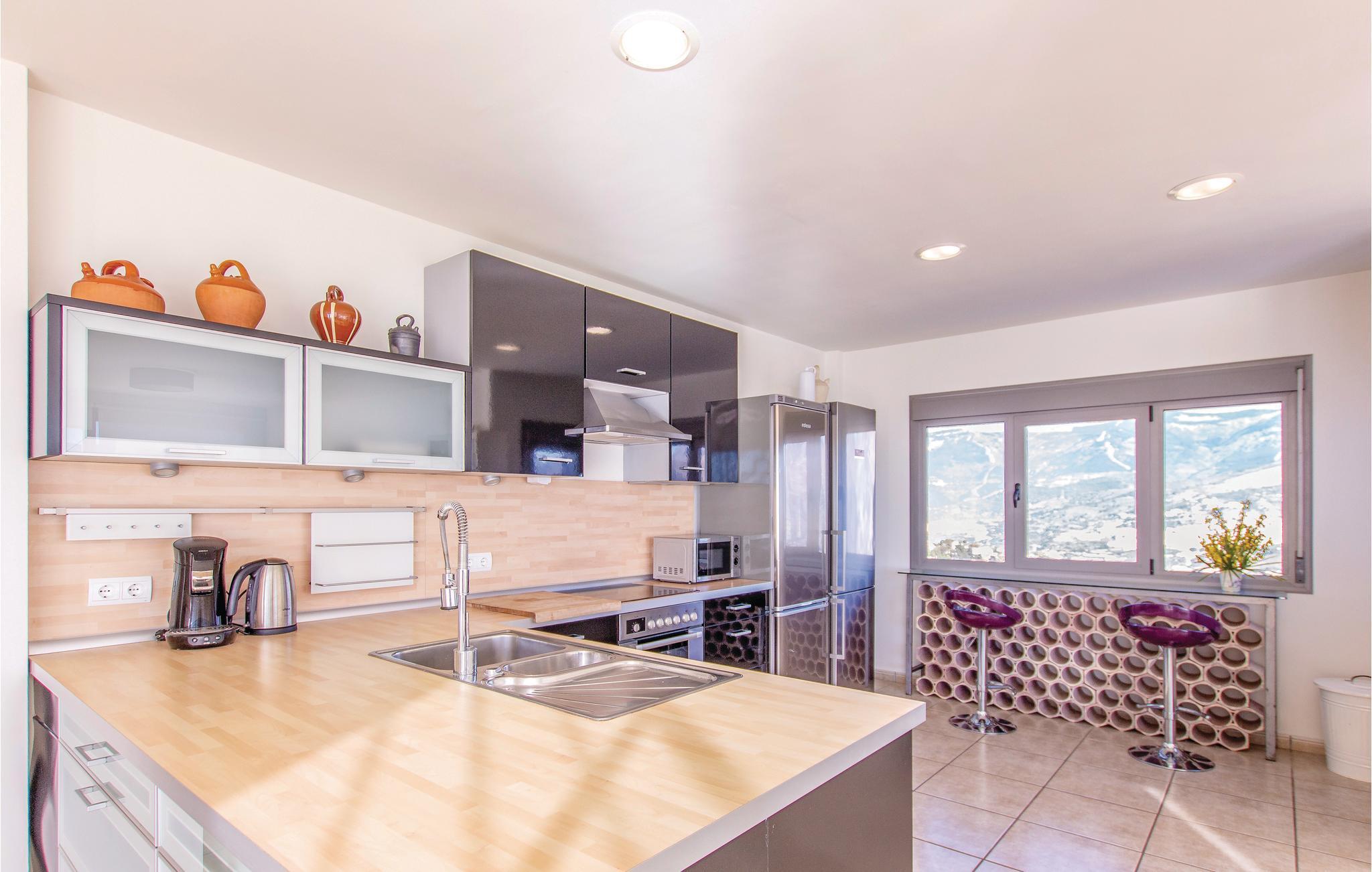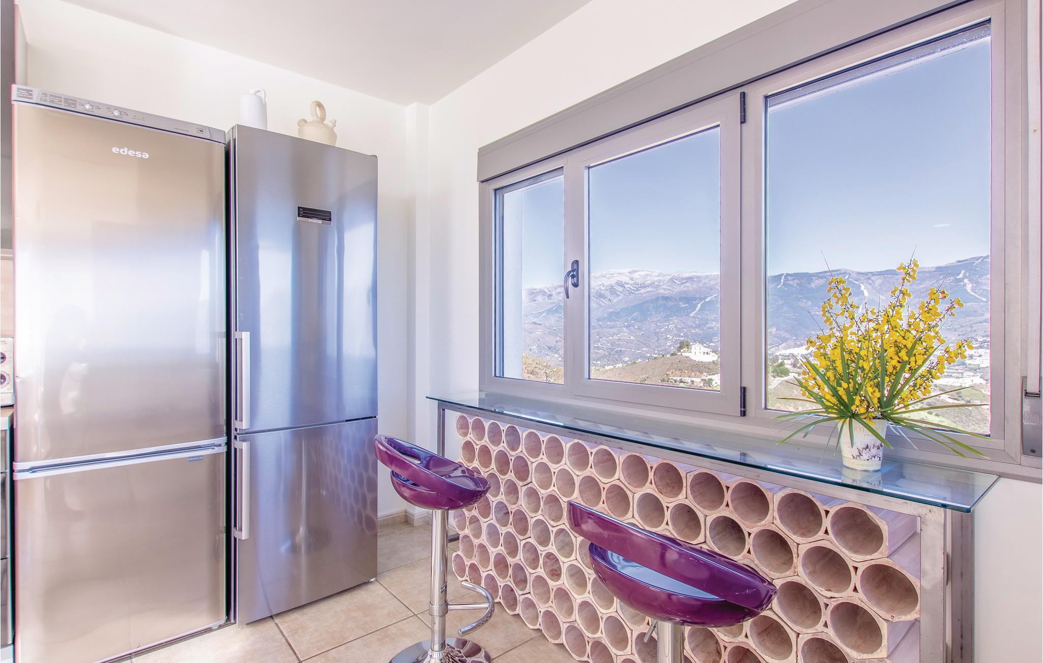 Ultramoderne feriehus med store vinduesfronter, der åbenbarer et fantastisk landskab. Det fuldt udstyrede køkken har plads nok, til at I kan lave mad der. Alle soveværelserne på første sal er møbleret med udsøgt smag, og hovedsoveværelset har en privilegeret udsigt til den private pool og Middelhavet. Den dejlige terrasse med solsejl og luksushavemøbler, lige over for poolområdet, indbyder til hyggeligt samvær og romantiske måltider med en fantastisk udsigt til de nærliggende bjerge og de typiske hvide huse i landsbyerne og på kysten. Smag det typiske landlige køkken i Cómpeta, og prøv fx "migas", eller spis simpelt hen nogle af de lækre tapas mod den lille sult. Nyd en lovende ferie på højeste niveau med garanti for, at I føler jer godt tilpas! Huset ligger på en skråning og kan kun nås over flere trapper (56 trin). Den sidste del op til huset er af en stejl vej, der kun delvist er asfalteret.
