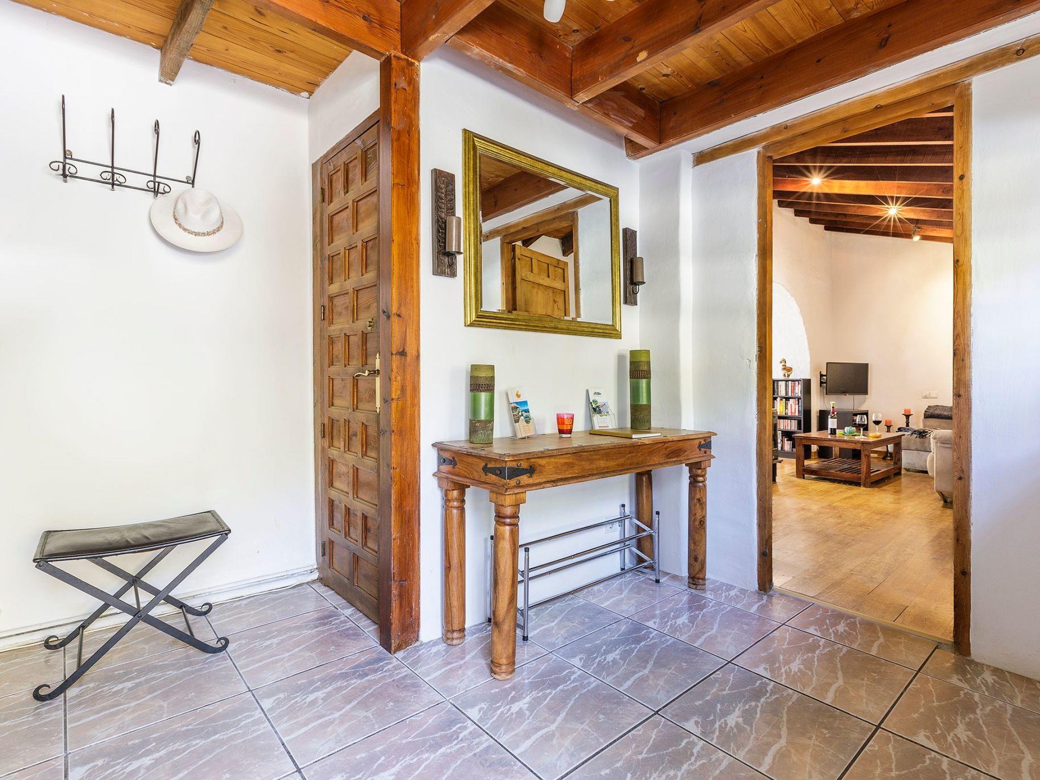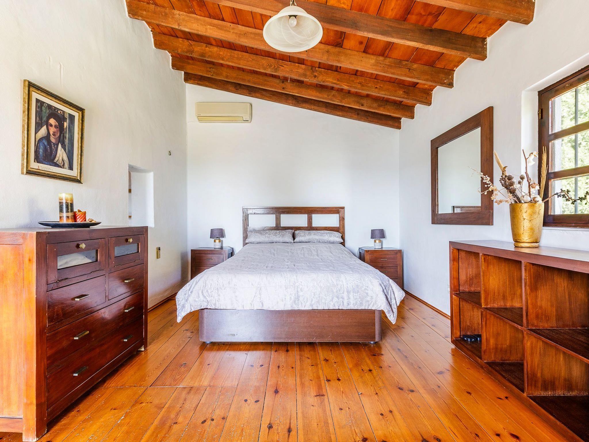 There are several patios surrounding the house. One of the highlights of the Finca is the back patio, with Mediterranean flair and vines growing over old beams, which offers welcome shade on hot summer days. Enjoy dining al fresco or just relax in the hammock. The herb garden below the patio lets you cook Mediterranean meals. A private saltwater pool in a unique colour scheme with an outdoor shower fits perfectly into the surrounding landscape. The lower part of the property with the pool is fully fenced in. The property offers parking for your vehicle.