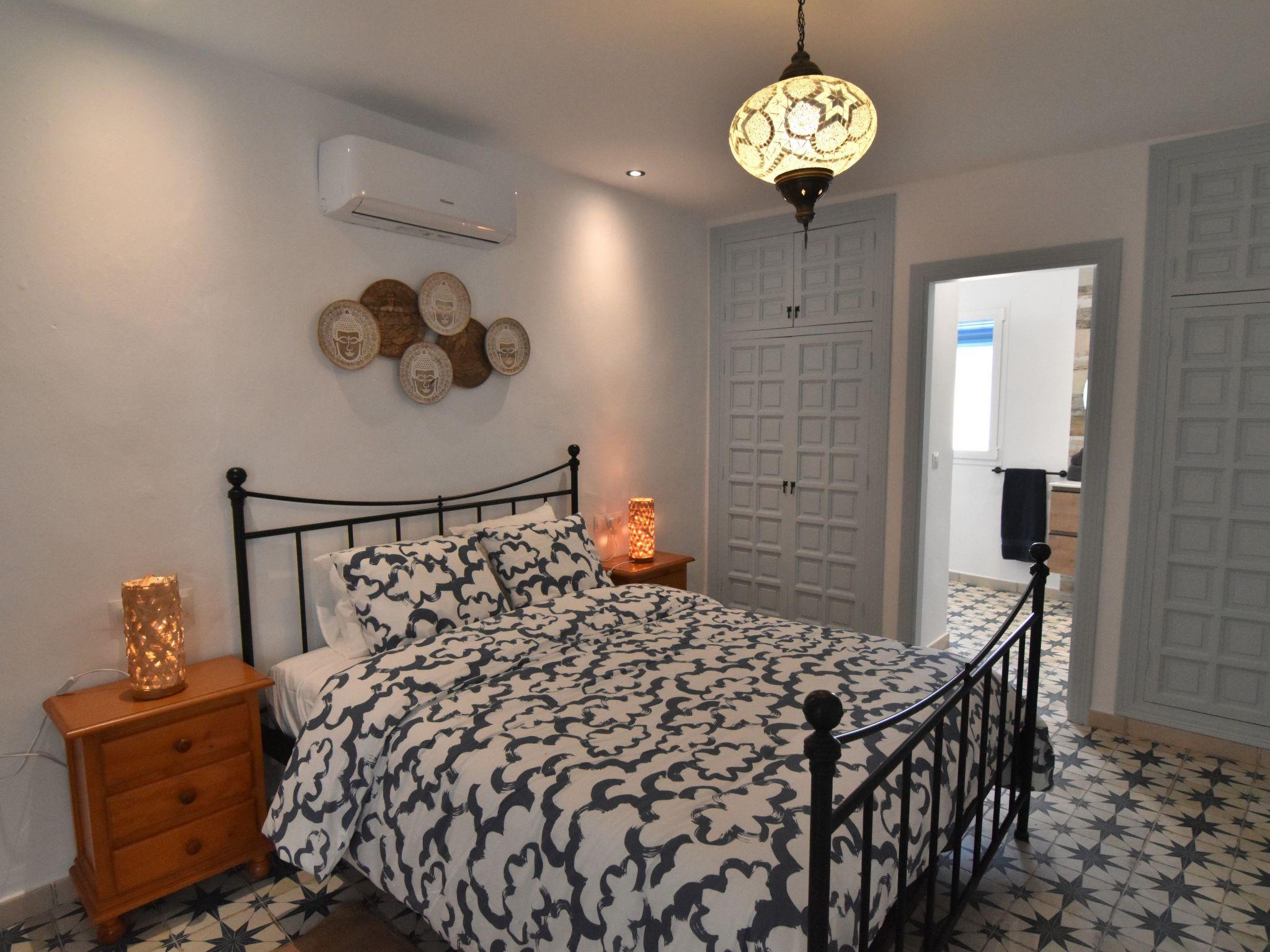 More steps lead to the 3rd floor where one can find a second bedroom with a traditional Spanish size bed (135 cm), hand painted furniture and A/C (hot&cold).