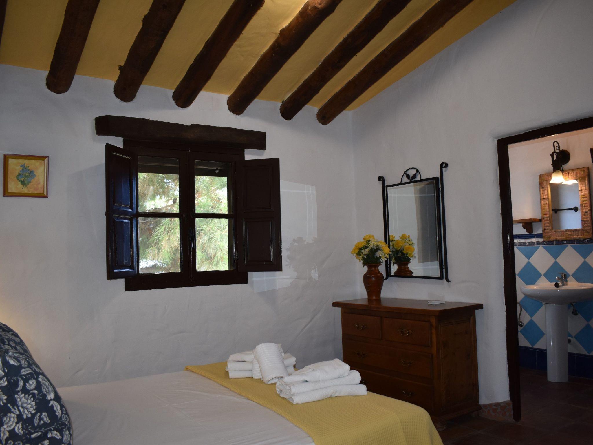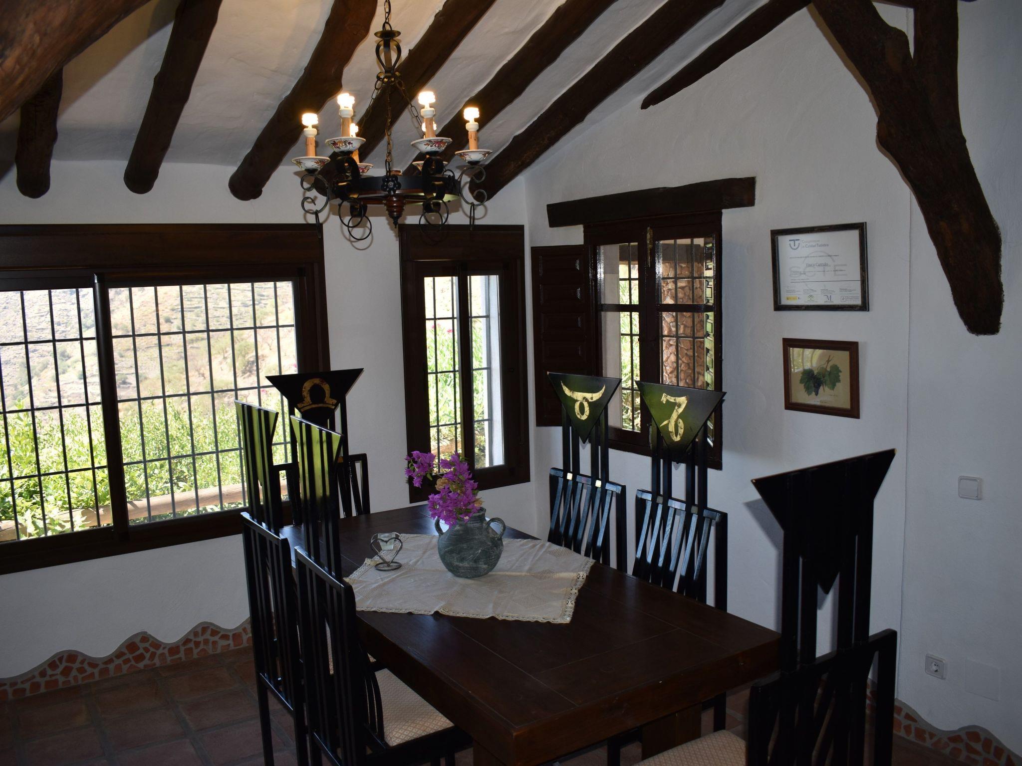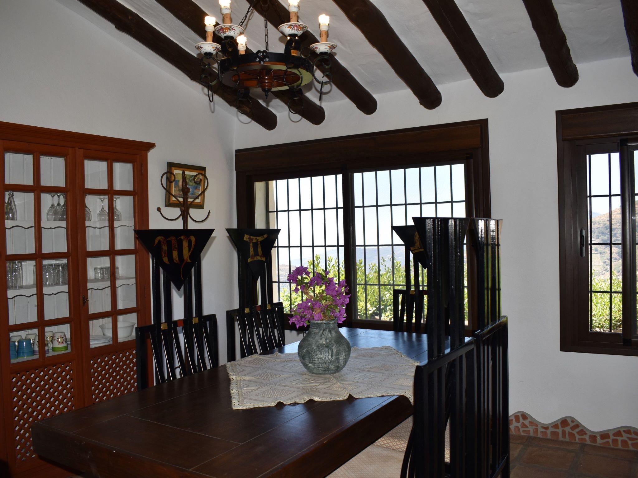 Finca Carrulo offers accommodation for 6 people and impresses with its original and detailed decoration. In the living room we find a traditional Andalusian fireplace, satellite TV and 2 sofas. From the living room we have access to the fully equipped kitchen with dining table and exit to a completely private balcony, which is a perfect place at any time of the day for meals or just relax and enjoy the stunning views of the mountains and the coast. The property completes itself with 3 bedrooms, 2 with double bed and 1 with 2 single beds and 2 bathrooms, one with shower and the other with bath and shower.
