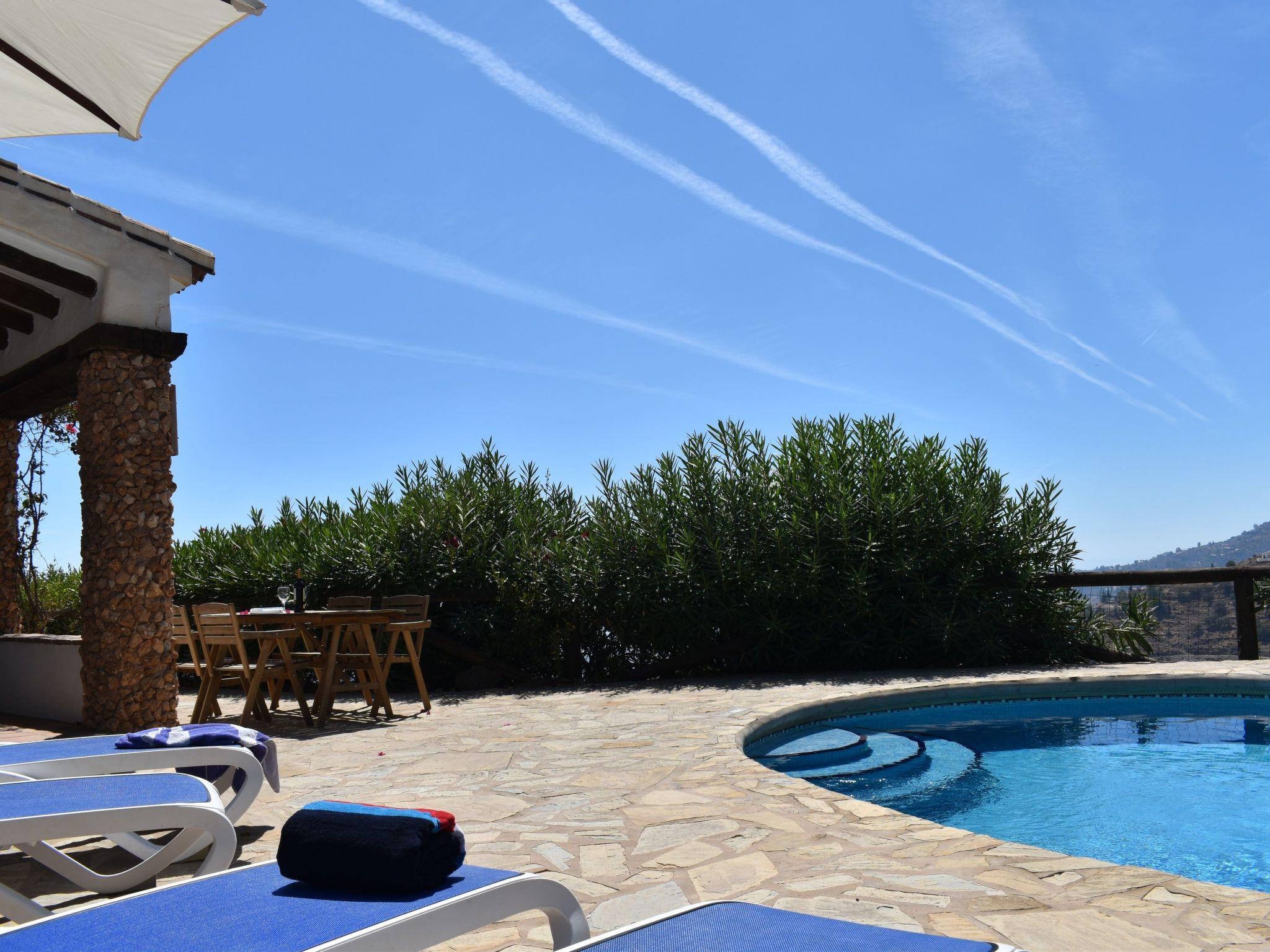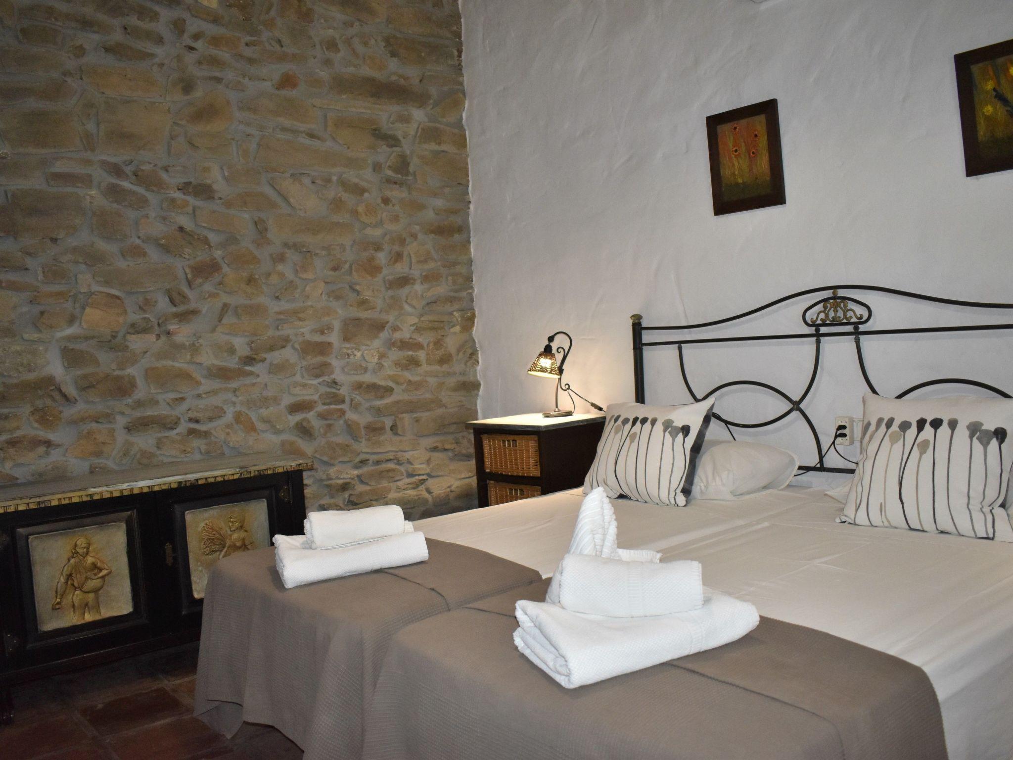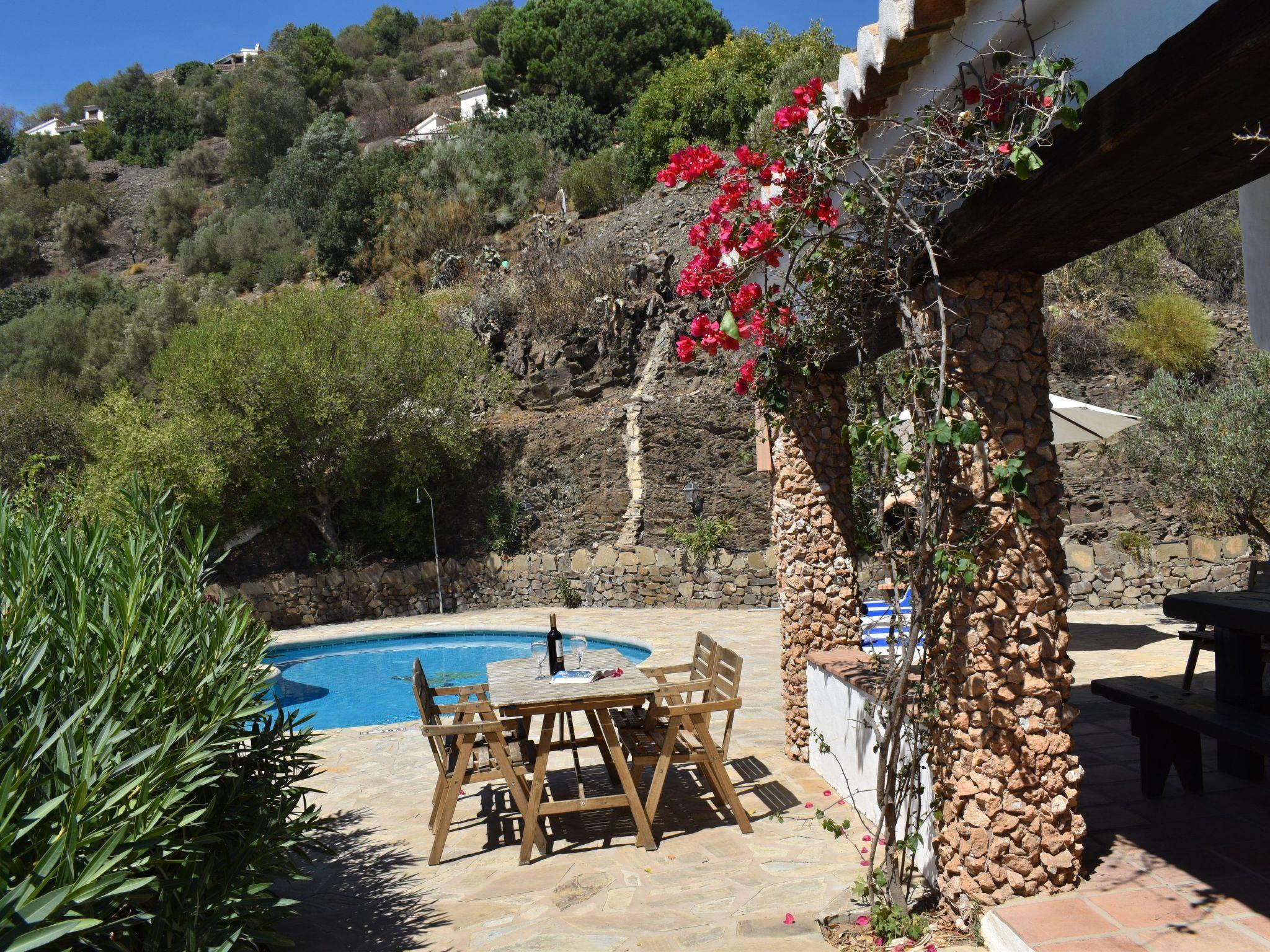Finca Carrulo offers accommodation for 6 people and impresses with its original and detailed decoration. In the living room we find a traditional Andalusian fireplace, satellite TV and 2 sofas. From the living room we have access to the fully equipped kitchen with dining table and exit to a completely private balcony, which is a perfect place at any time of the day for meals or just relax and enjoy the stunning views of the mountains and the coast. The property completes itself with 3 bedrooms, 2 with double bed and 1 with 2 single beds and 2 bathrooms, one with shower and the other with bath and shower.